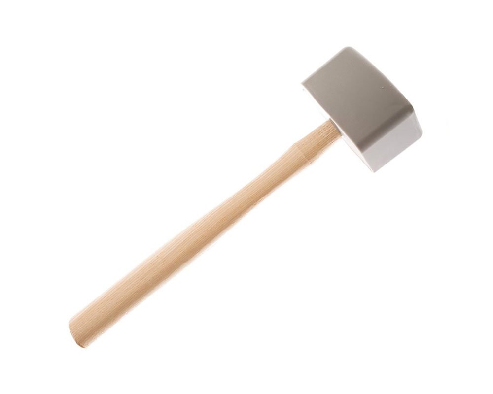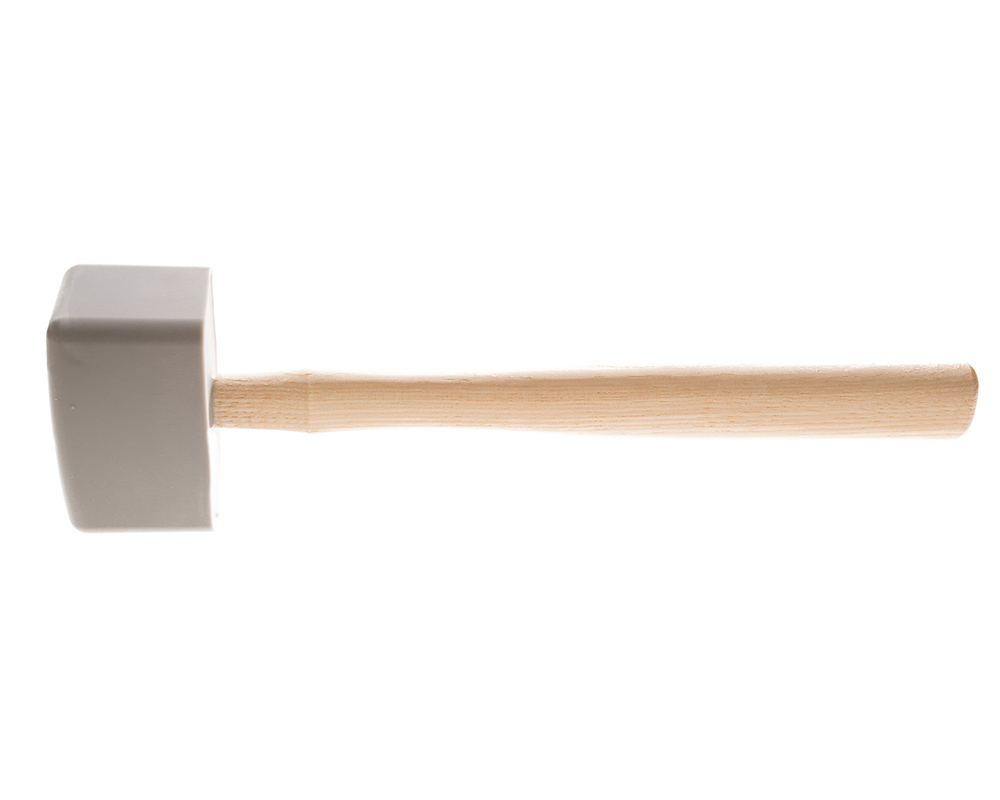 Shock absorption, vibration isolation and acoustical damping. 1.75 x 2.75 x 4 inch head with 9 inch straight, wooden handle.