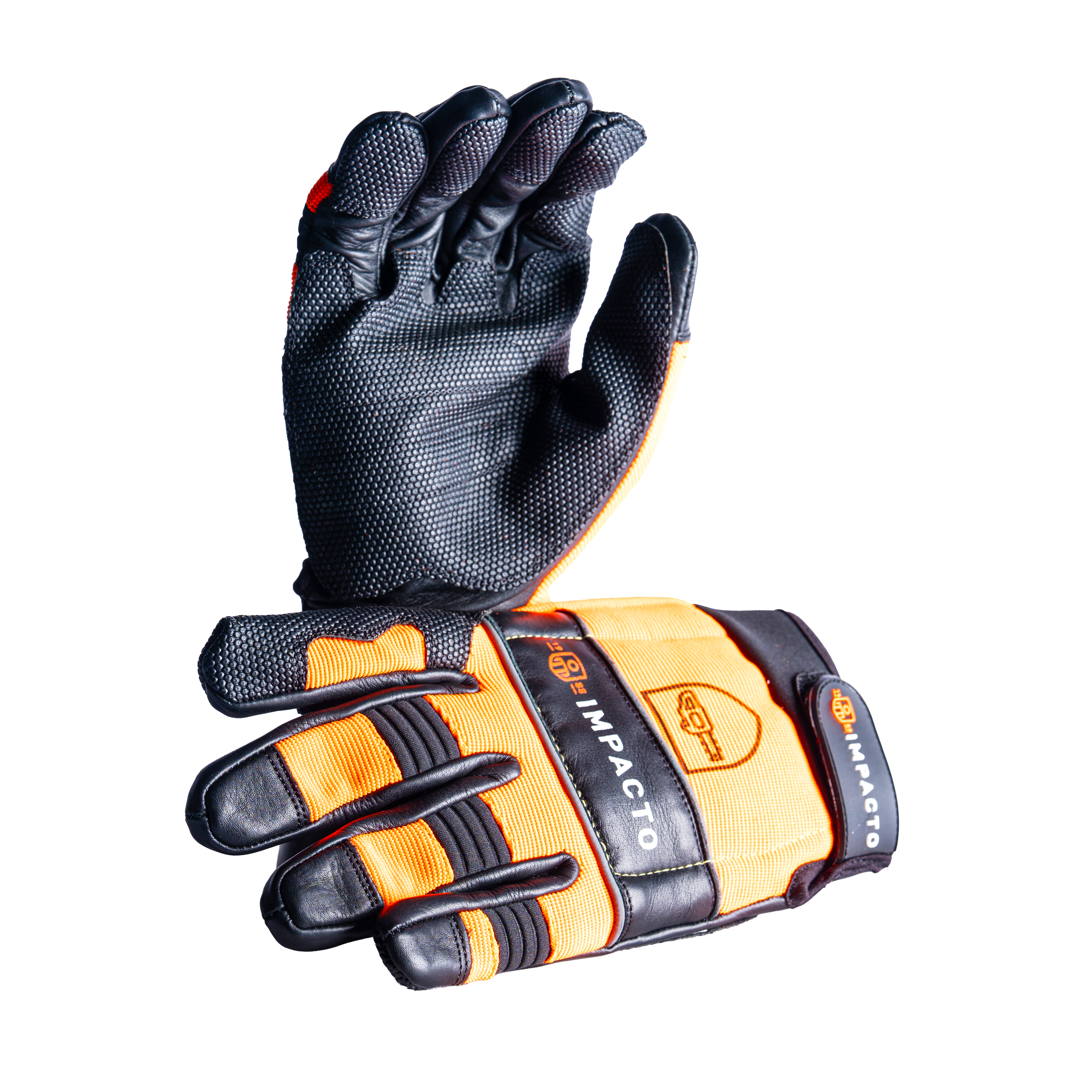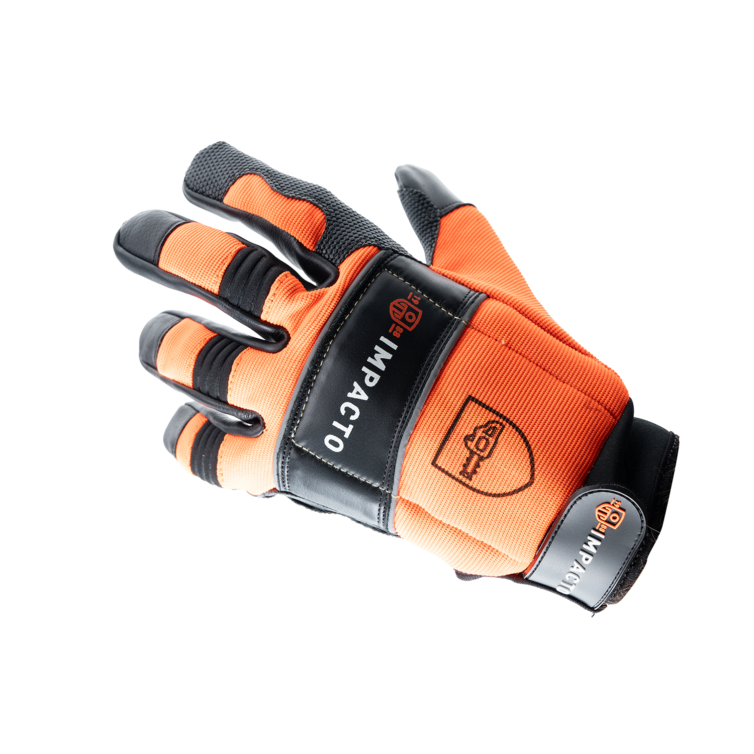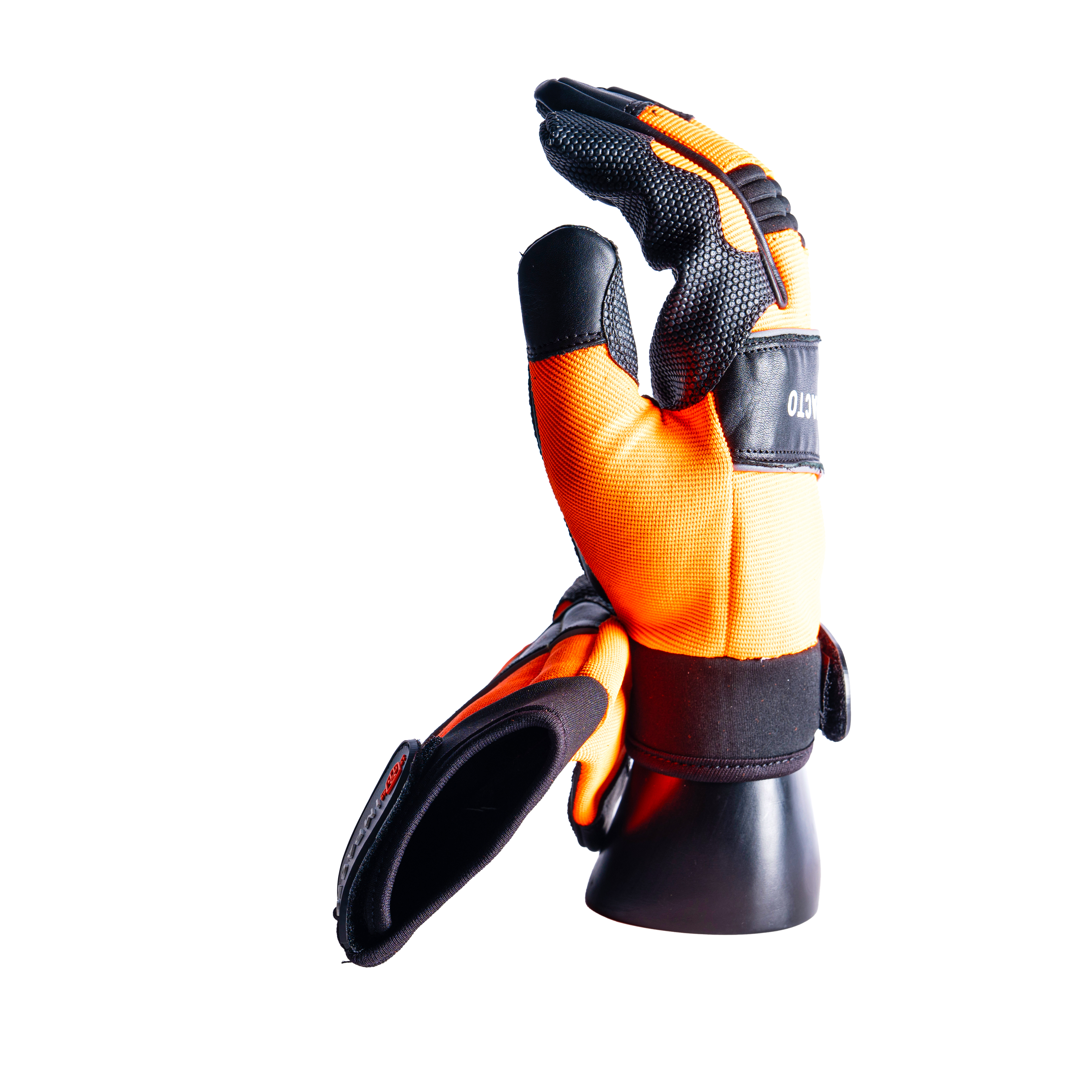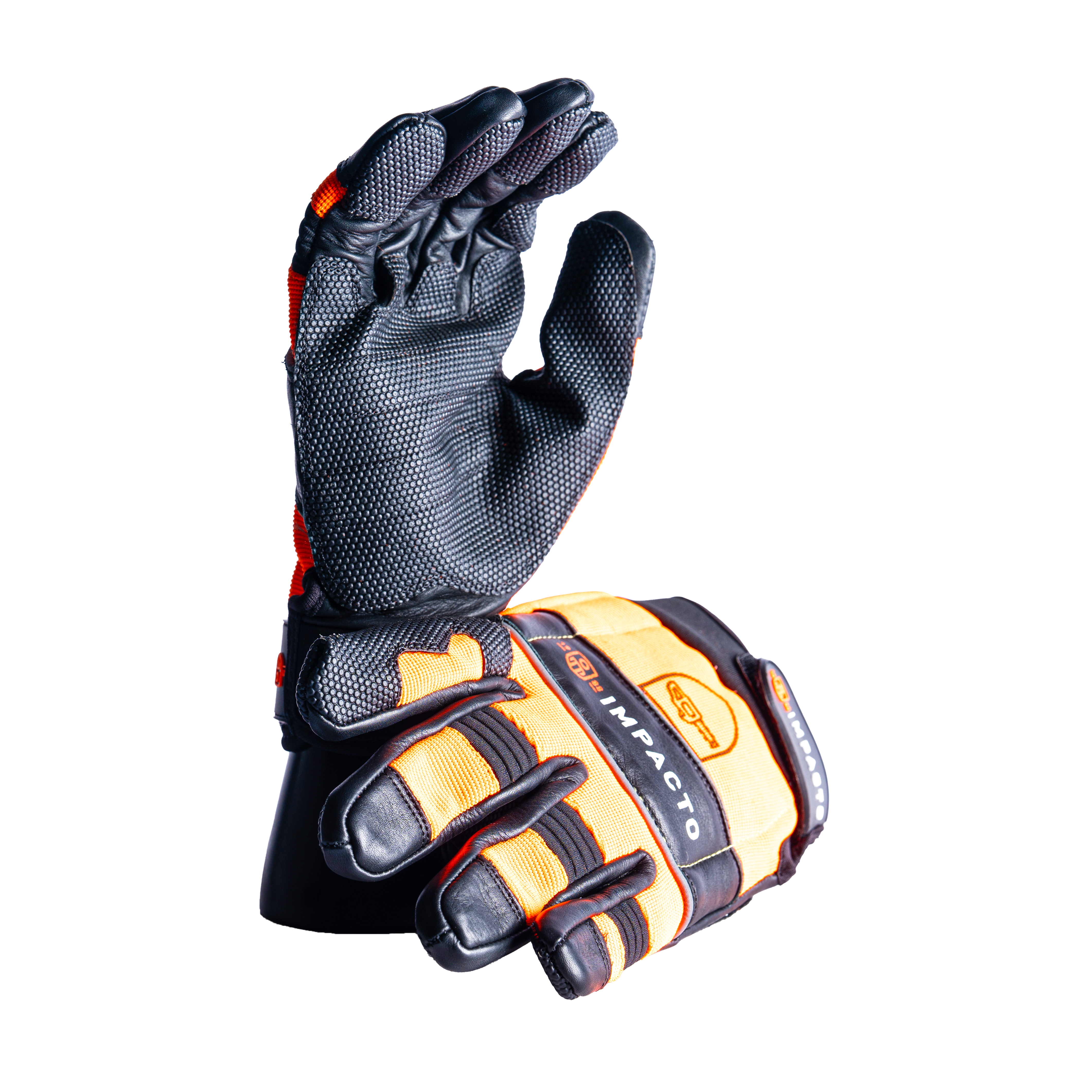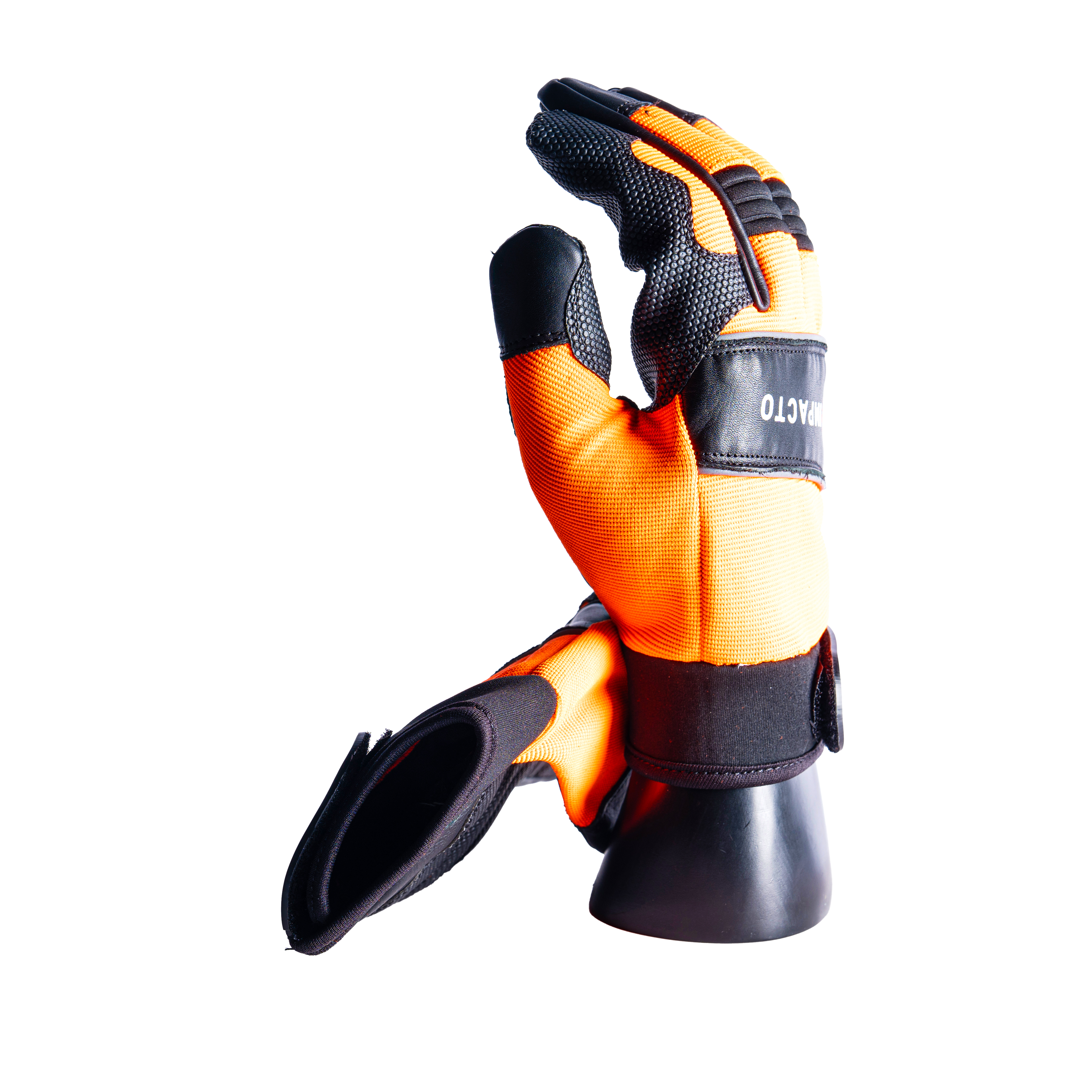 IMPACTO TimberGuard Chainsaw Glove designed to effectively halt a chainsaw running at 20 m/s upon contact with the back of the left hand. Essential for use in the forestry industry and at home while operating a chainsaw.
