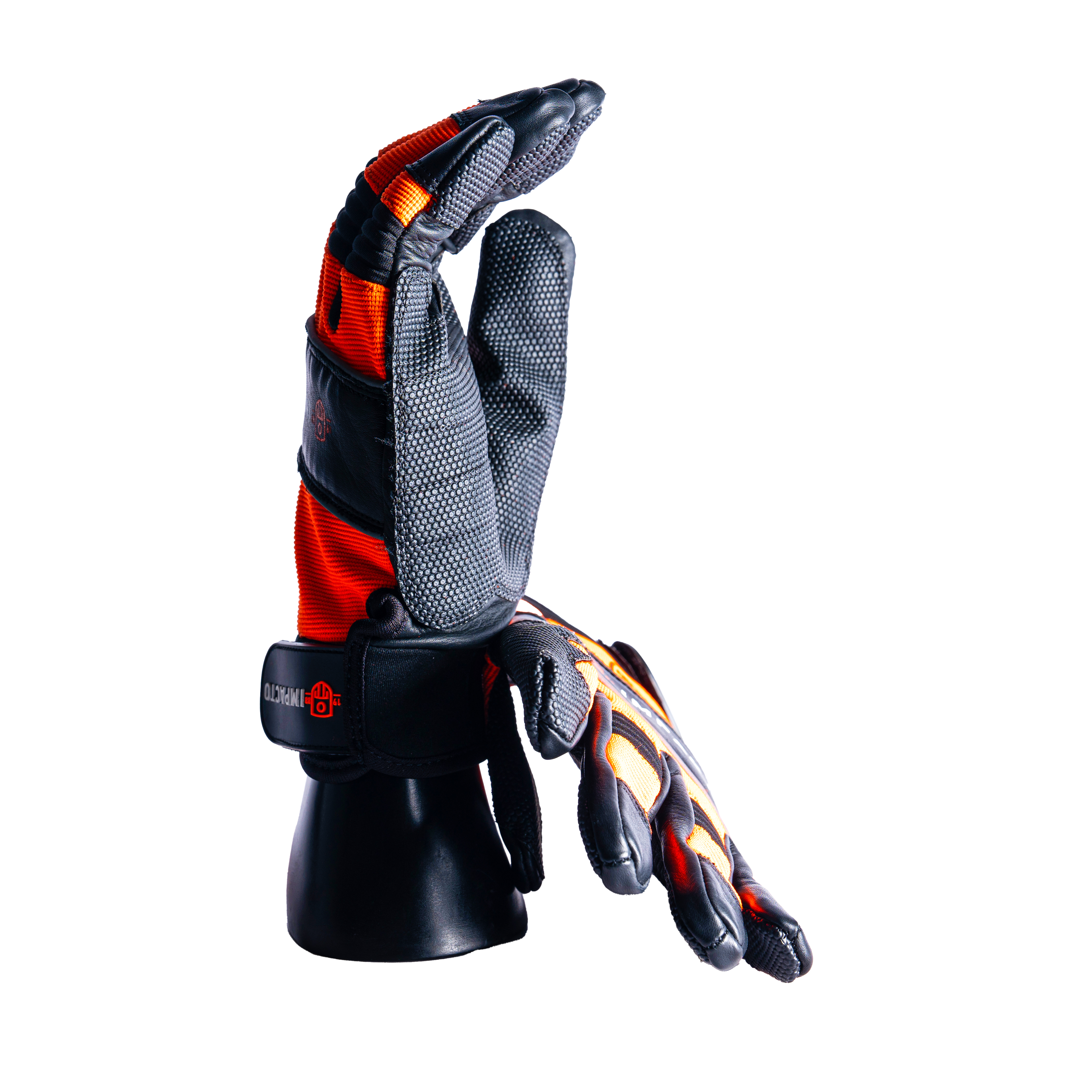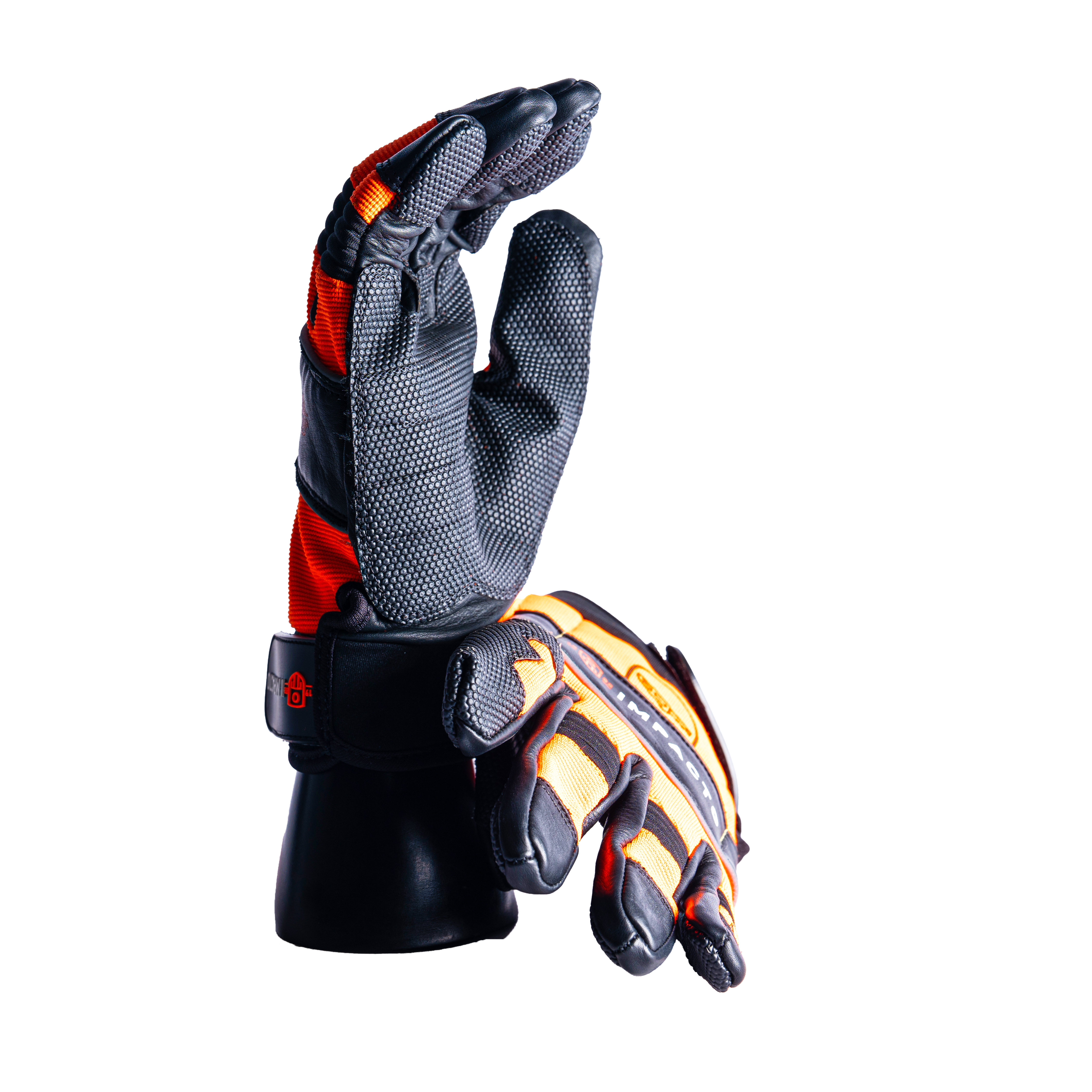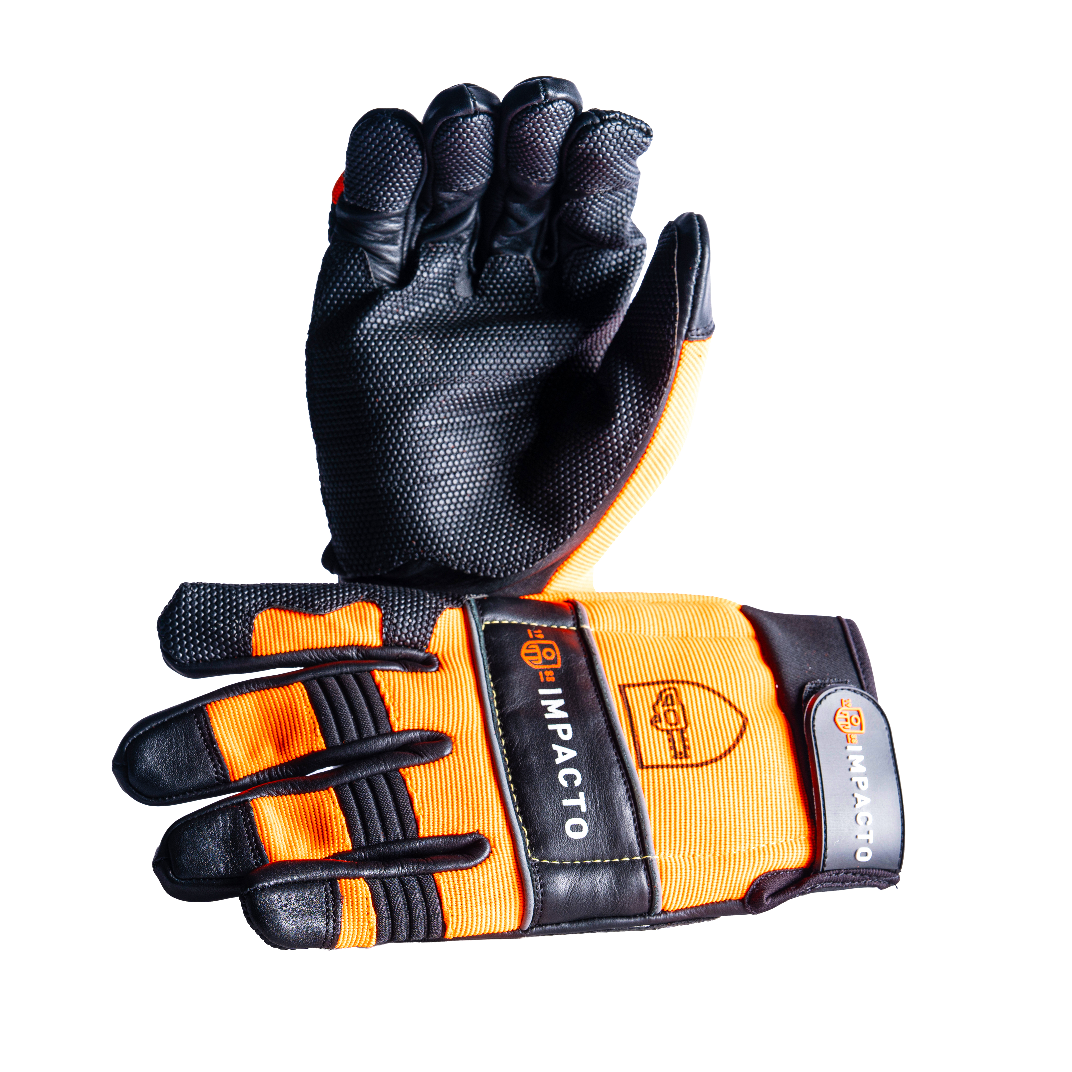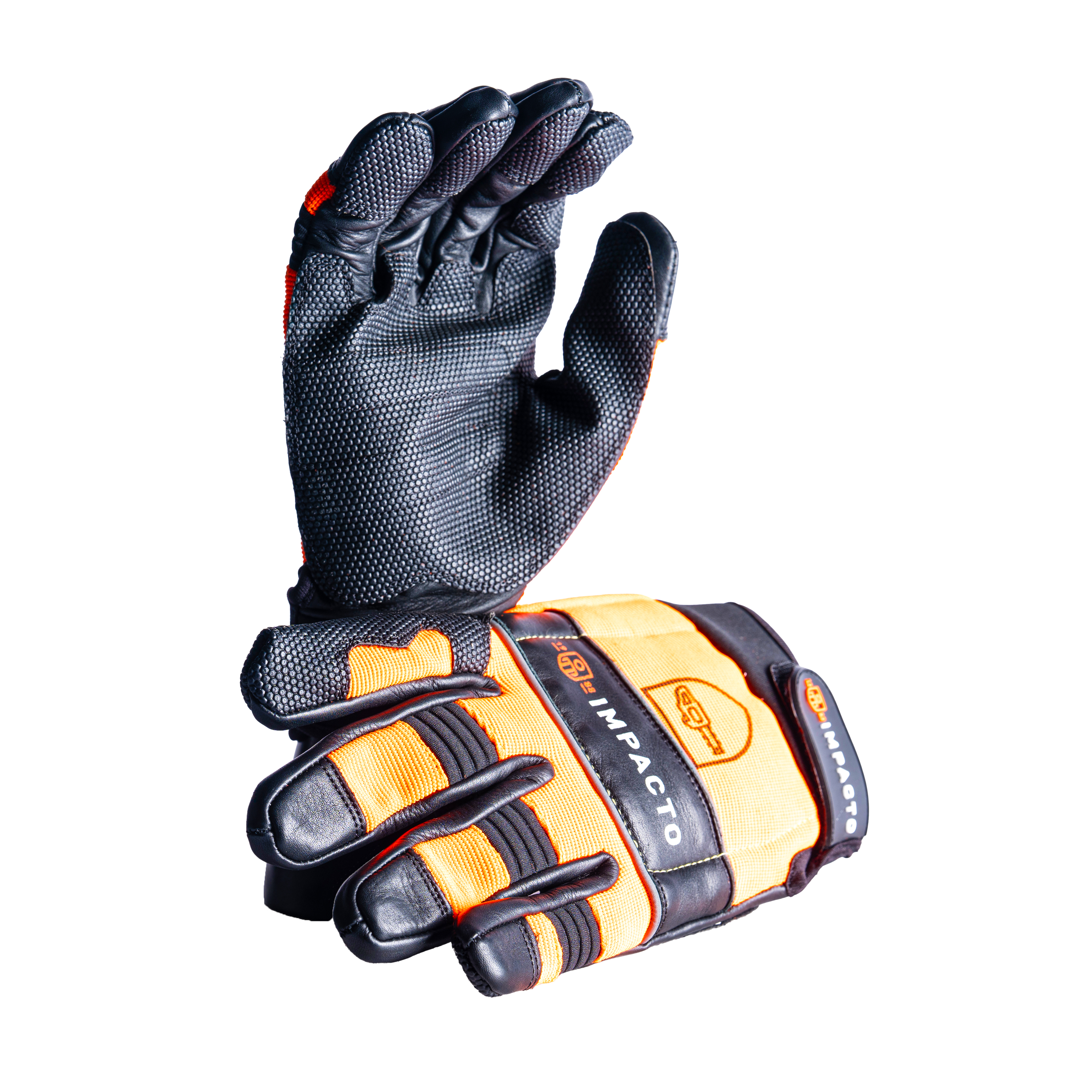 IMPACTO TimberGuard Chainsaw Glove designed to effectively halt a chainsaw running at 20 m/s upon contact with the back of the left hand. Essential for use in the forestry industry and at home while operating a chainsaw.