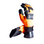 Gloves are in compliance with EN ISO 11393-4:2019 Class 1, Chain Speed 20m/s, Type 2 Design A (left hand only) – Protective clothing for users of hand-held chainsaws.