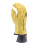 Durable cowhide leather offers the best durability in abrasive environments. Elasticized driver style cuff for comfortable fit.