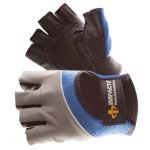 IMPACTO half finger Gel work glove. Terry cloth back and thumb. Spandex back. Black leather palm. Gel padding in the palm and index finger. Wrist tab with hook and loop closure.