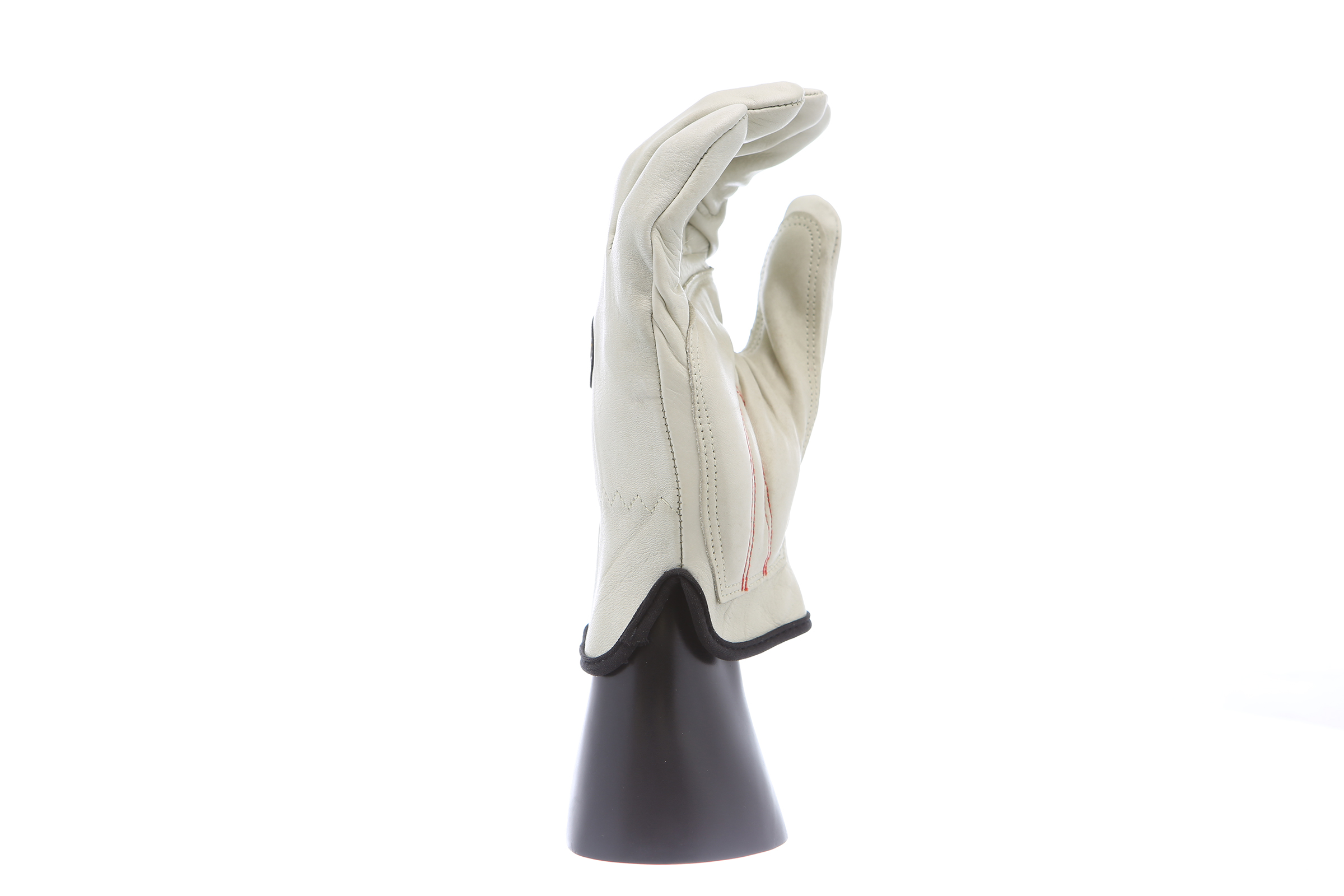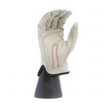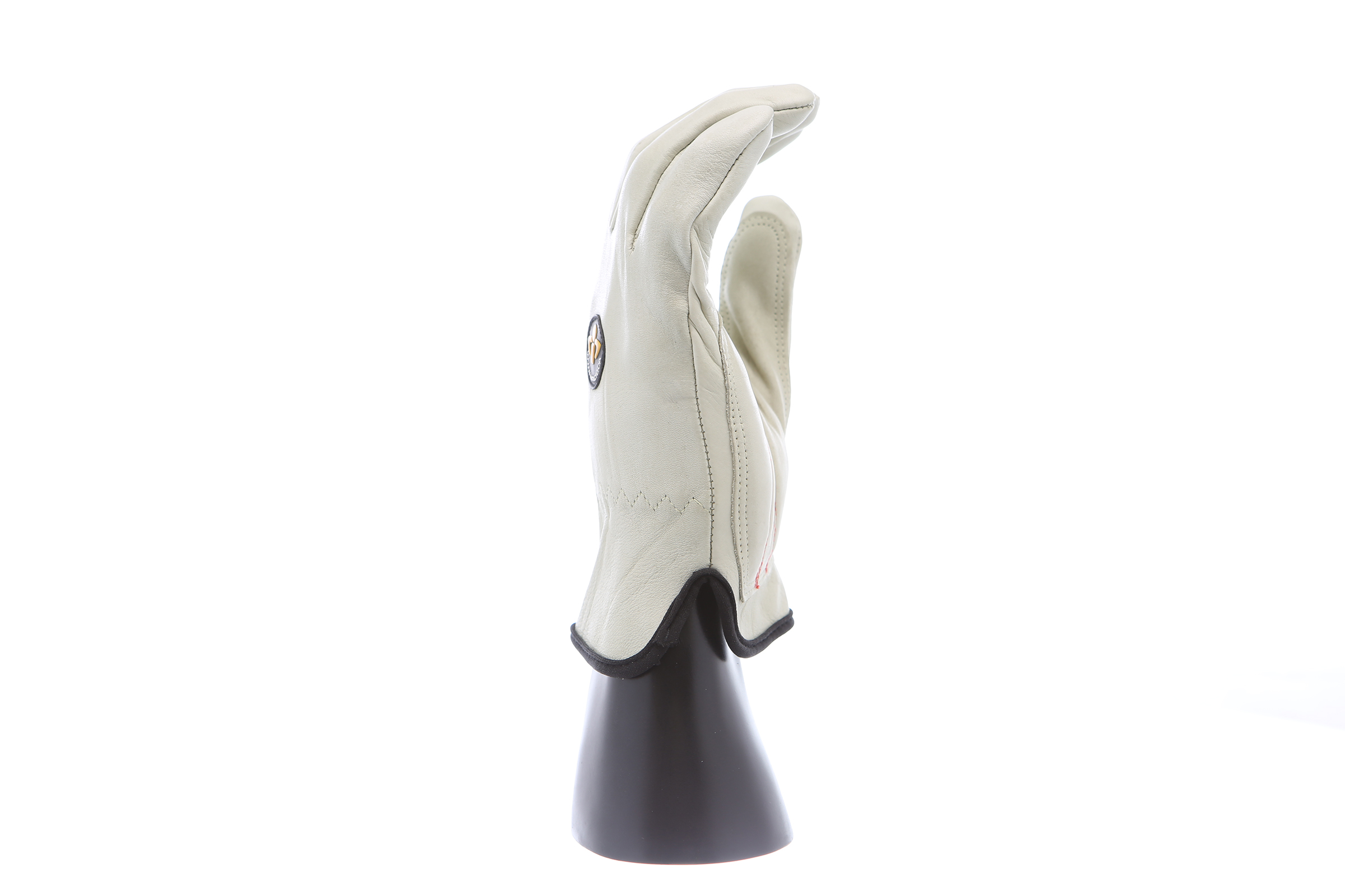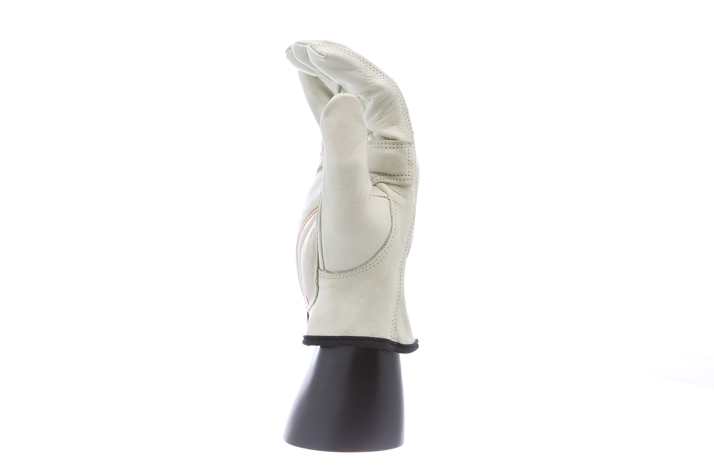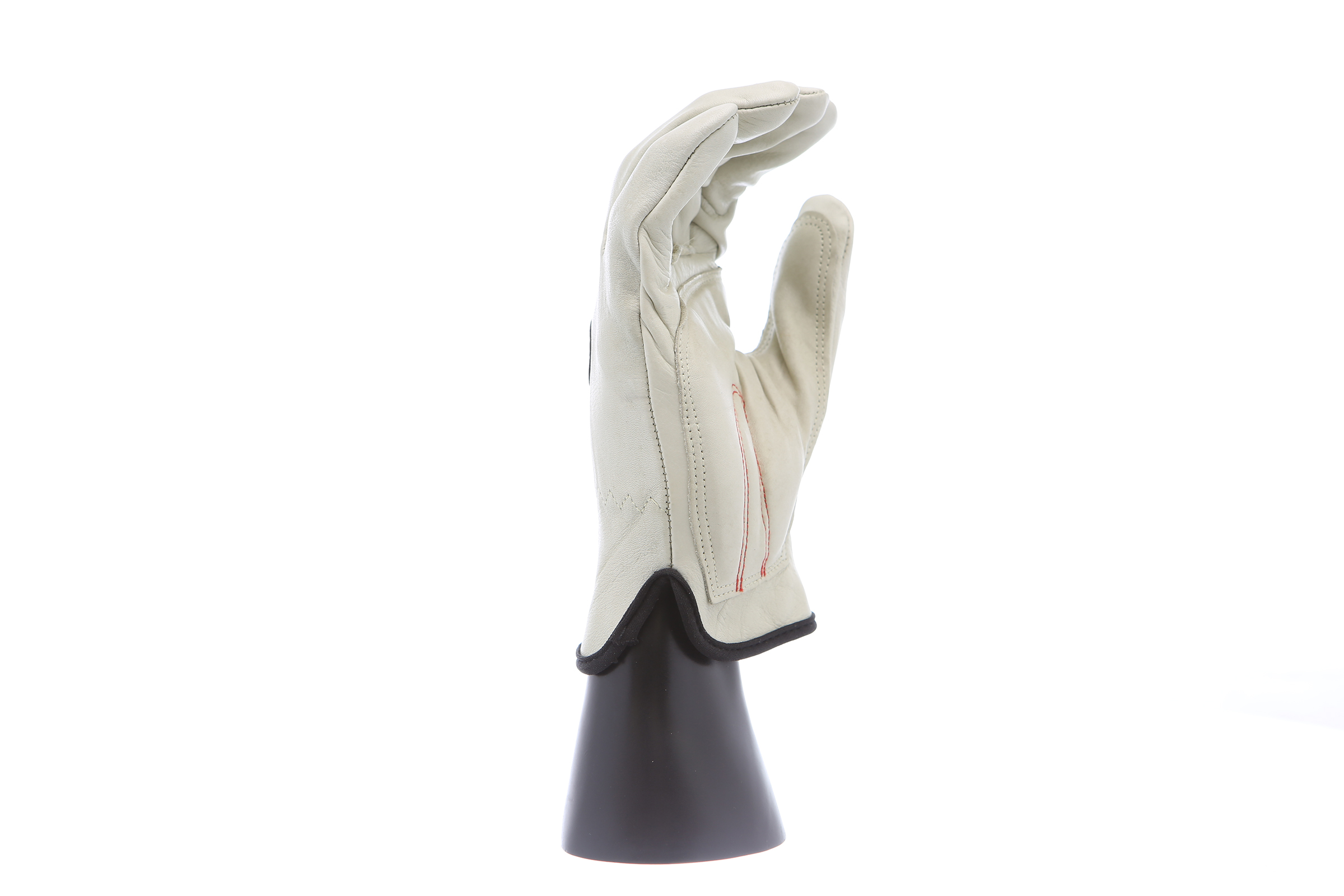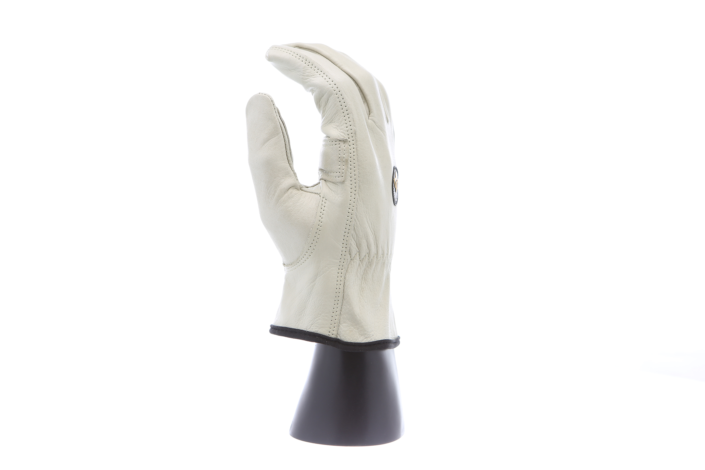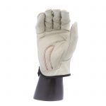 Cowhide leather glove with unique channel over the carpal tunnel keeps pressure off the median nerve. VEP palm pad protects from impact.