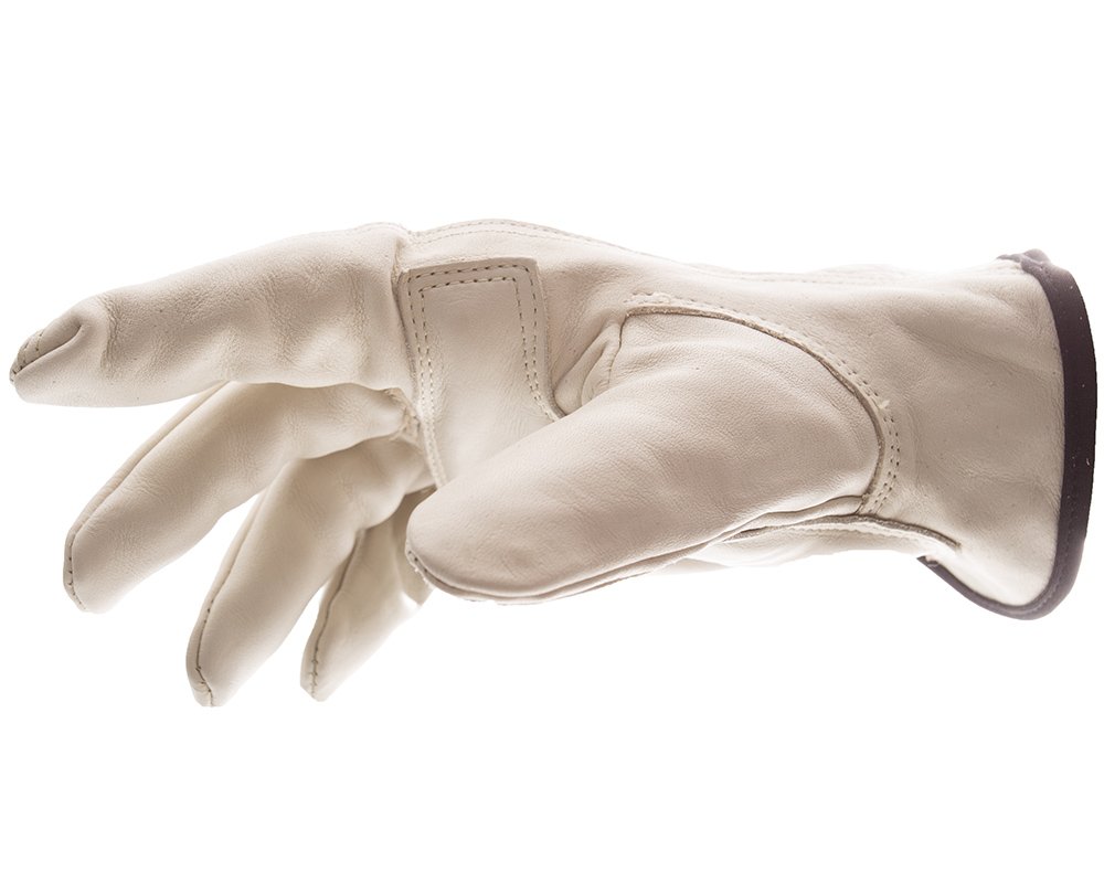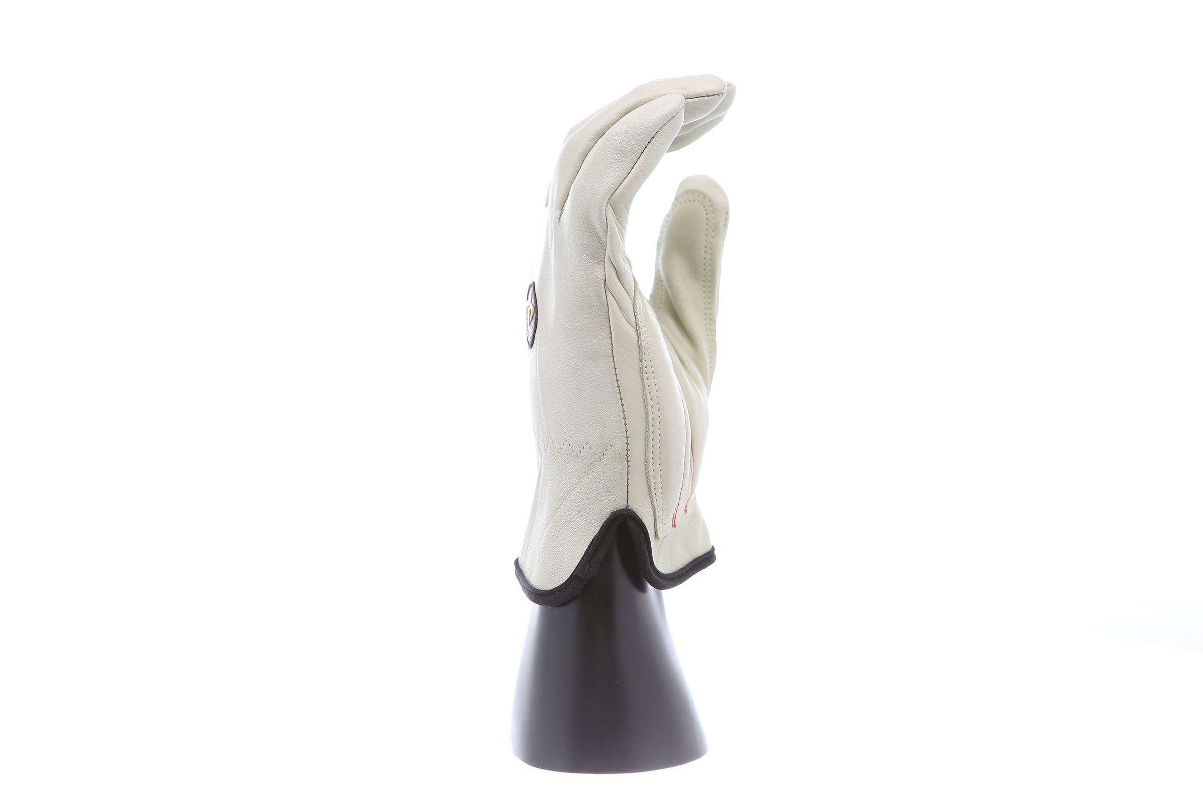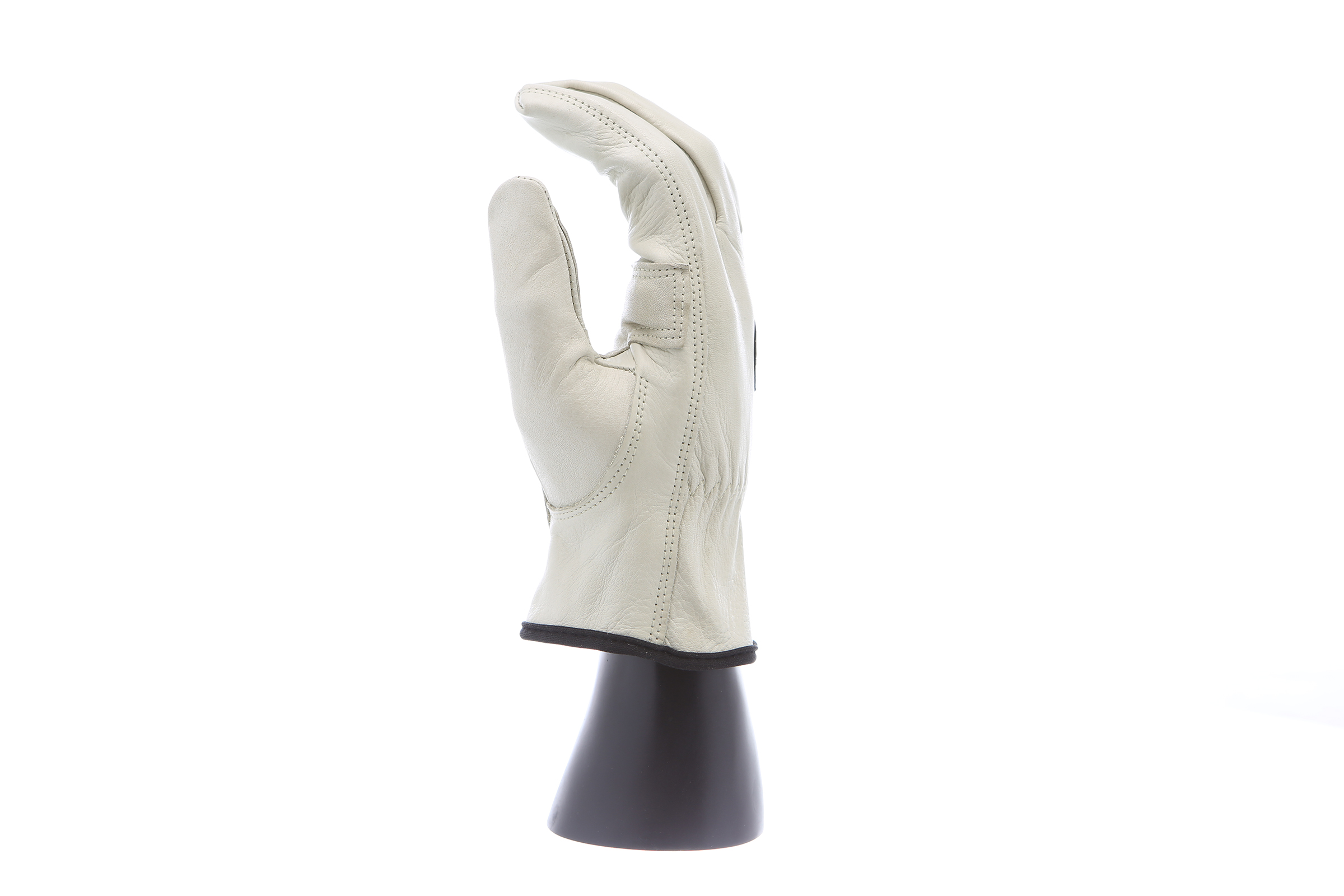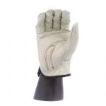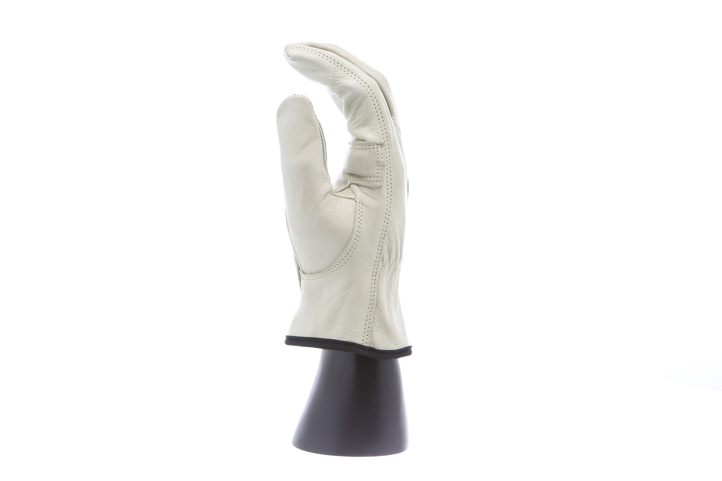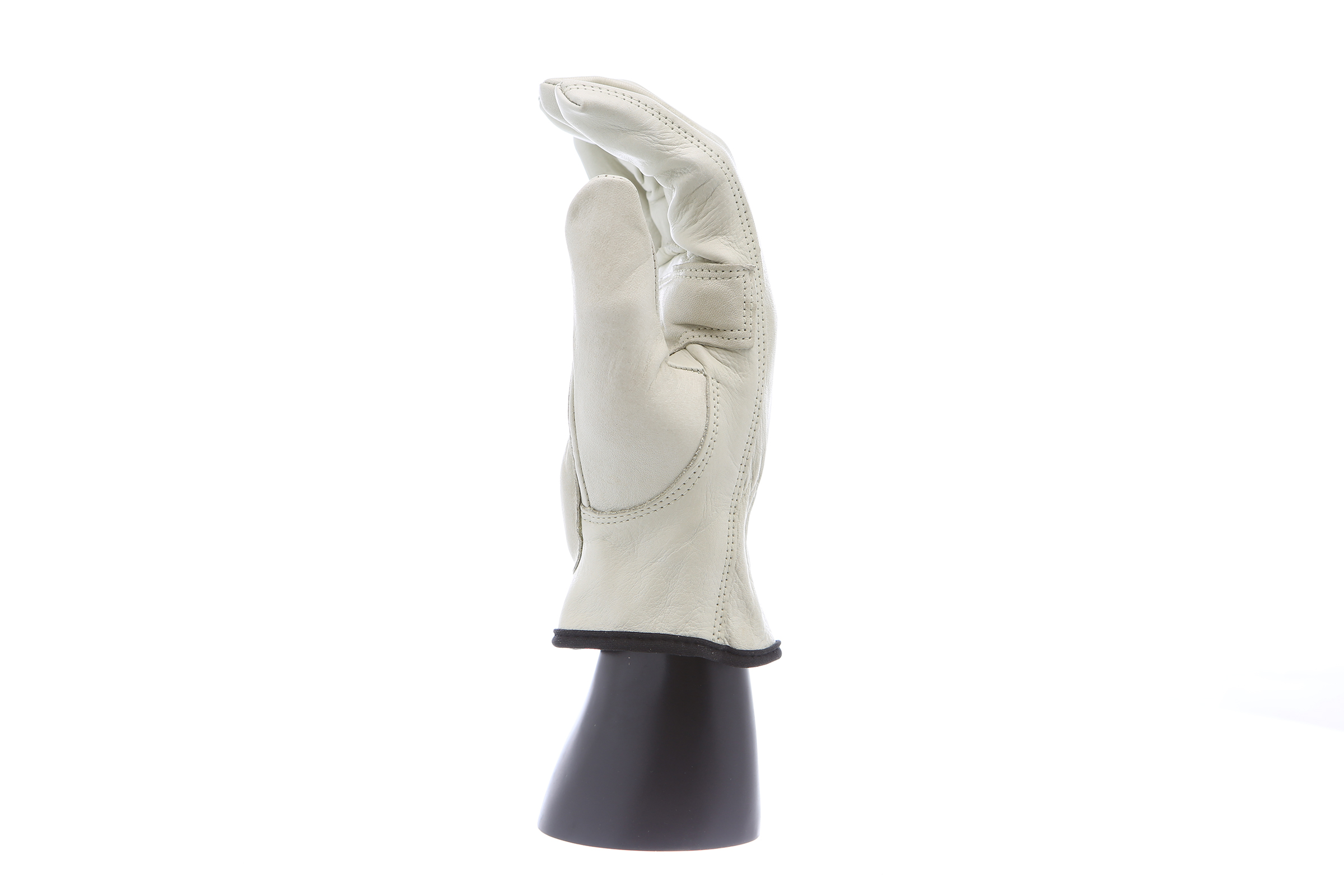 Cowhide leather glove with unique channel over the carpal tunnel keeps pressure off the median nerve. VEP palm pad protects from impact.