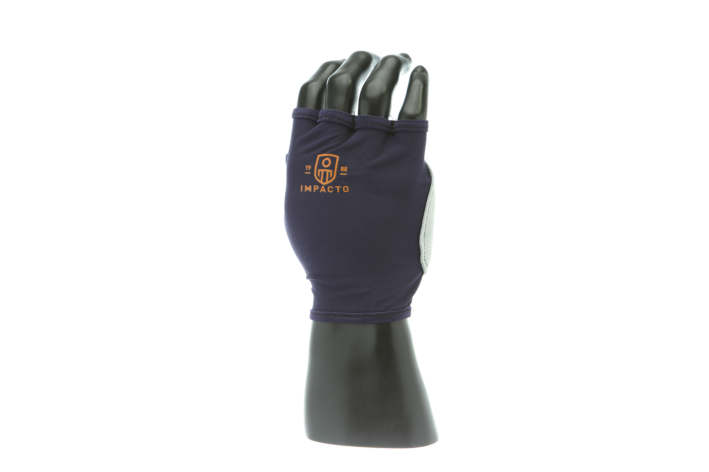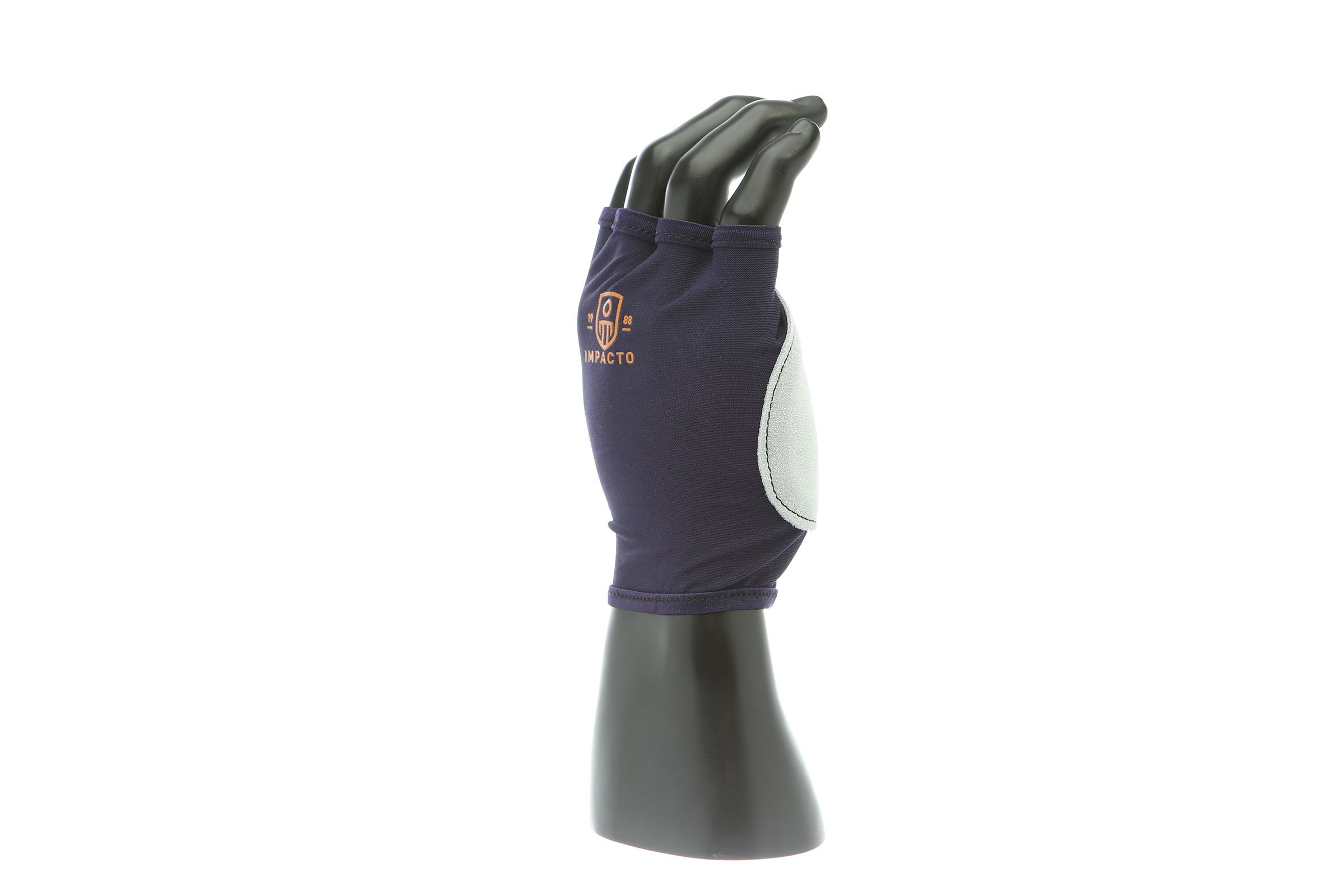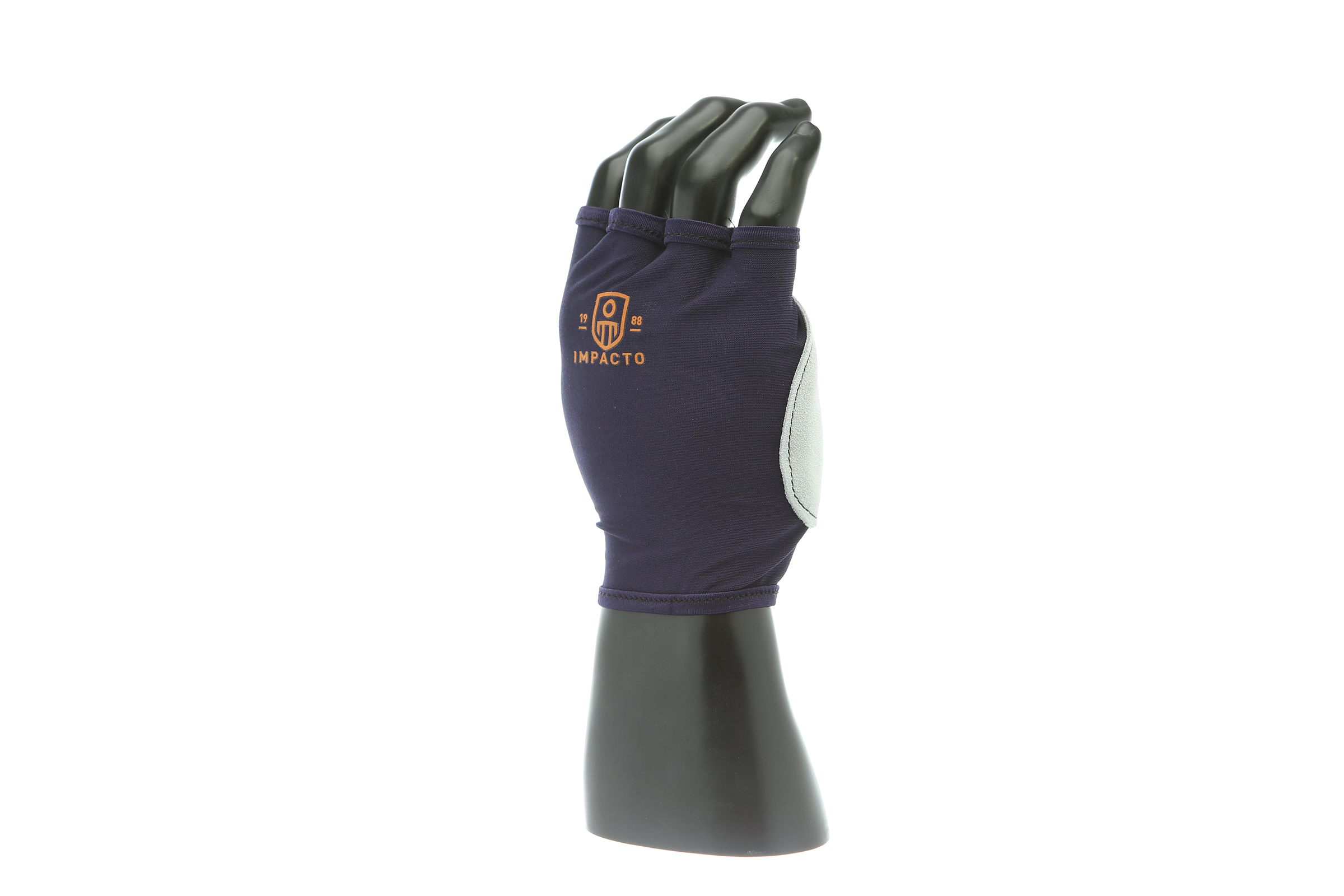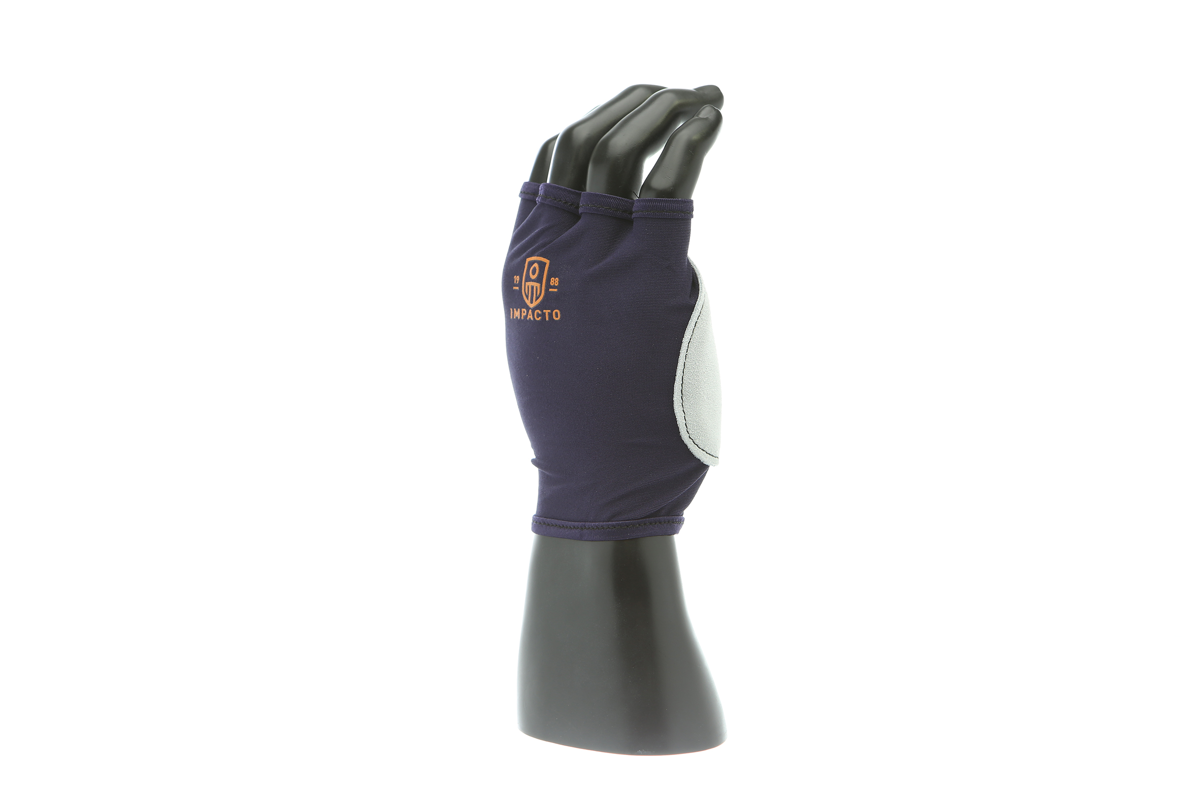 Impacto 501-20 Fingerless nylon glove with contoured VEP padding and soft, grain leather in the palm. Great for protection from hand tools and power tools.