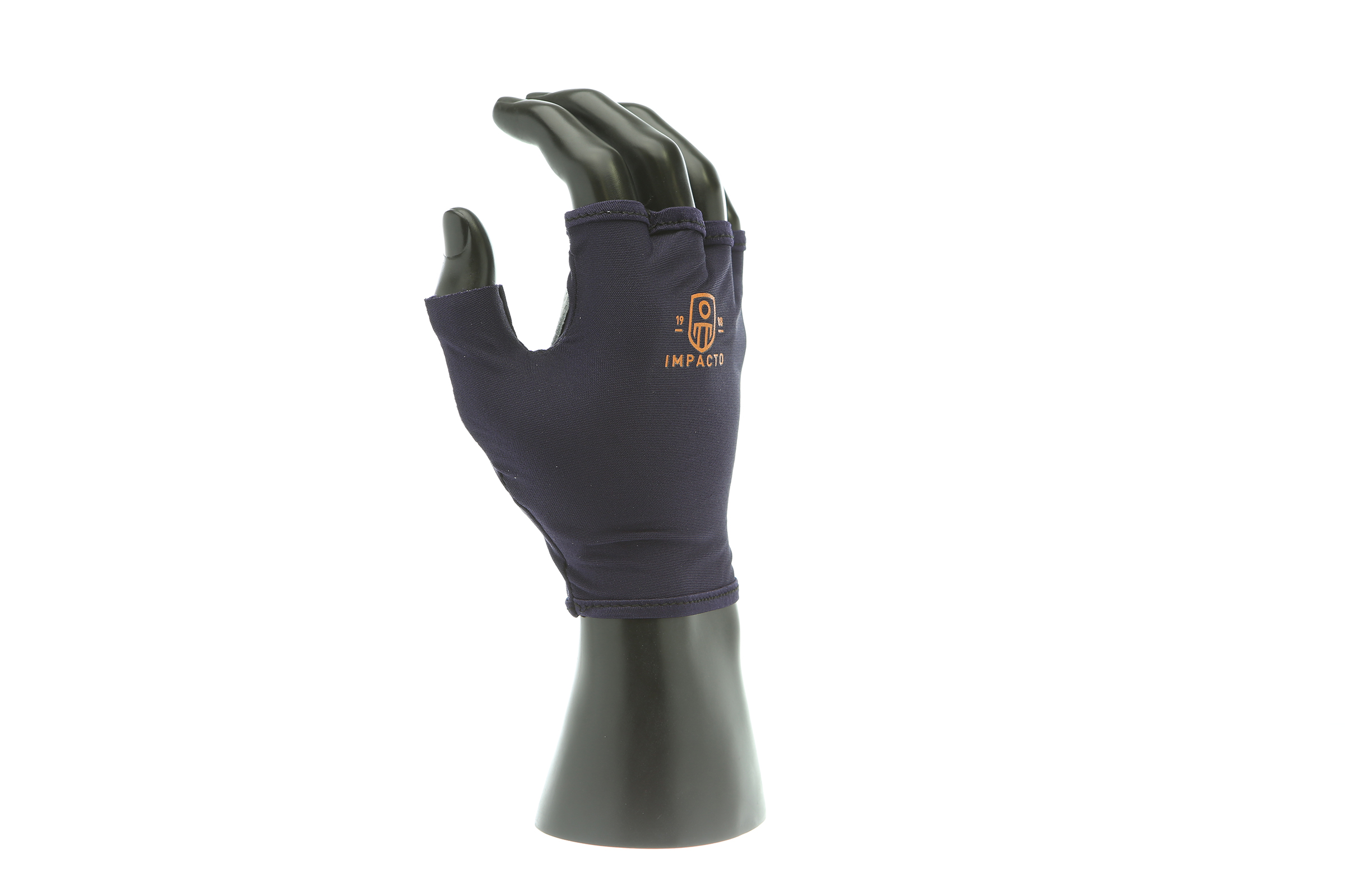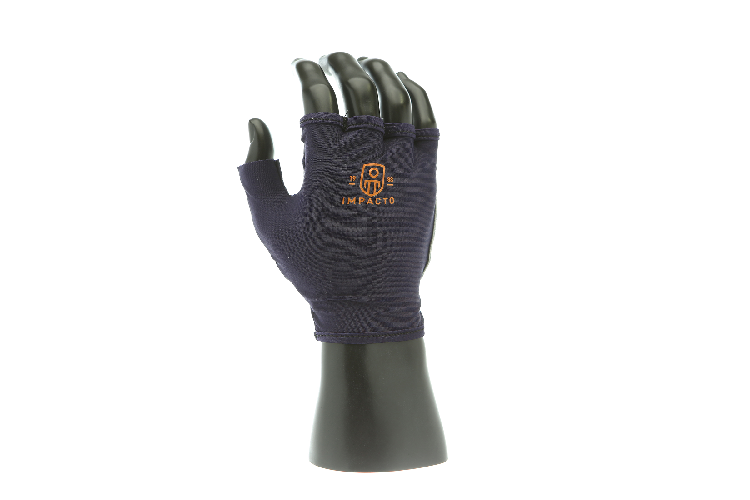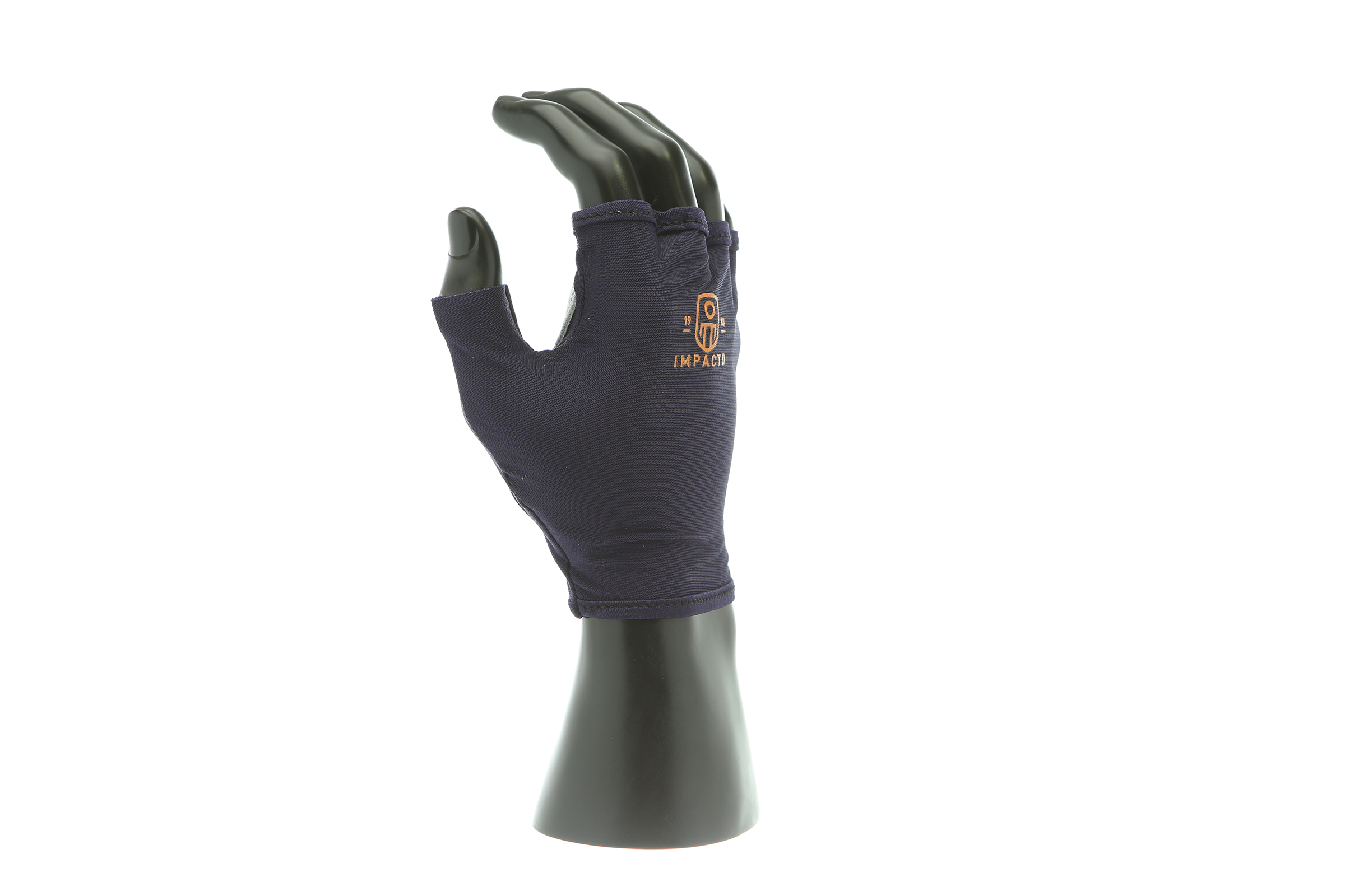 Impacto 501-20 Fingerless nylon glove with contoured VEP padding and soft, grain leather in the palm. Great for protection from hand tools and power tools.