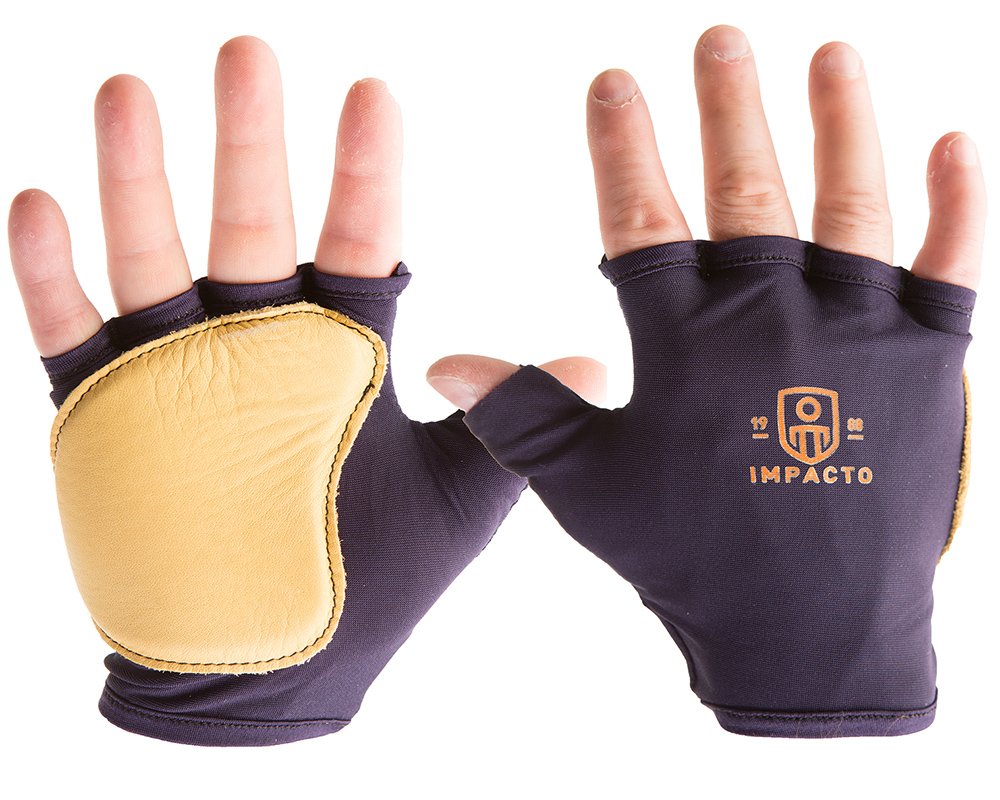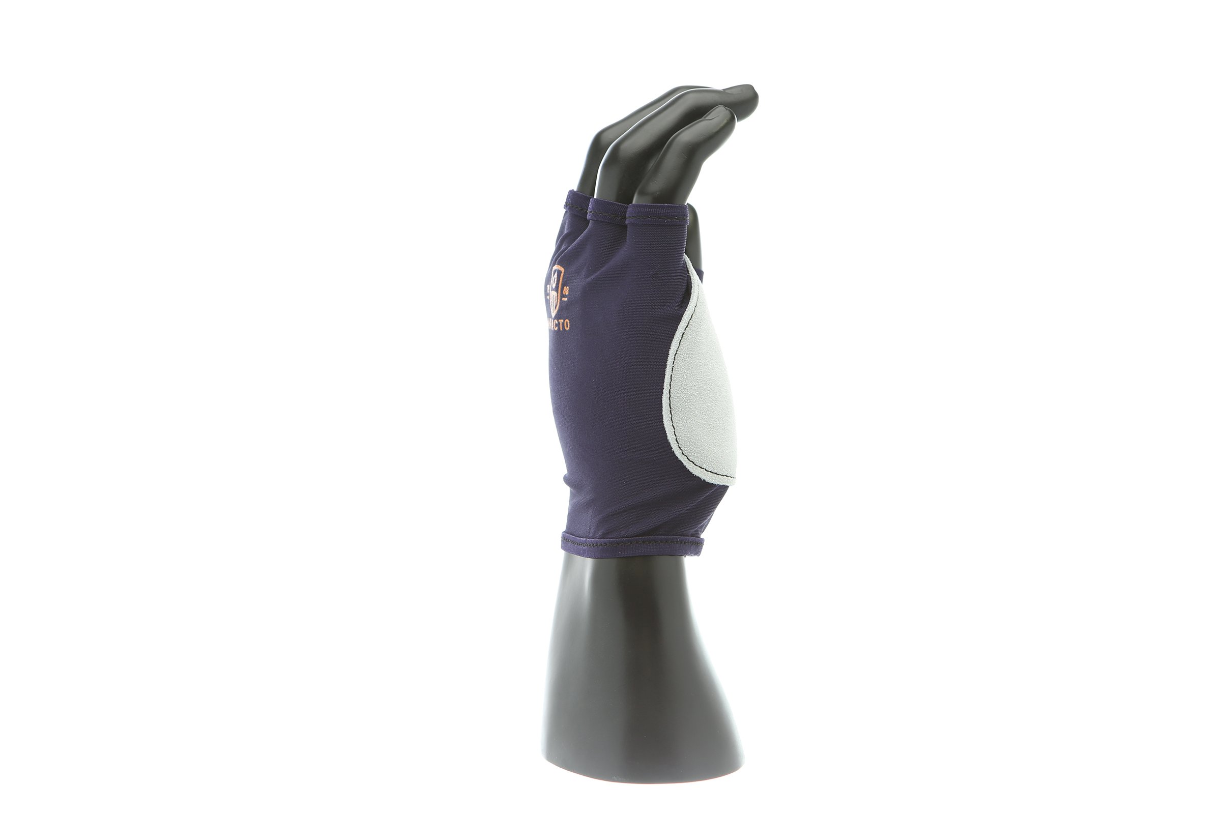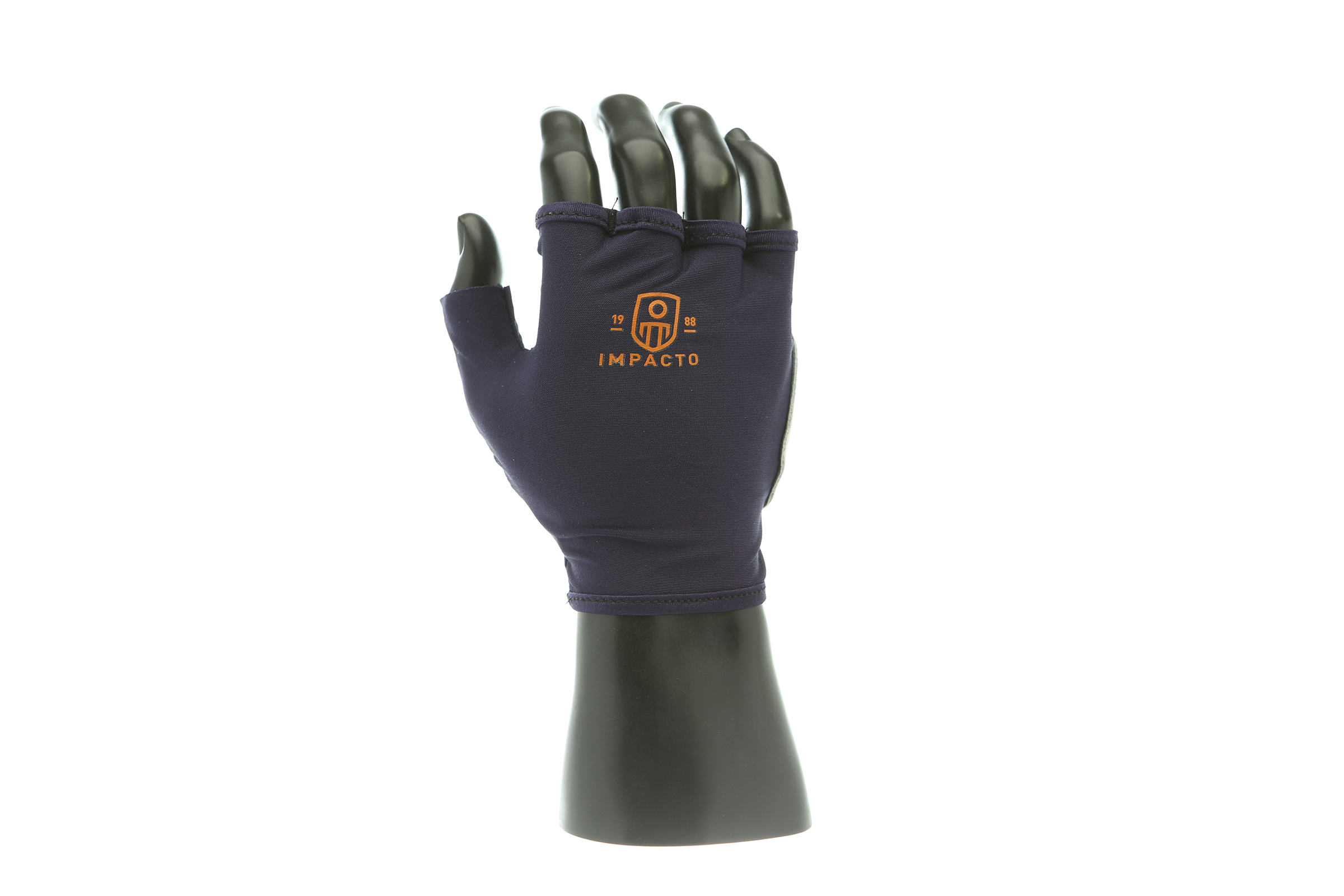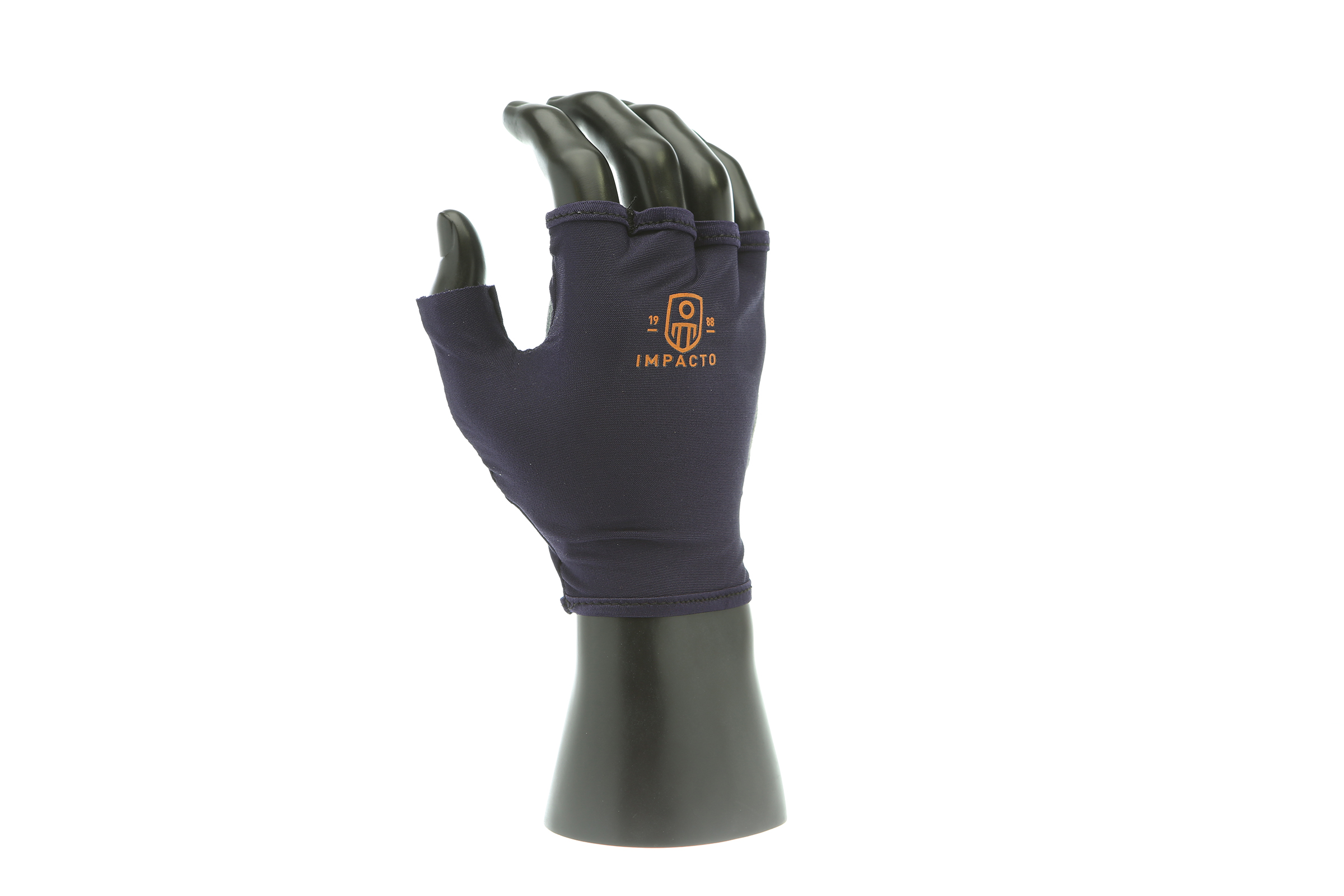 Impacto 501-20 Fingerless nylon glove with contoured VEP padding and soft, grain leather in the palm. Great for protection from hand tools and power tools.