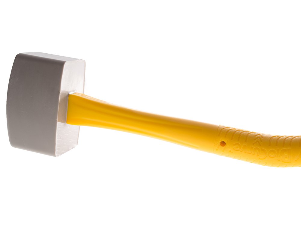 Shock absorption, vibration isolation and acoustical damping. 2.5 x 2.3 x 4 inch head with 11.5 inch plastic, ergonomic handle.