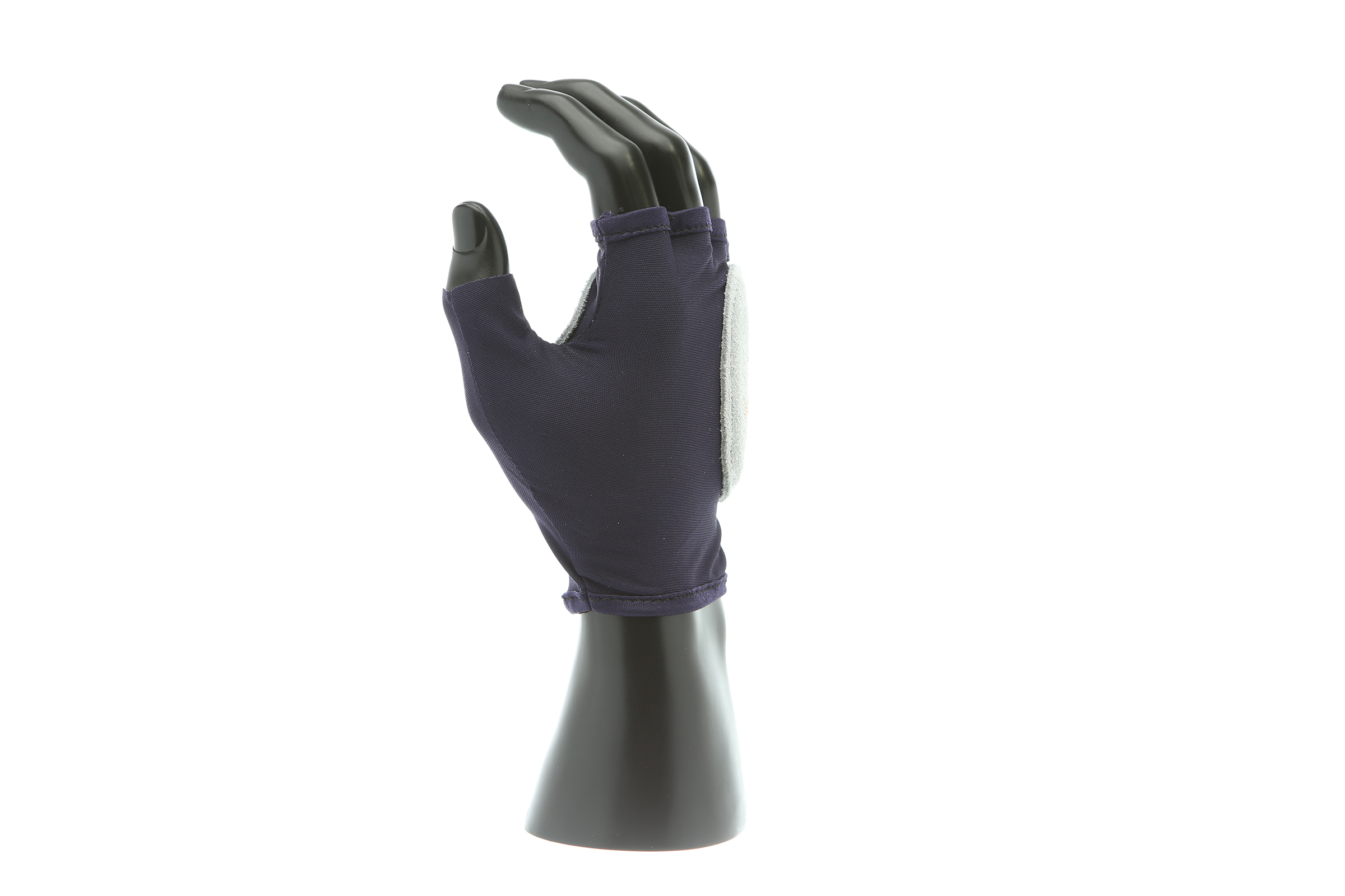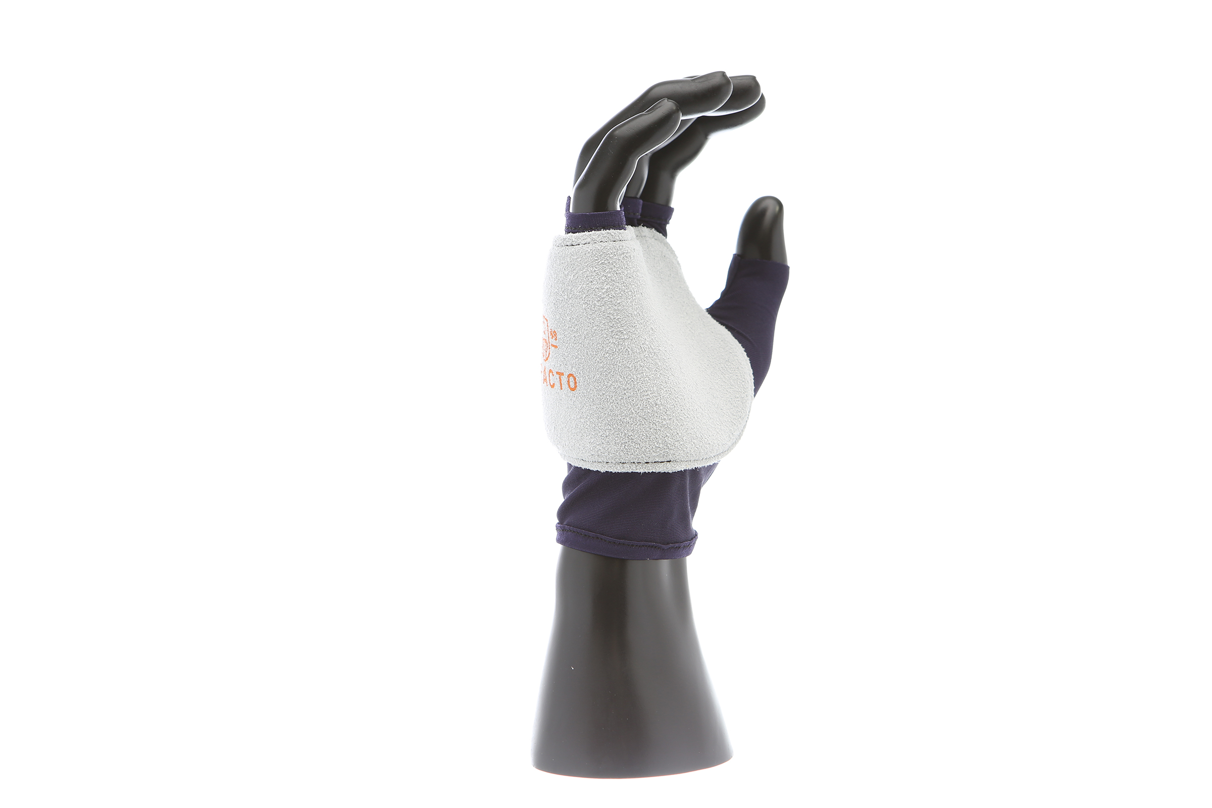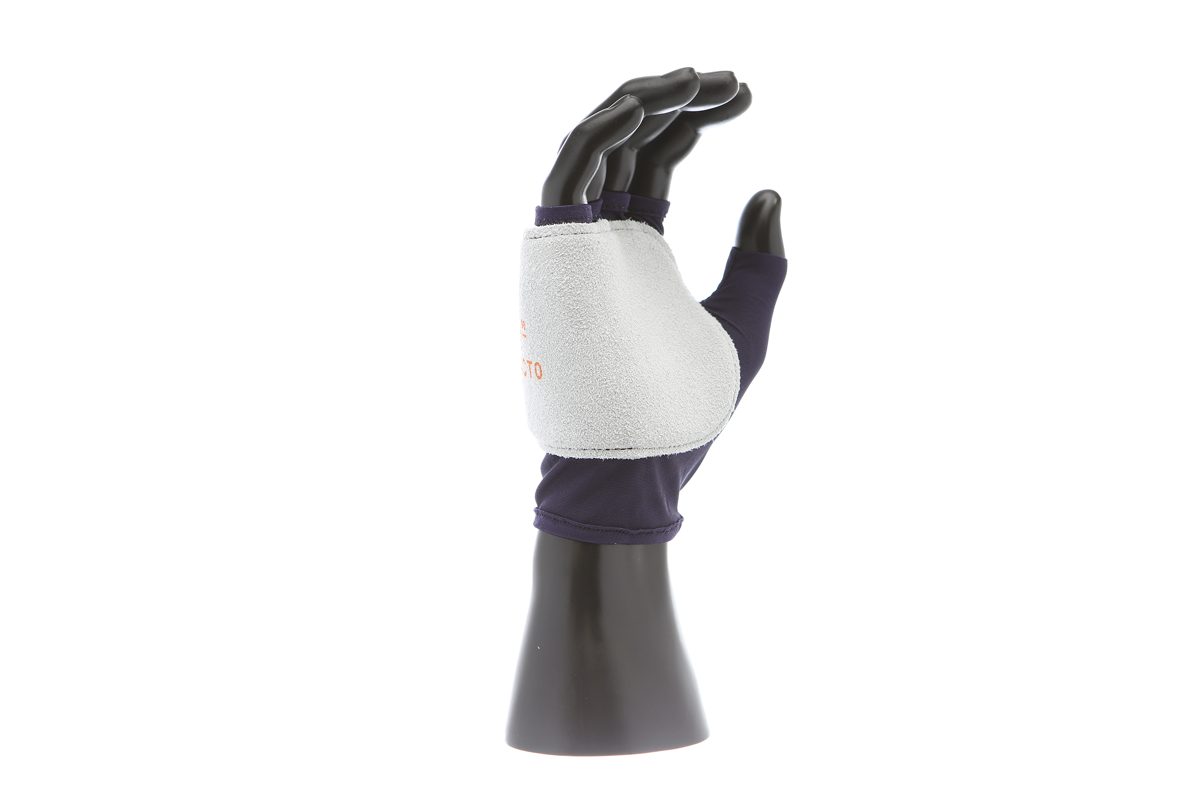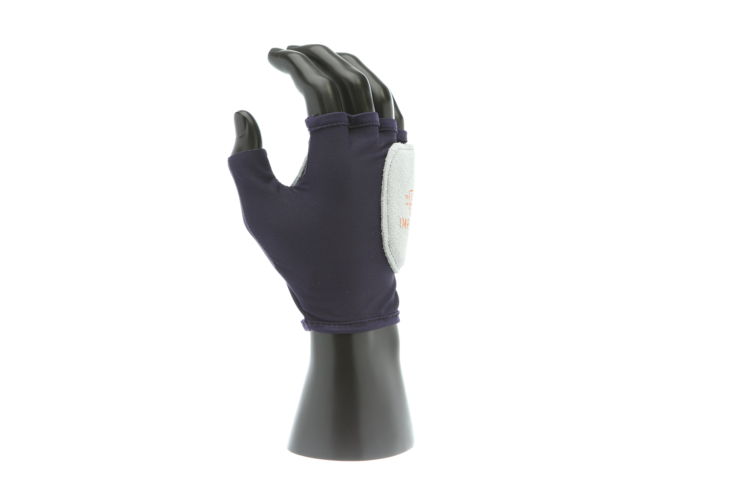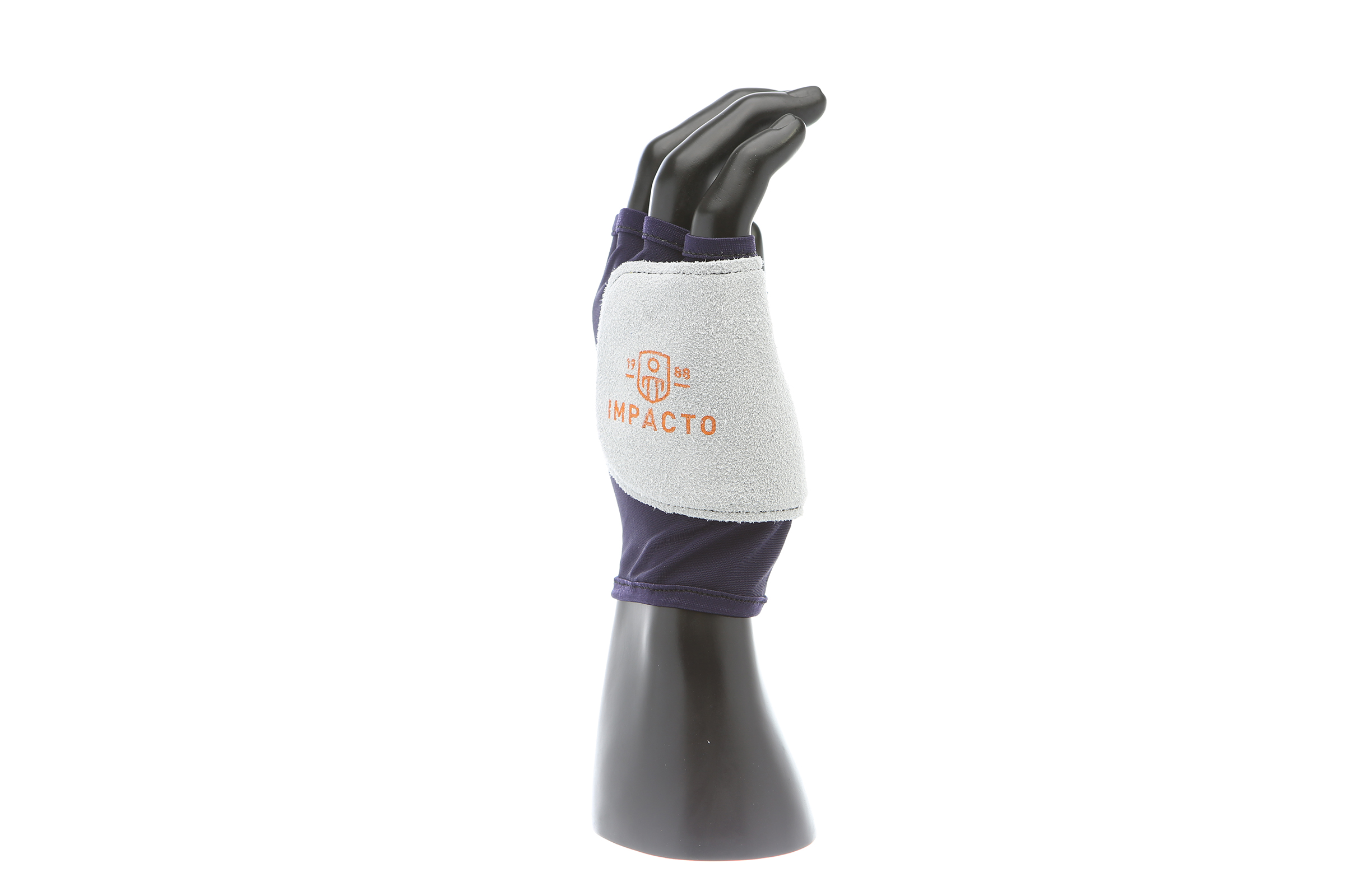 IMPACTO Fingerless nylon glove. Suede leather facing ensures abrasion protection. Impact and vibration reducing Viscolas 1/8″ padding protects the palm, edge and back of the hand.