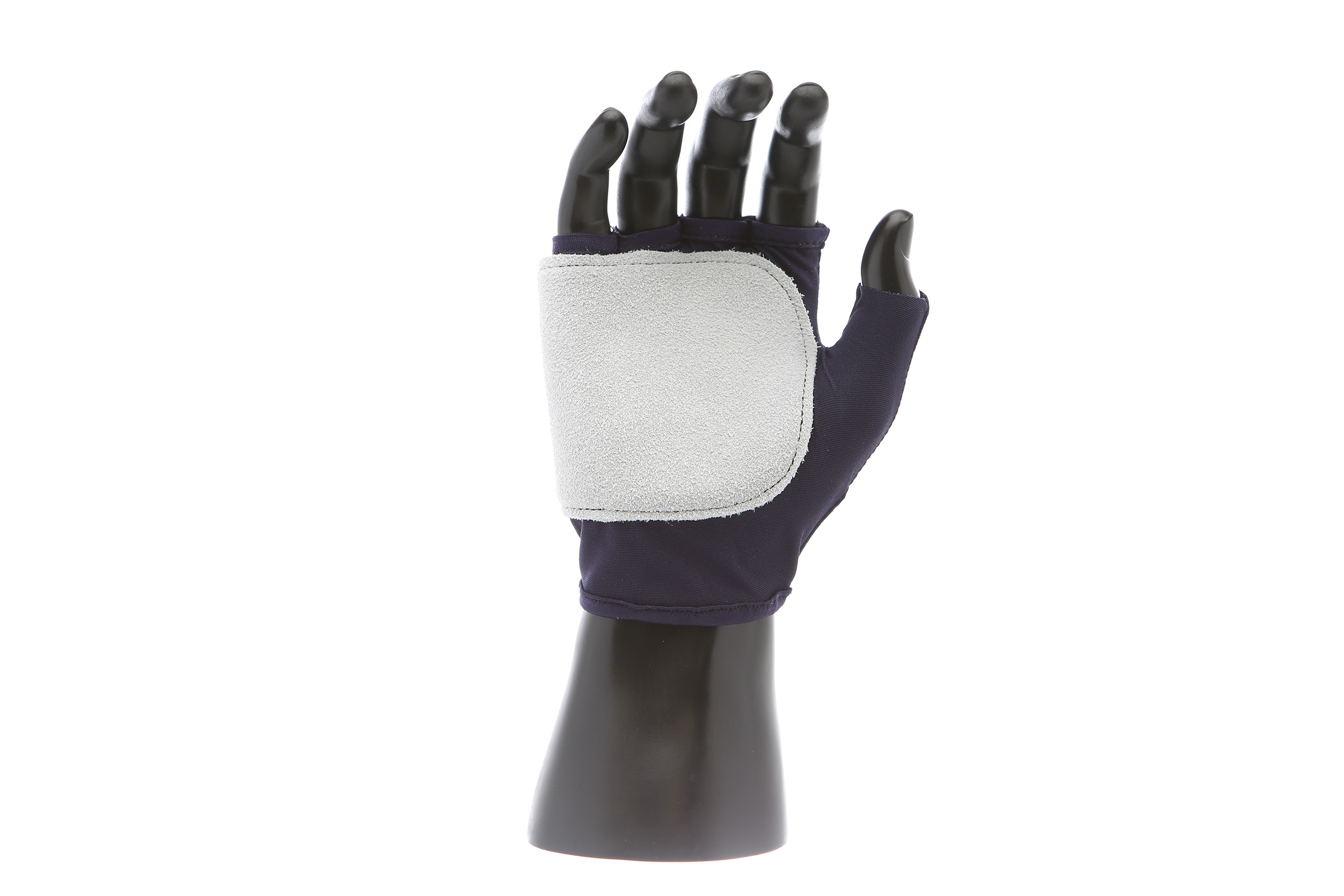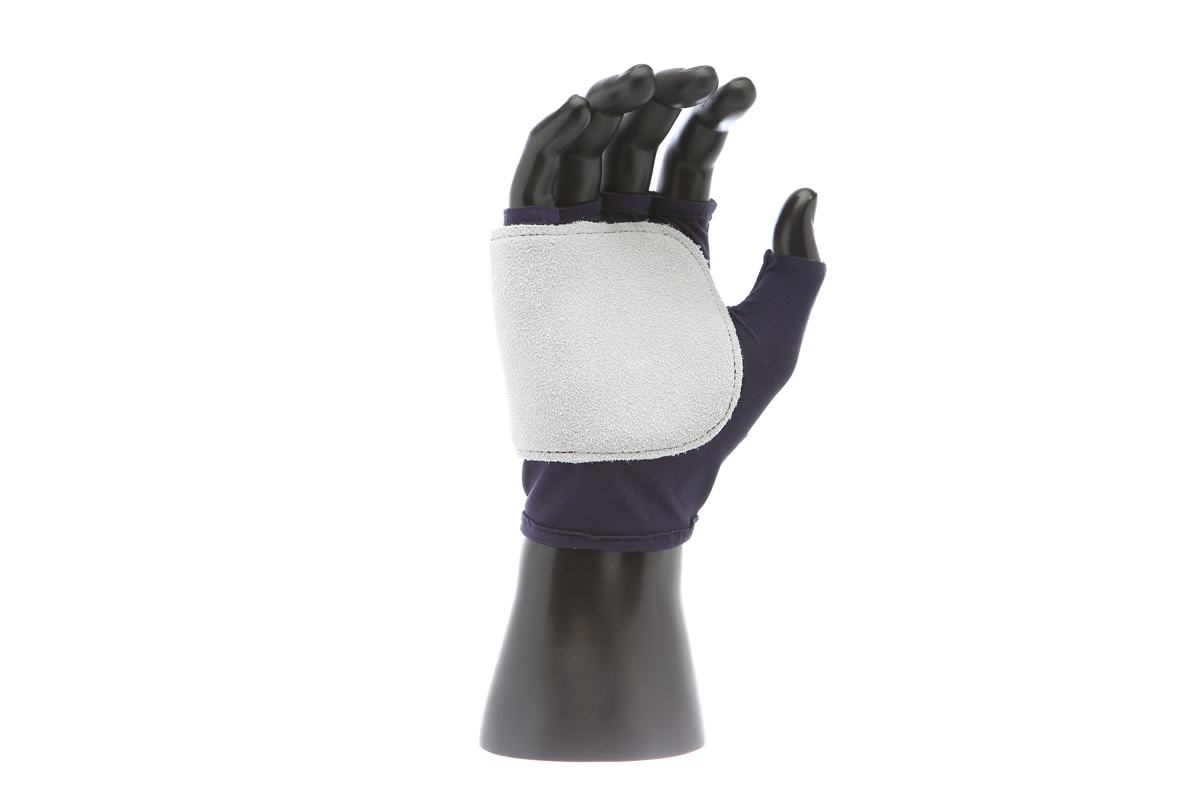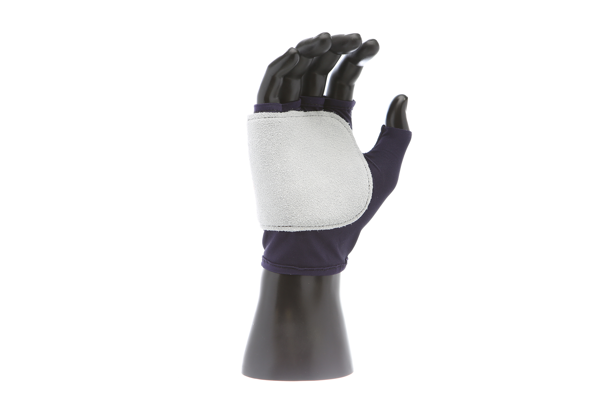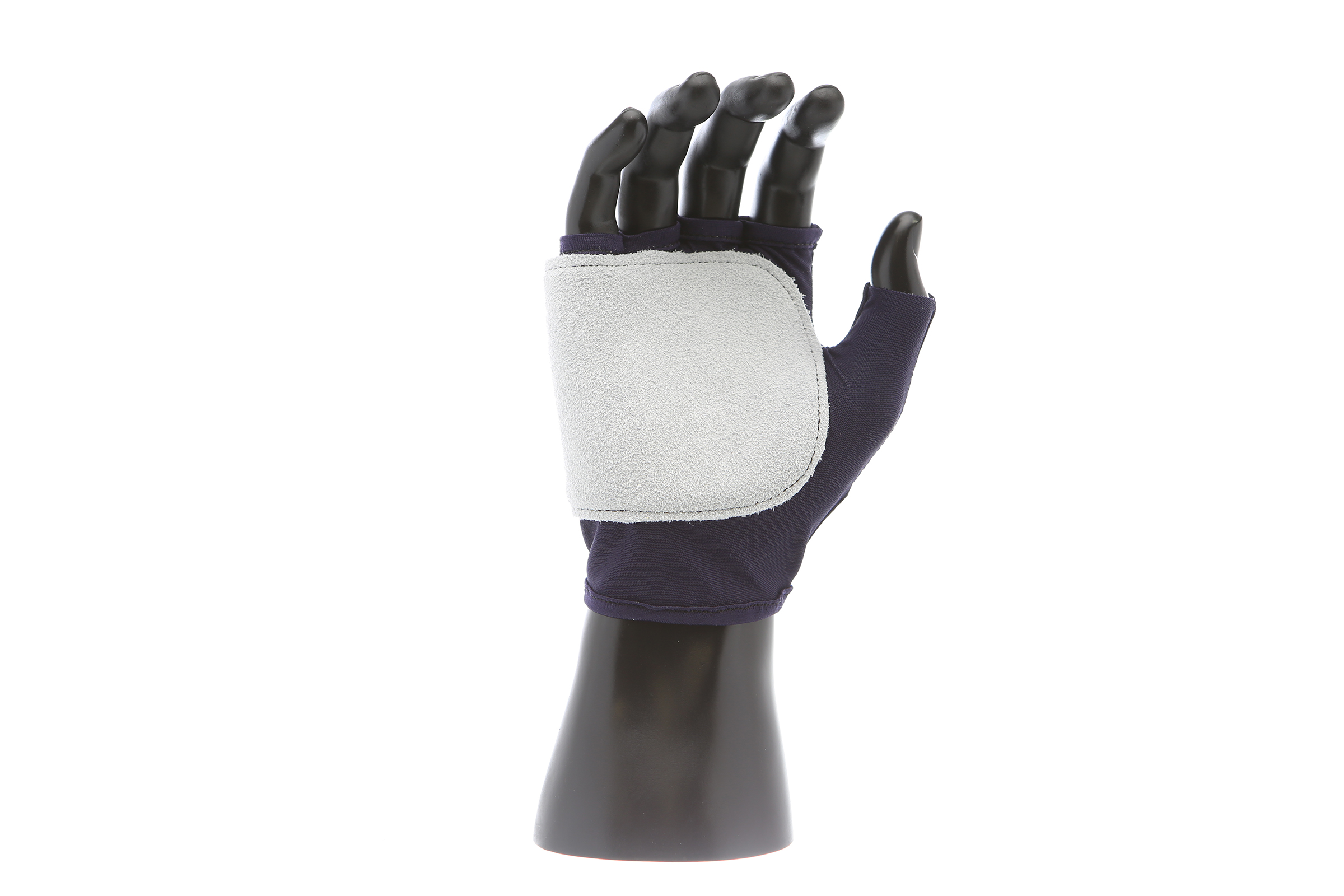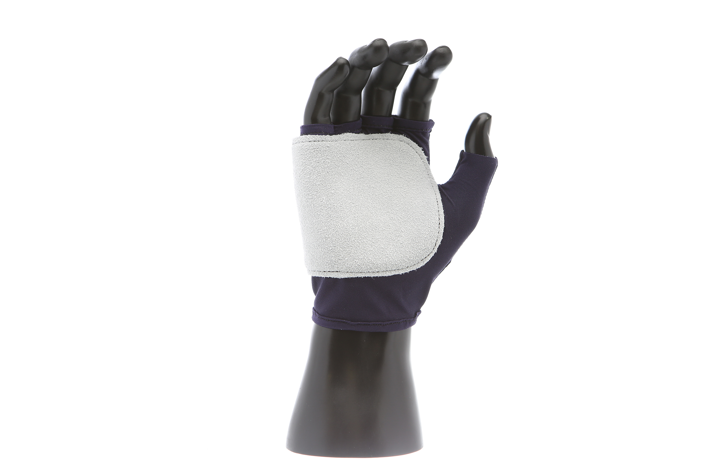IMPACTO Fingerless nylon glove. Suede leather facing ensures abrasion protection. Impact and vibration reducing Viscolas 1/8″ padding protects the palm, edge and back of the hand.