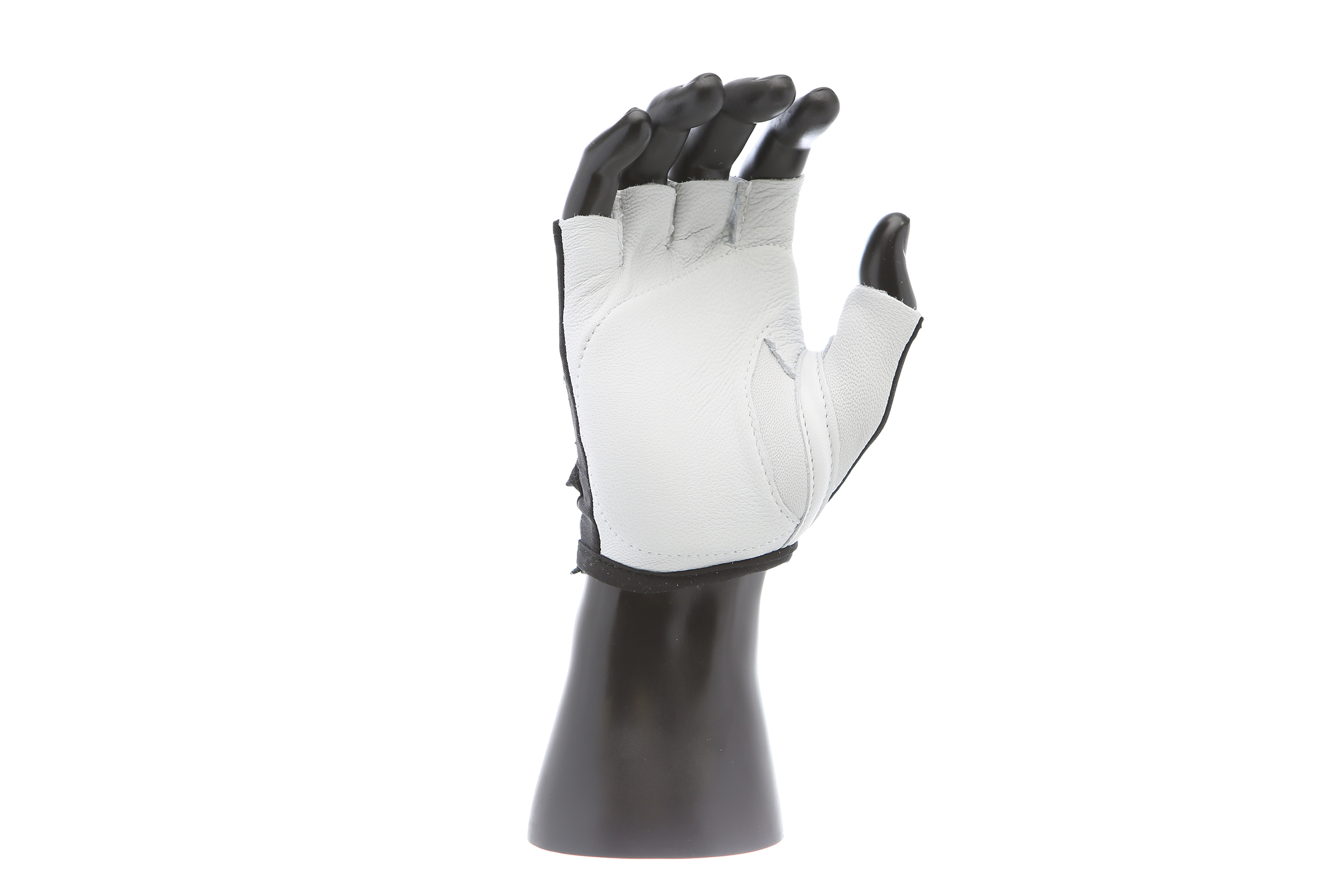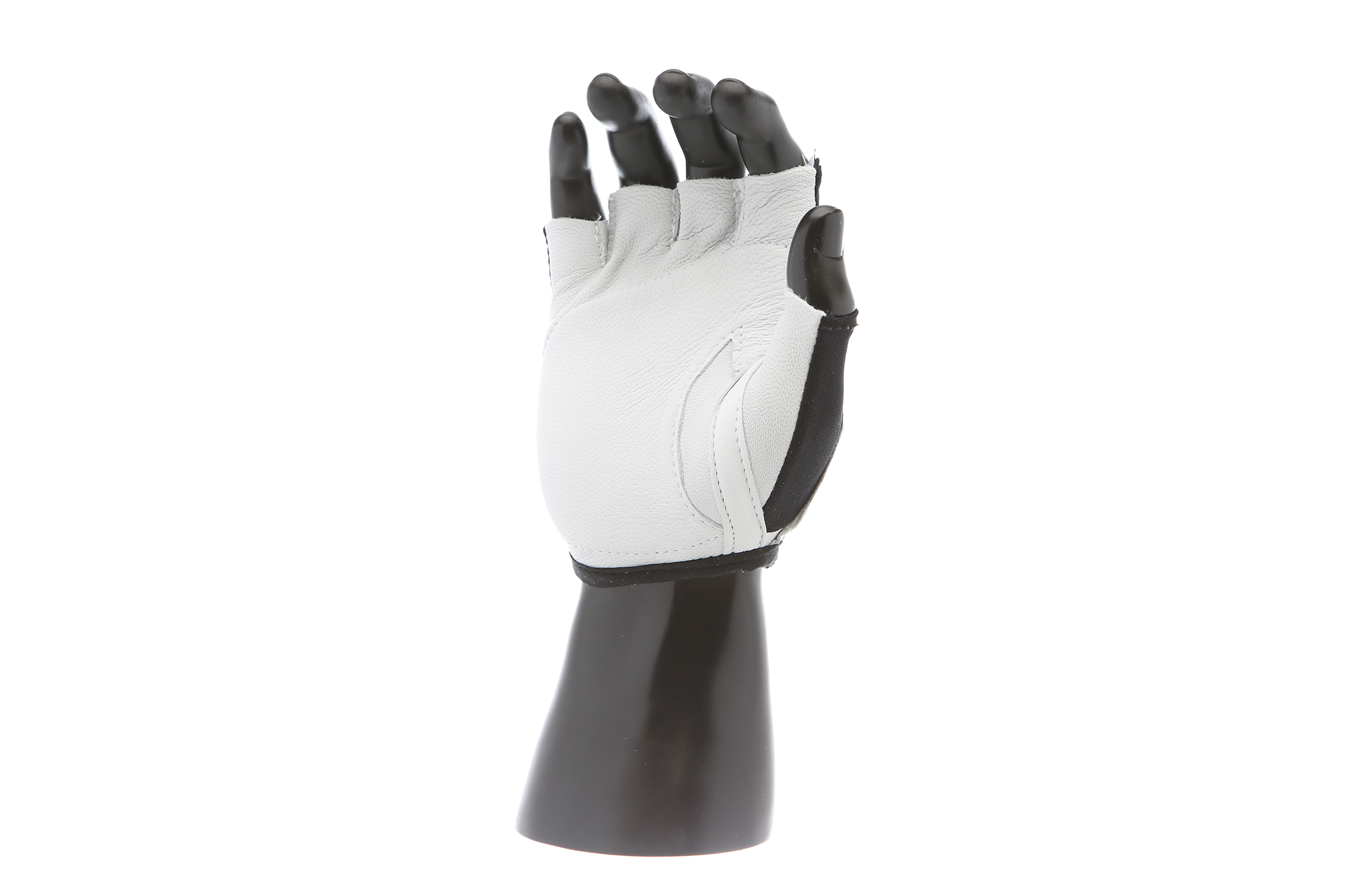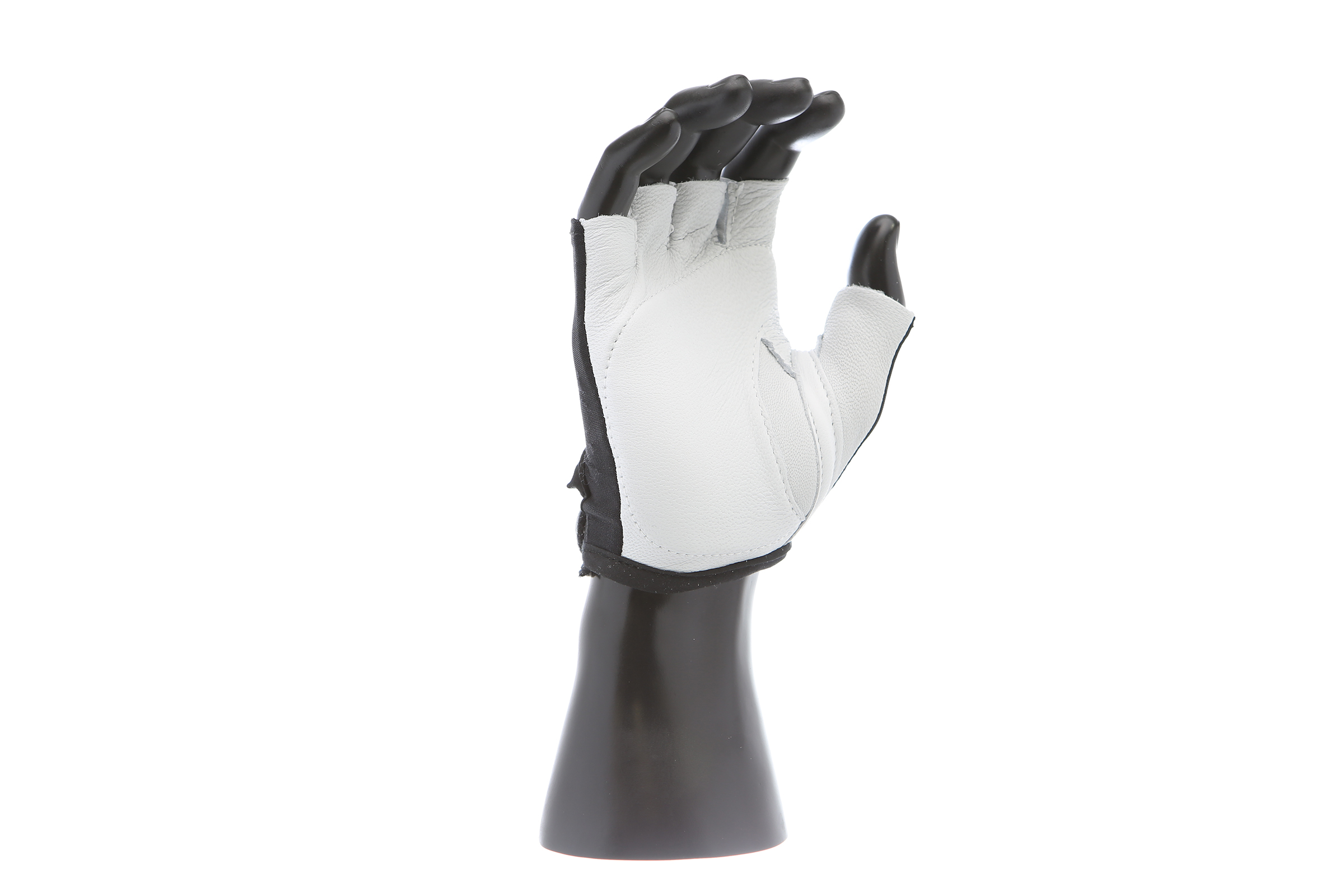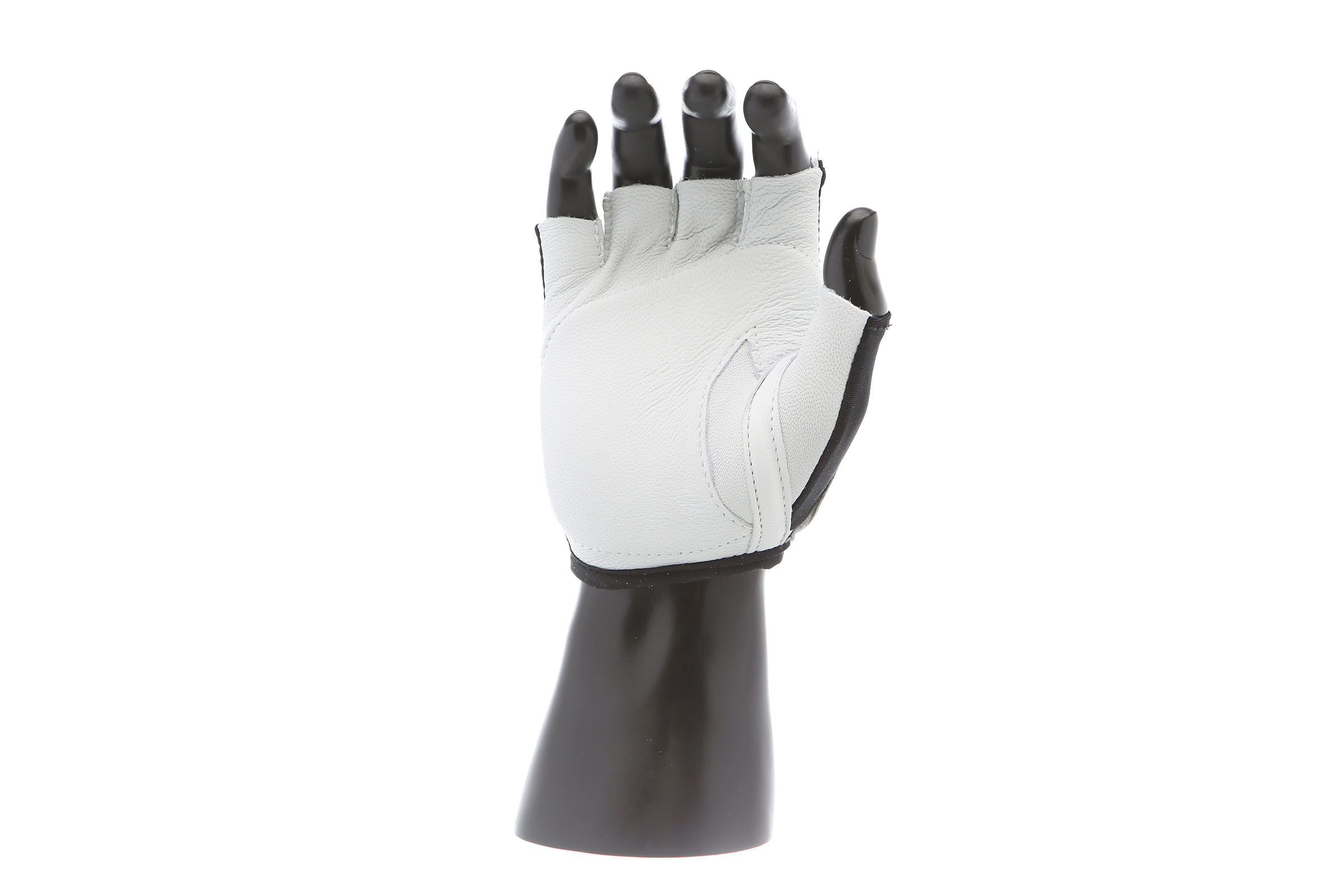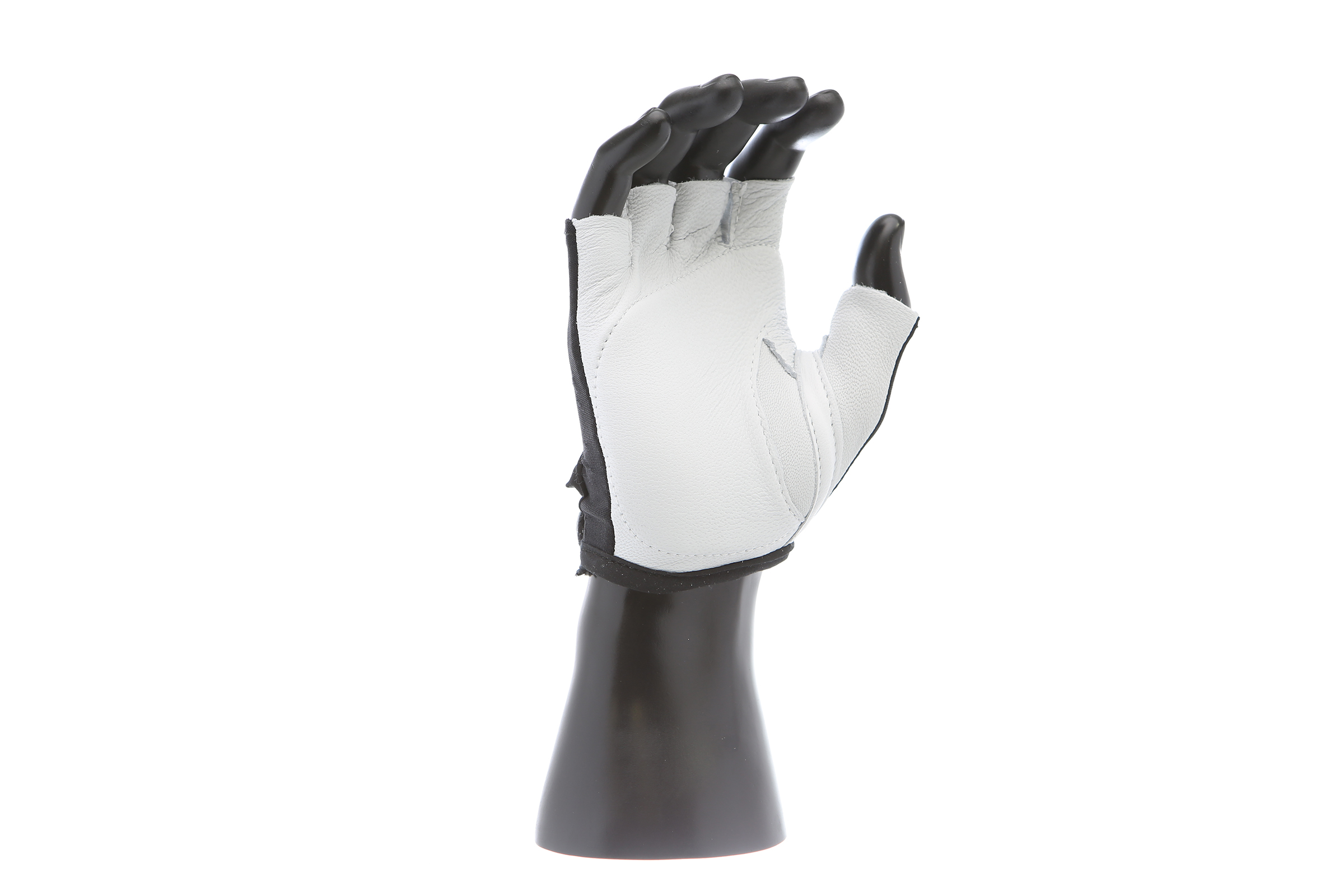 IMPACTO Anti-Impact Gloves. Half finger, nylon back with soft pearl leather palm ensure outstanding dexterity and comfort. Impact absorbing visco-elastic polymer VEP padding in the palm. Adjustable hook and loop wrist closure.