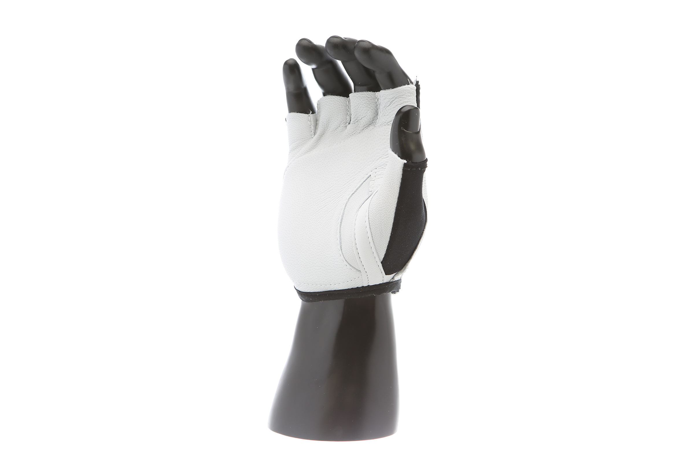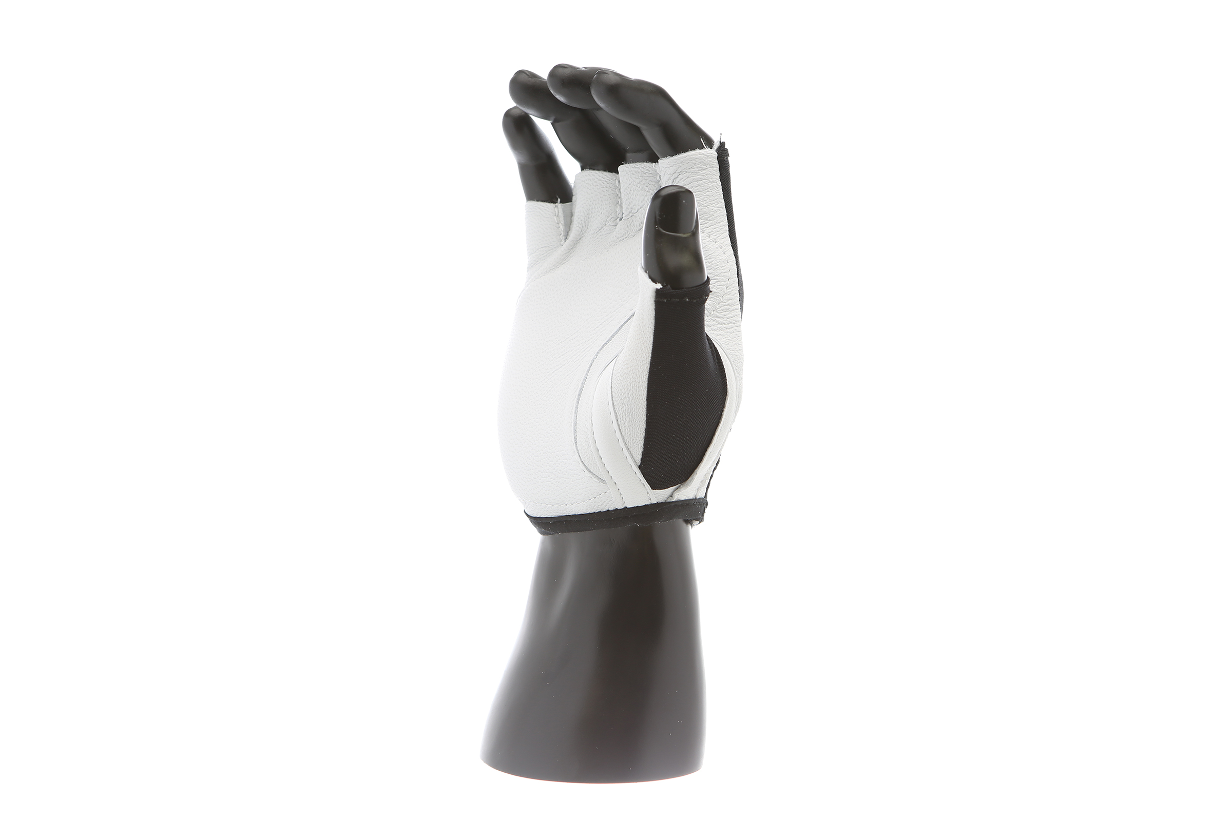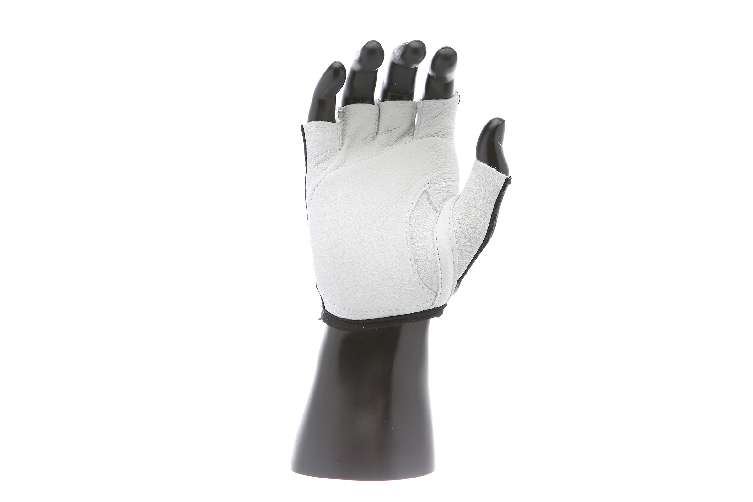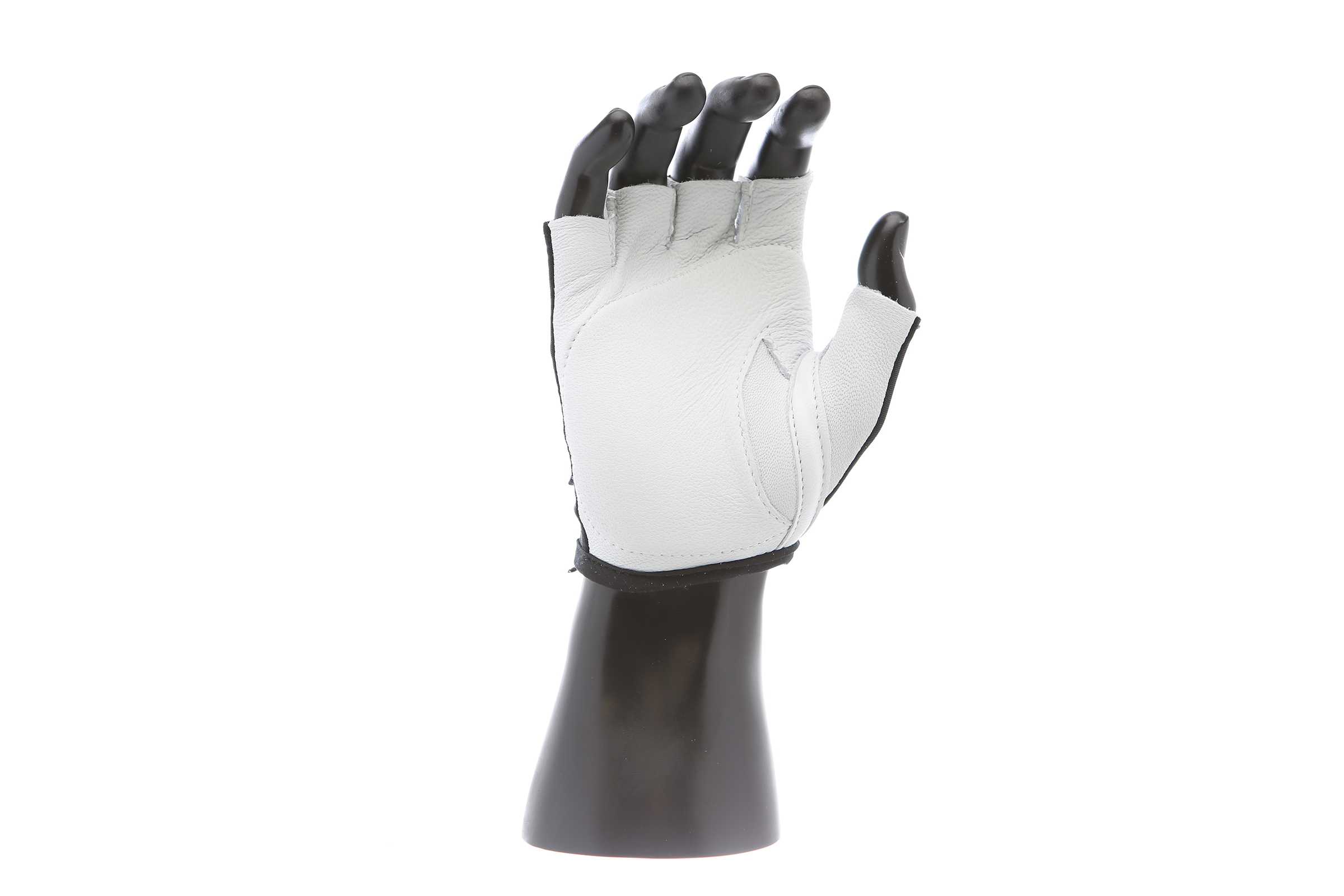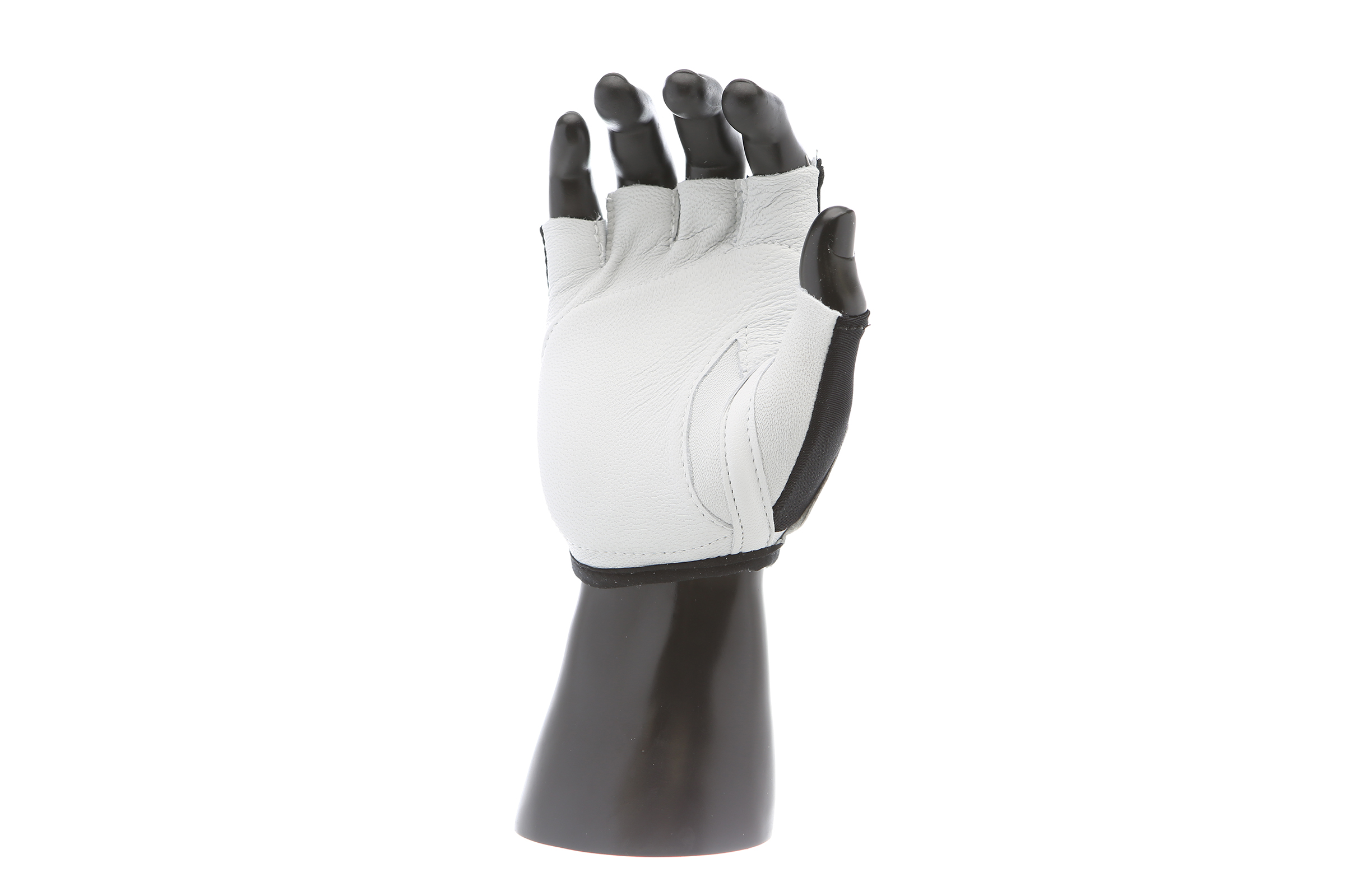 IMPACTO Anti-Impact Gloves. Half finger, nylon back with soft pearl leather palm ensure outstanding dexterity and comfort. Impact absorbing visco-elastic polymer VEP padding in the palm. Adjustable hook and loop wrist closure.