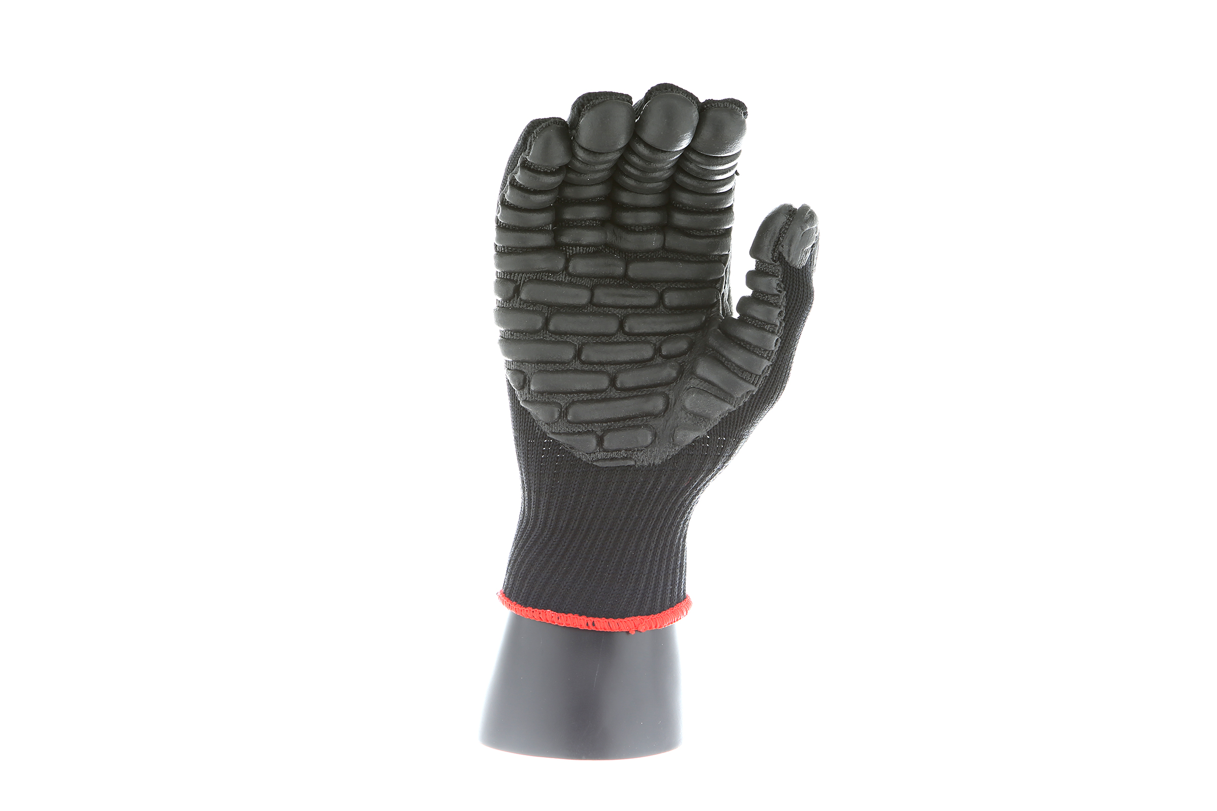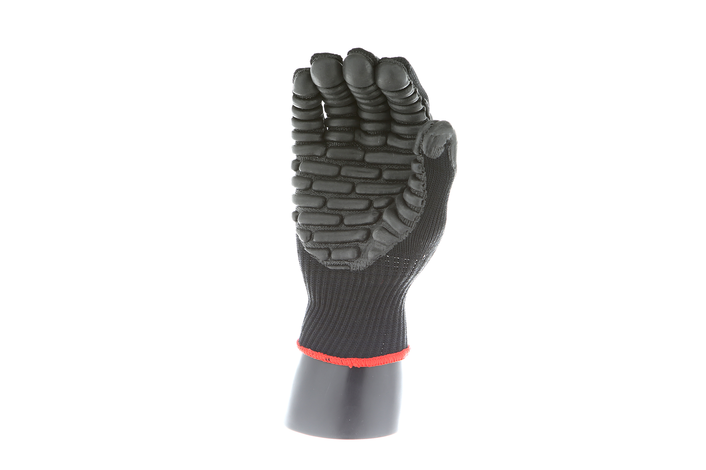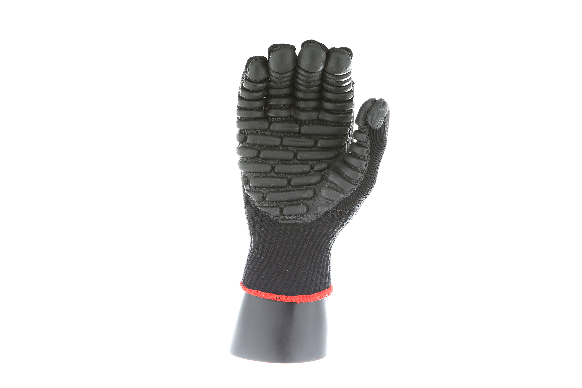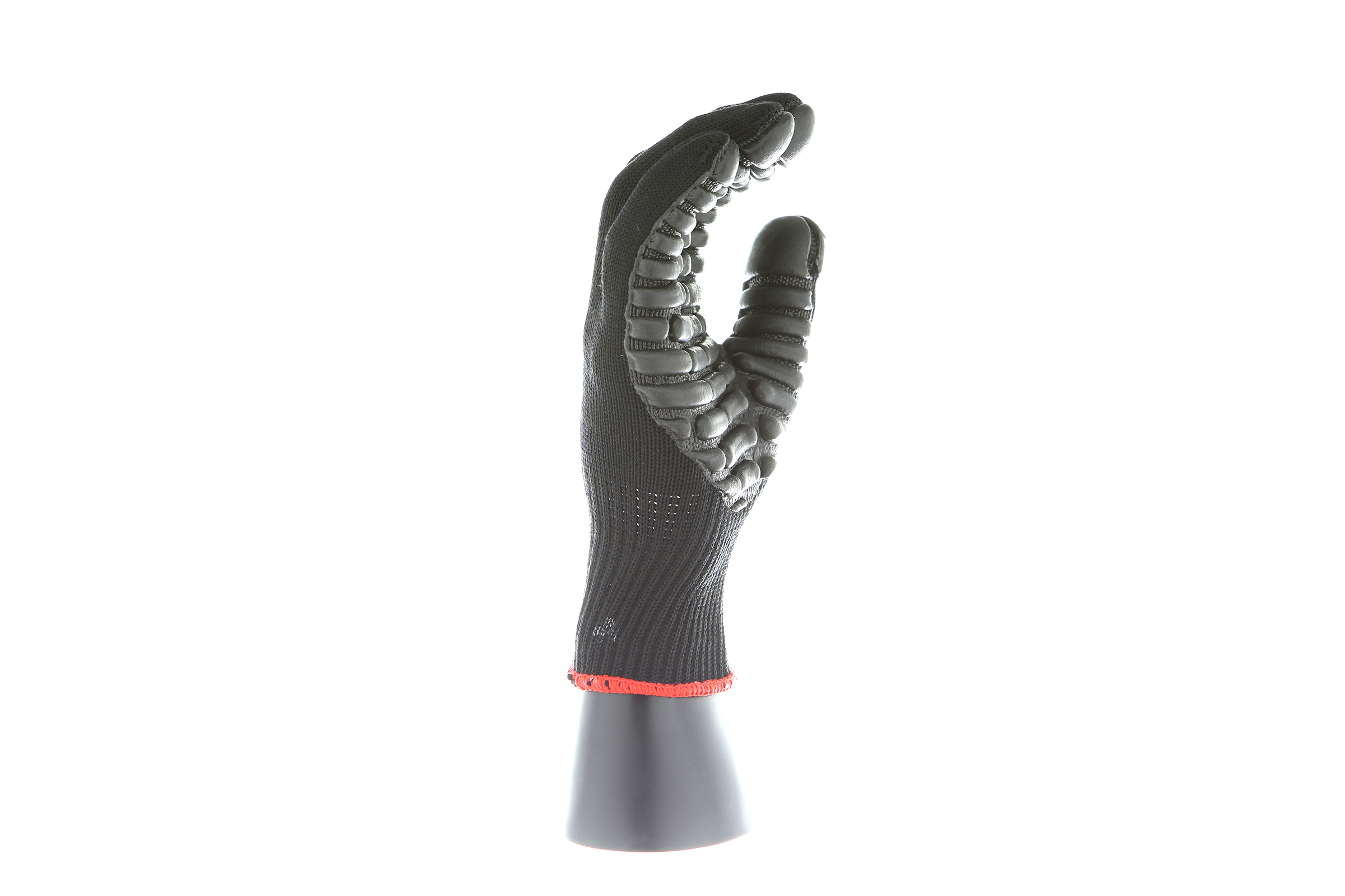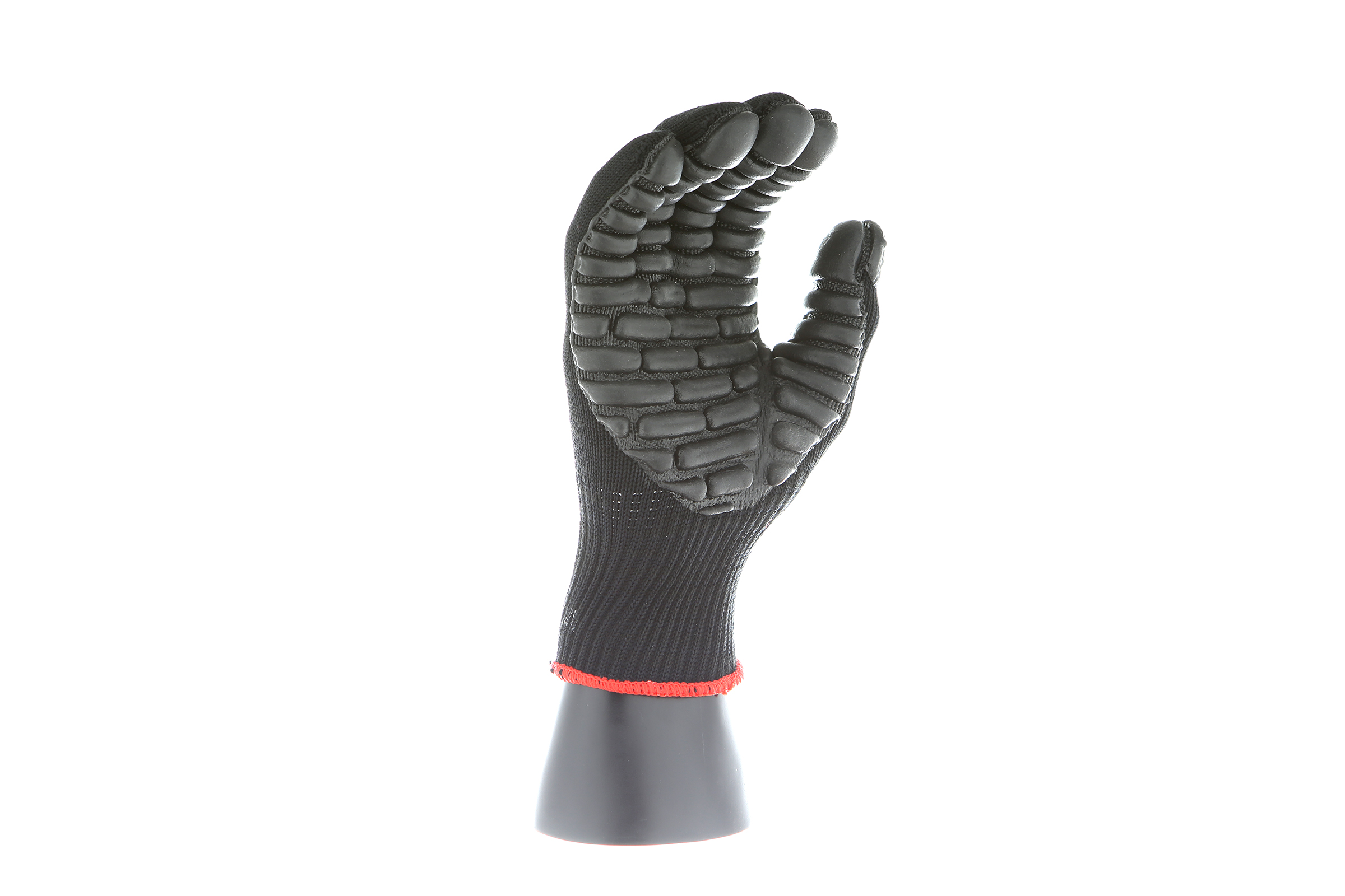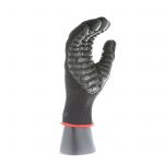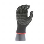 IMPACTO Economical solution to vibration protection. Nylon/cotton knitted material ensures stretch and breathability. Palm coated with “pods” of lightweight cellular Chloroprene. This design ensures extreme comfort. Utilizing encapsulated air to cushion and dampen vibration, giving the user optimum dexterity with a lightweight feel and reduced bunching.
