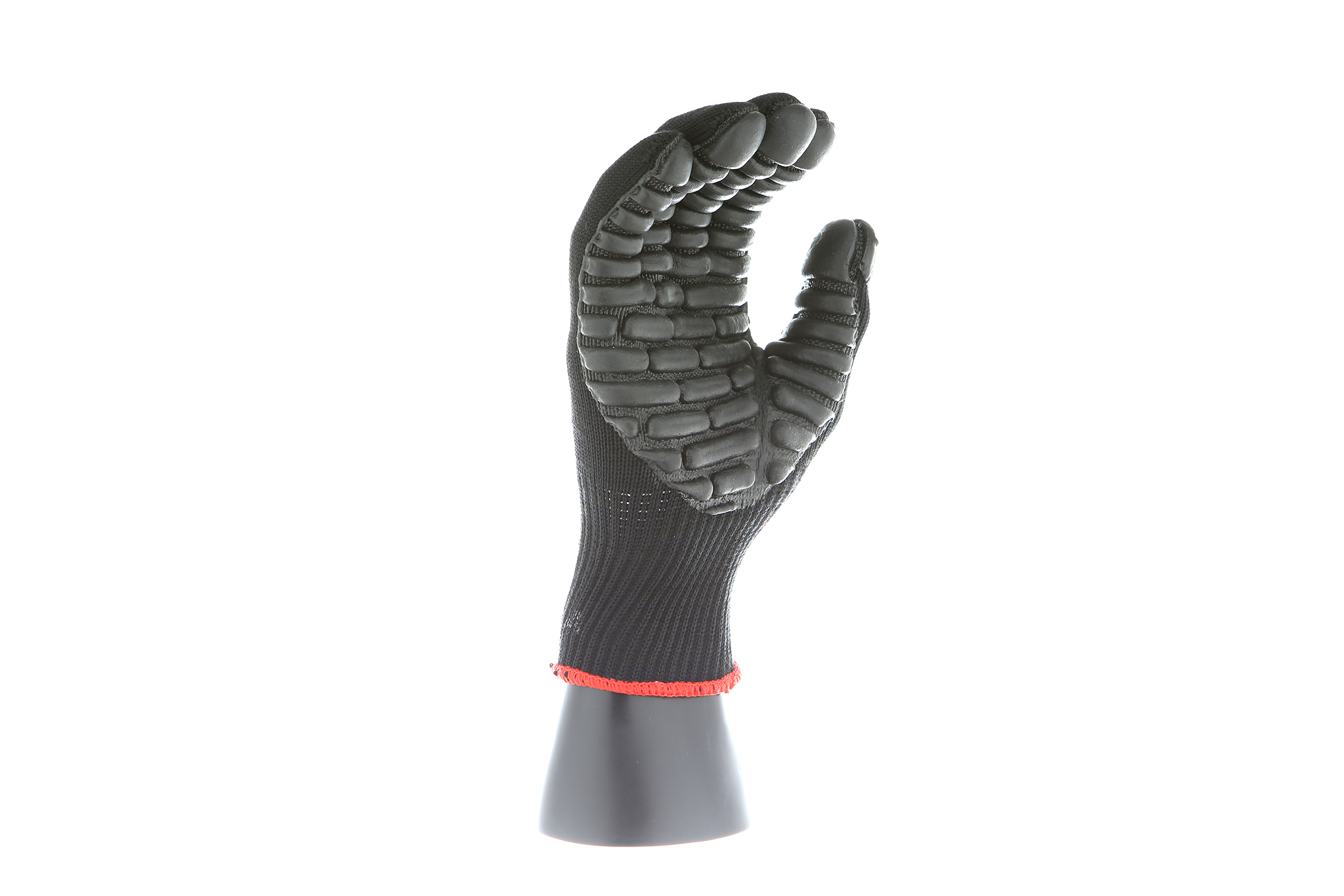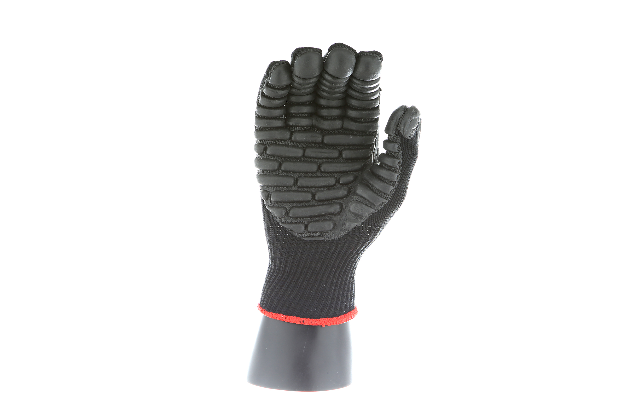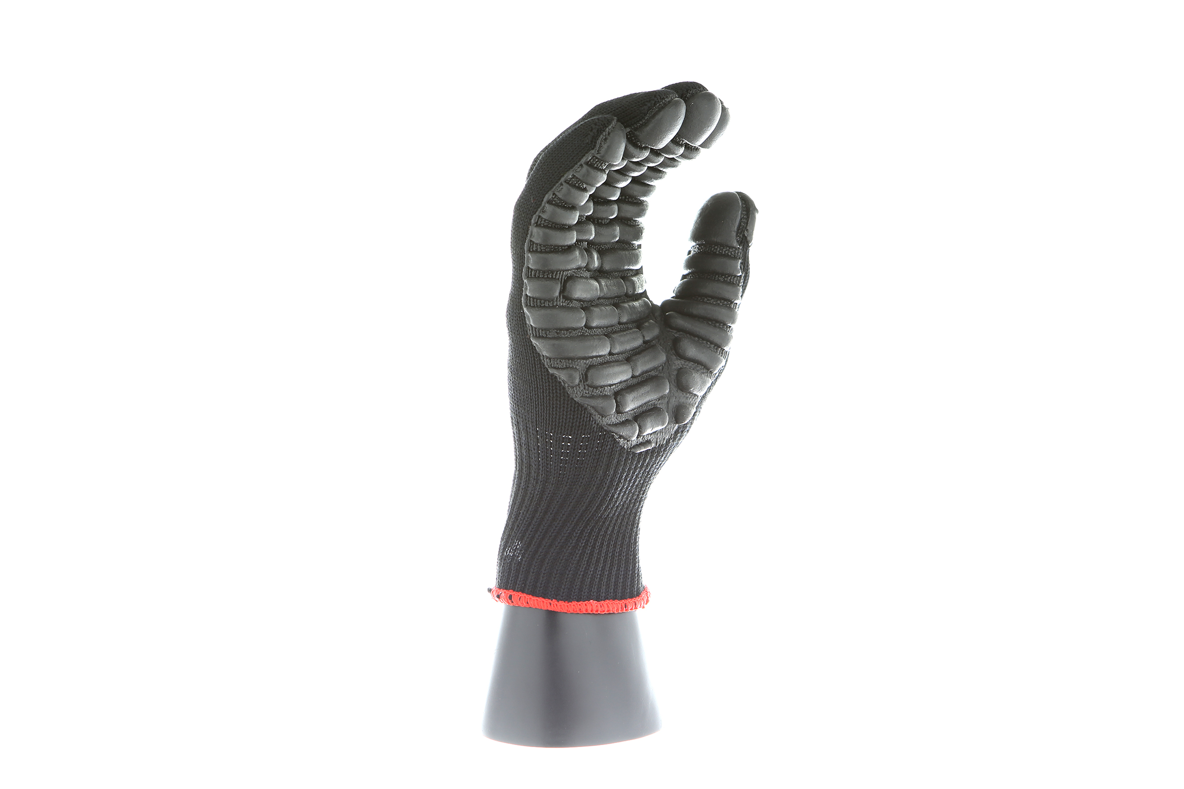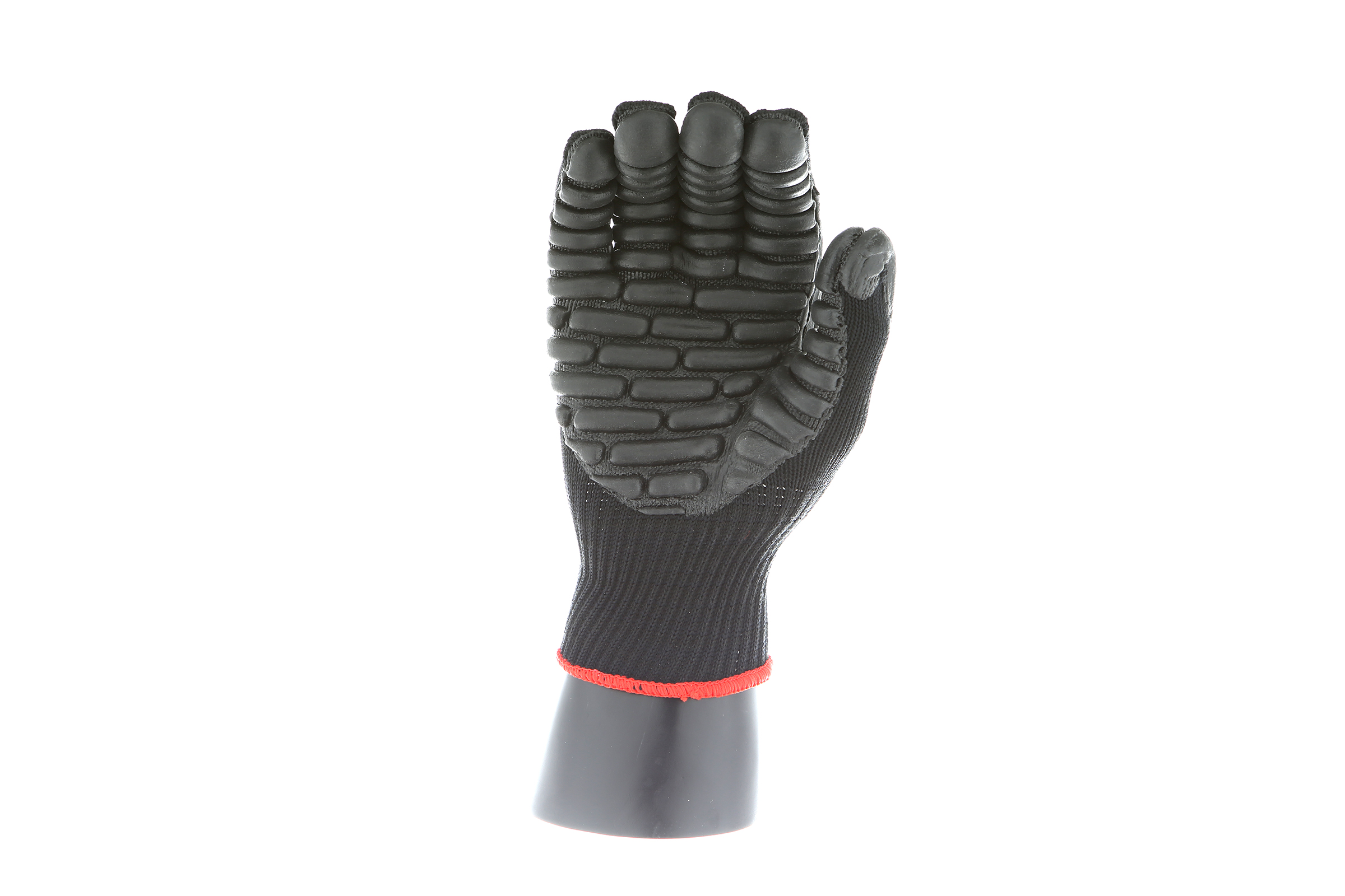 IMPACTO Economical solution to vibration protection. Nylon/cotton knitted material ensures stretch and breathability. Palm coated with “pods” of lightweight cellular Chloroprene. This design ensures extreme comfort. Utilizing encapsulated air to cushion and dampen vibration, giving the user optimum dexterity with a lightweight feel and reduced bunching.