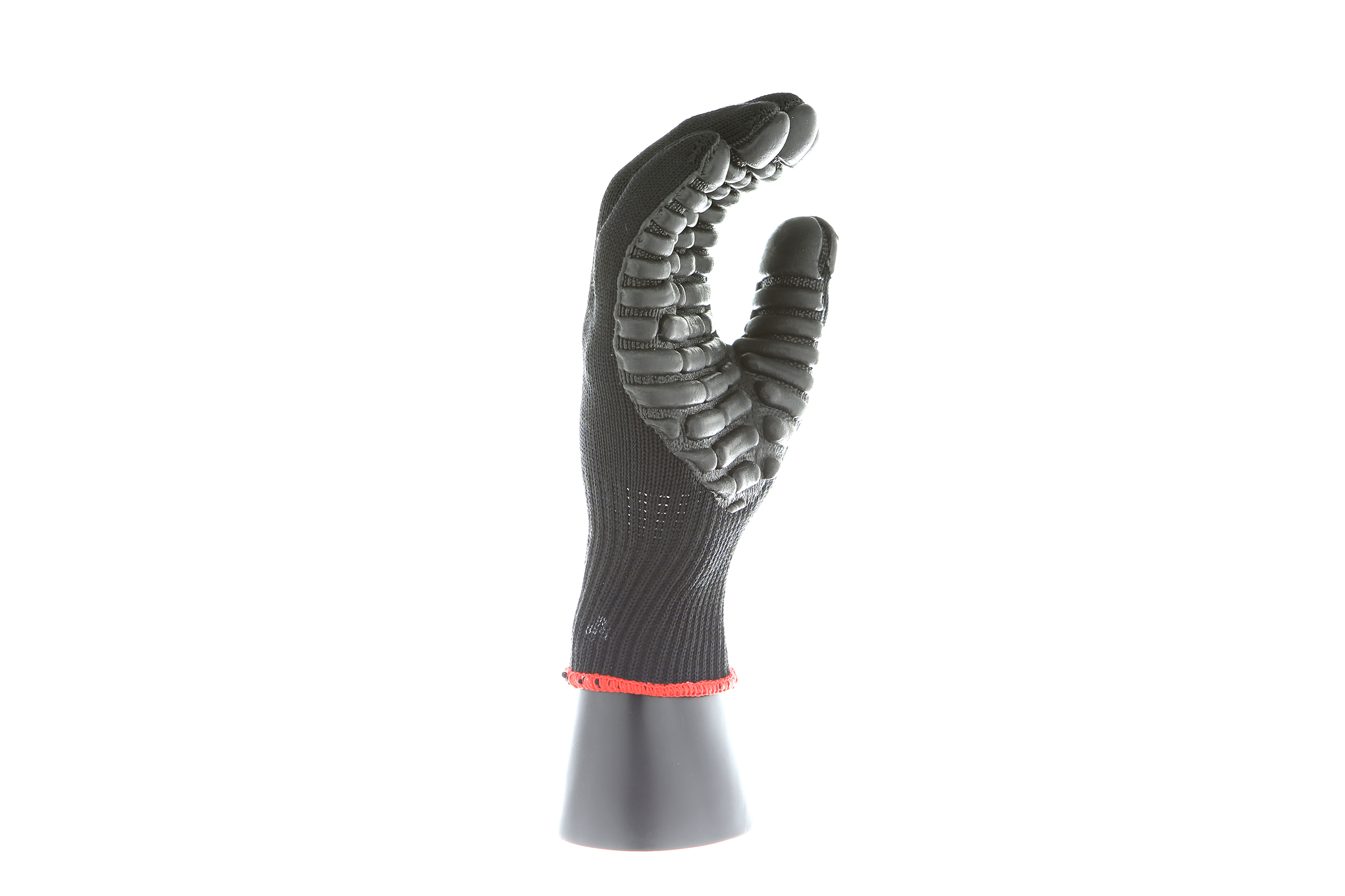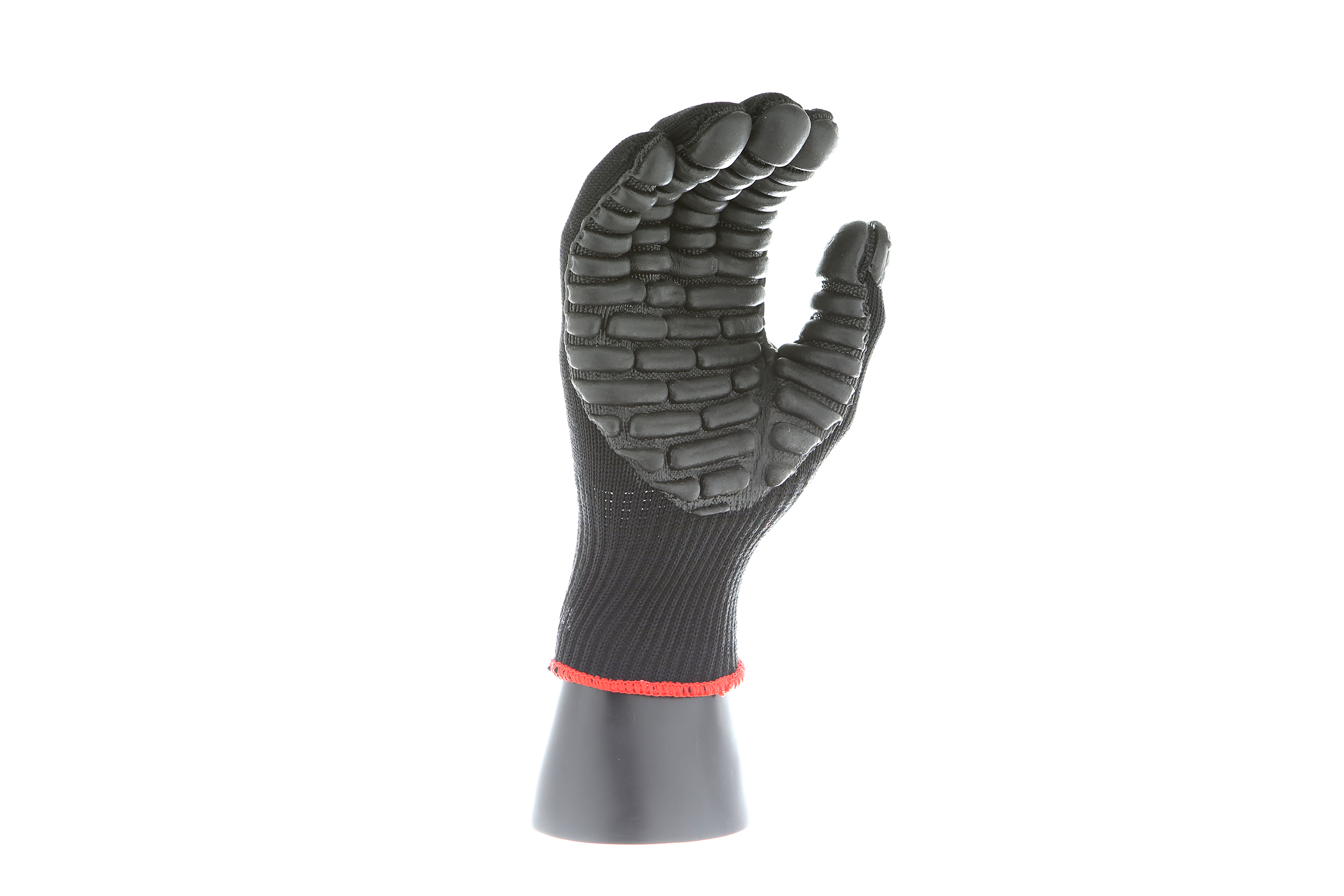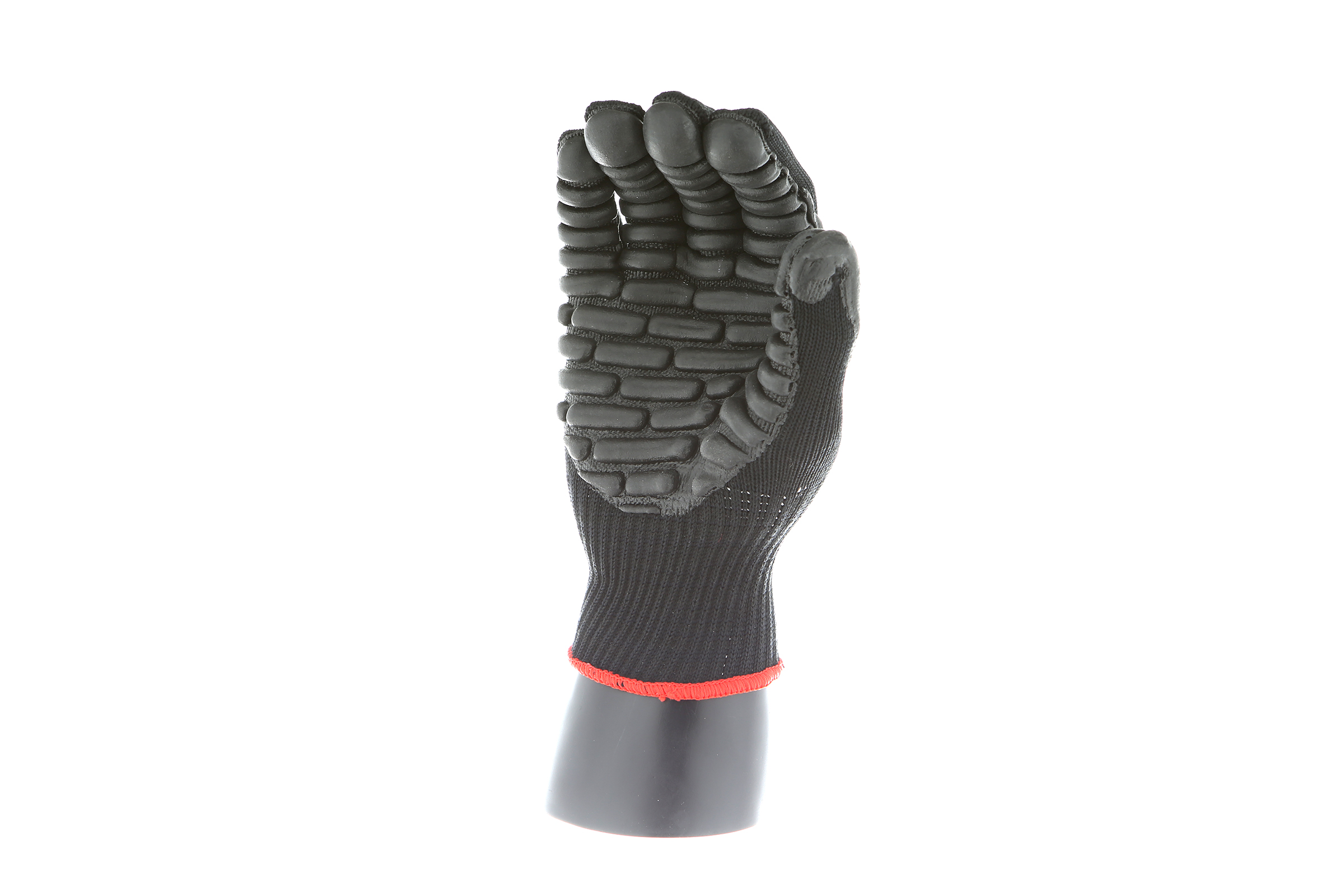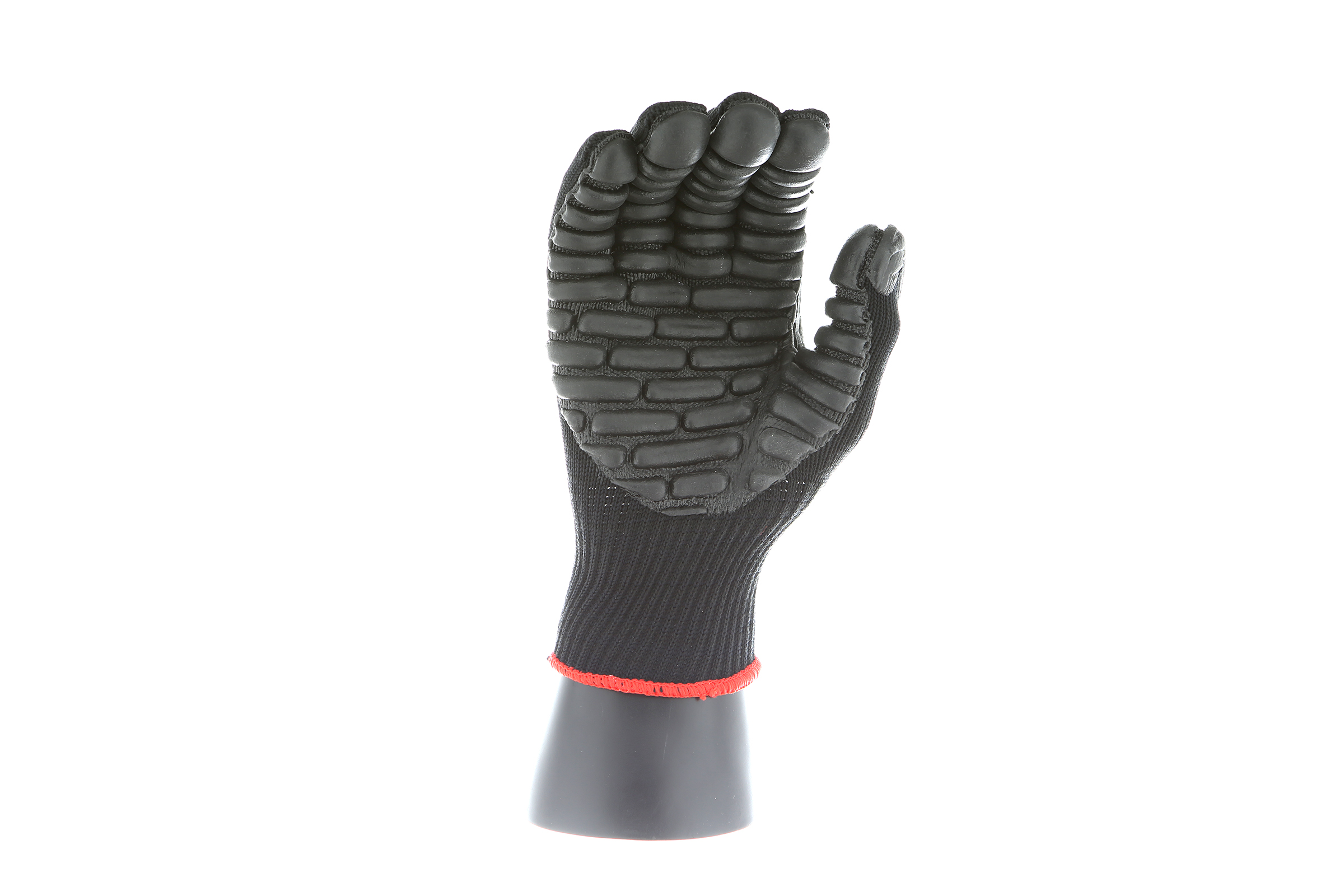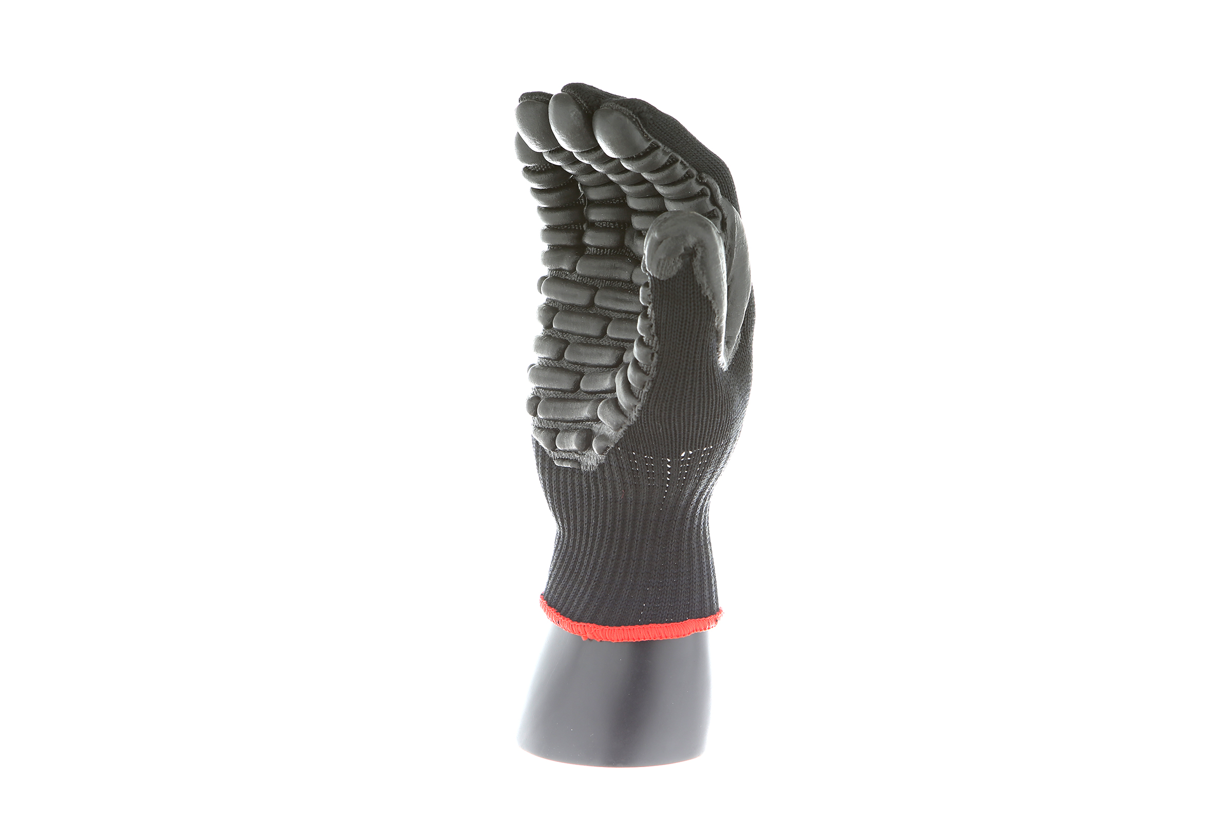 IMPACTO Economical solution to vibration protection. Nylon/cotton knitted material ensures stretch and breathability. Palm coated with “pods” of lightweight cellular Chloroprene. This design ensures extreme comfort. Utilizing encapsulated air to cushion and dampen vibration, giving the user optimum dexterity with a lightweight feel and reduced bunching.