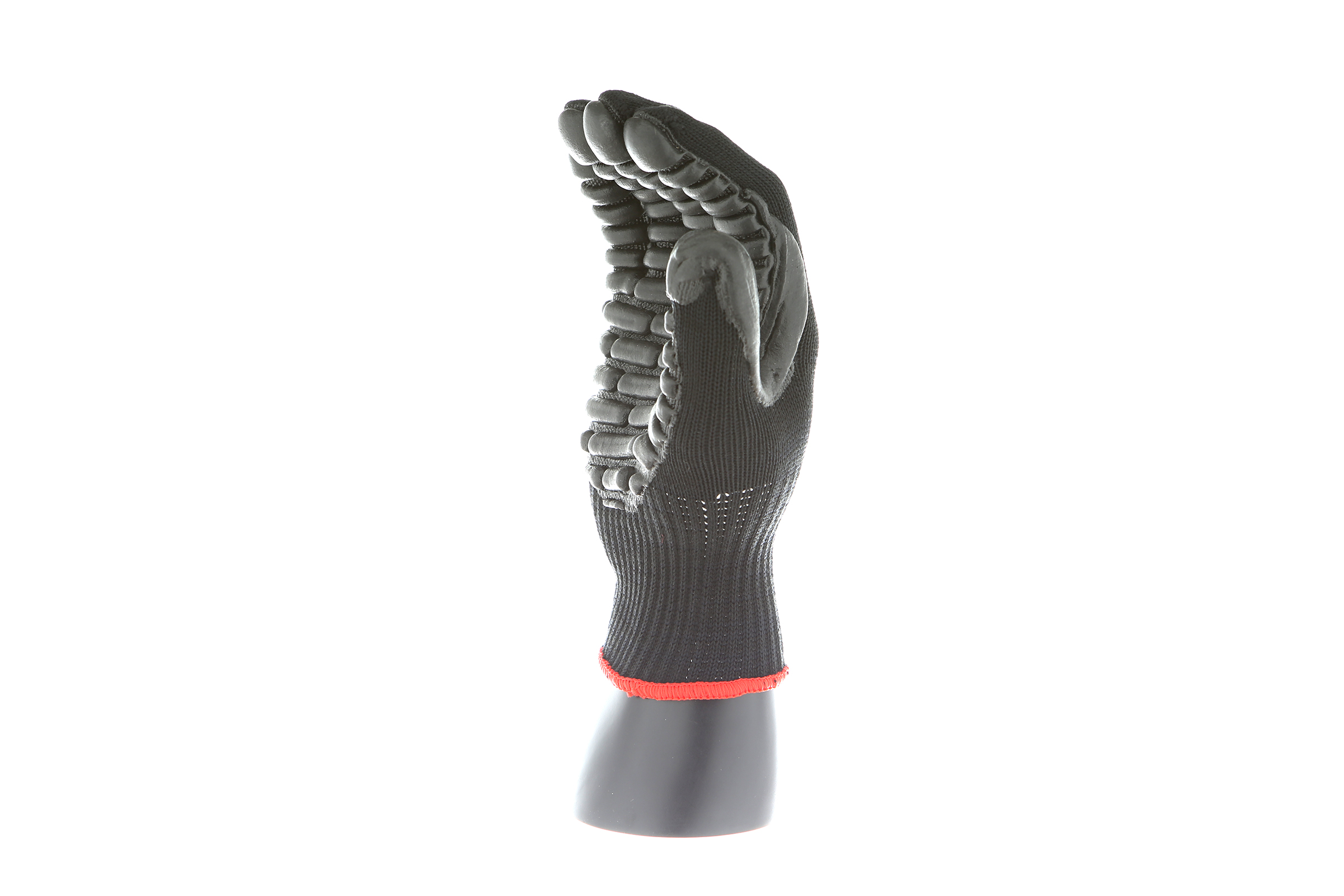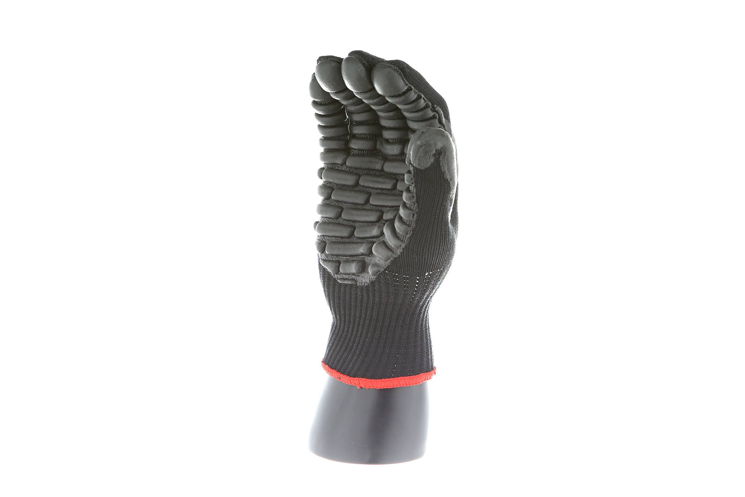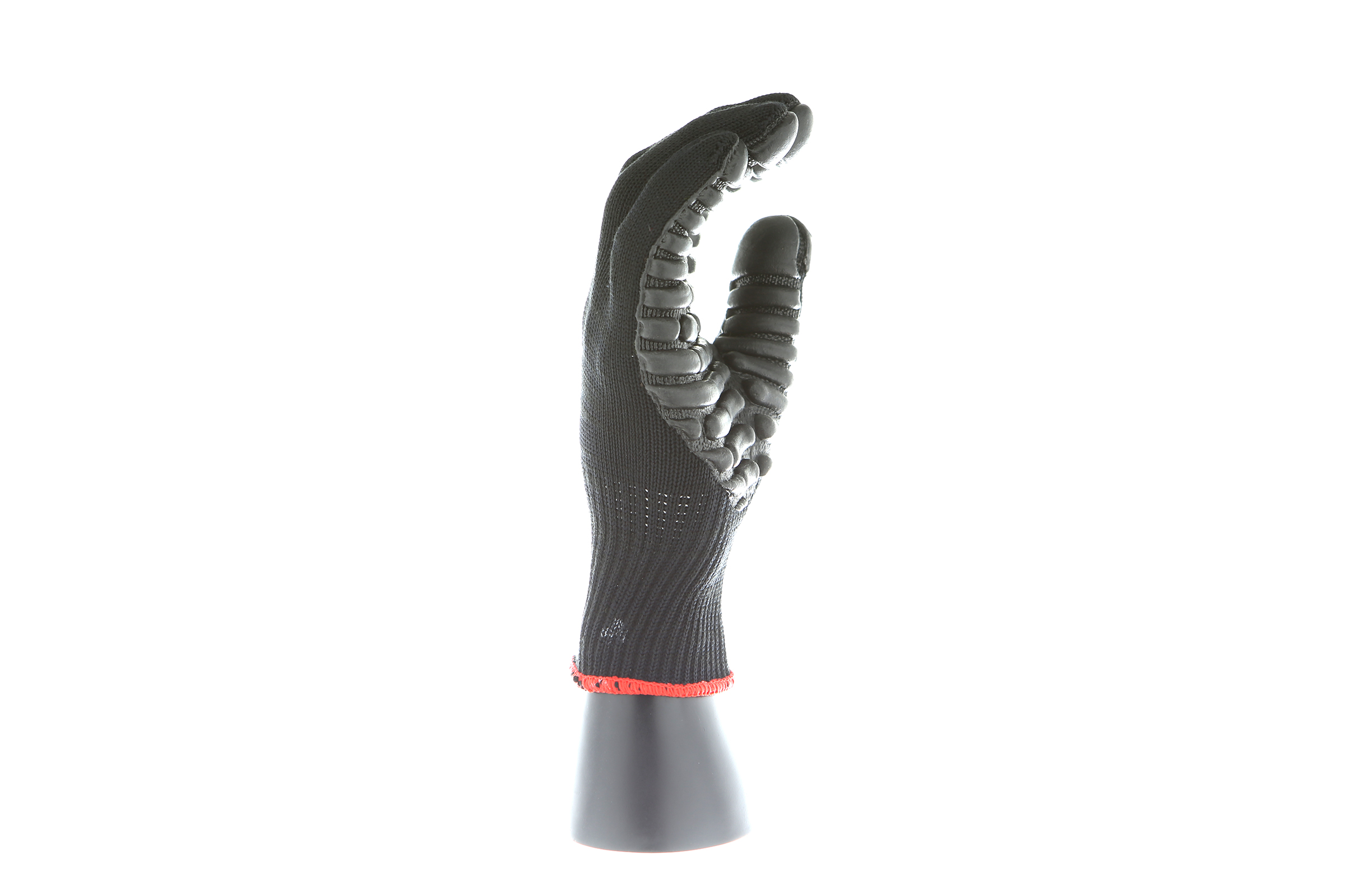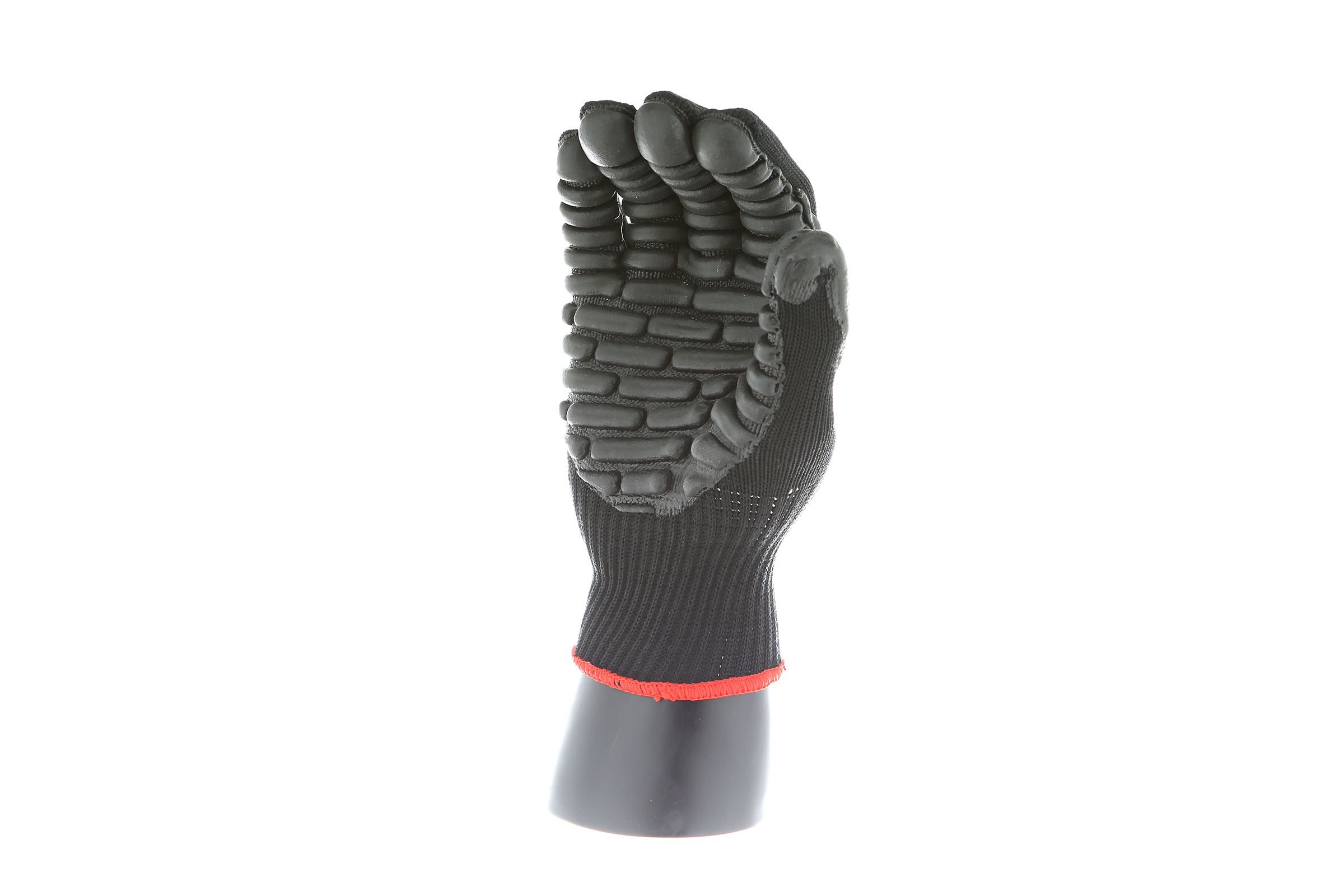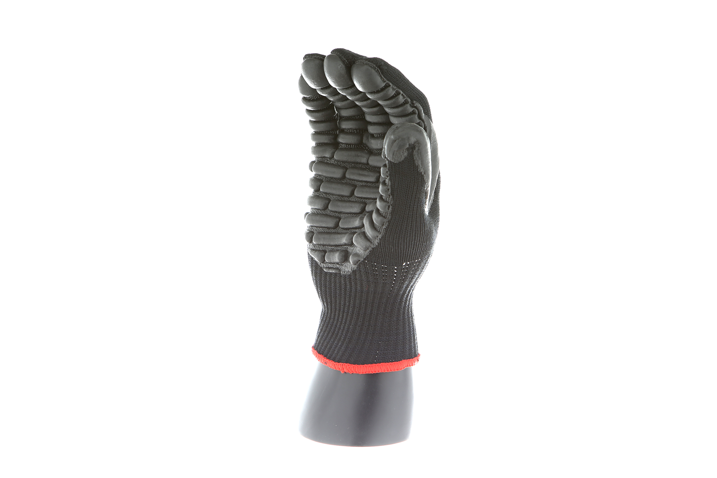 IMPACTO Economical solution to vibration protection. Nylon/cotton knitted material ensures stretch and breathability. Palm coated with “pods” of lightweight cellular Chloroprene. This design ensures extreme comfort. Utilizing encapsulated air to cushion and dampen vibration, giving the user optimum dexterity with a lightweight feel and reduced bunching.
