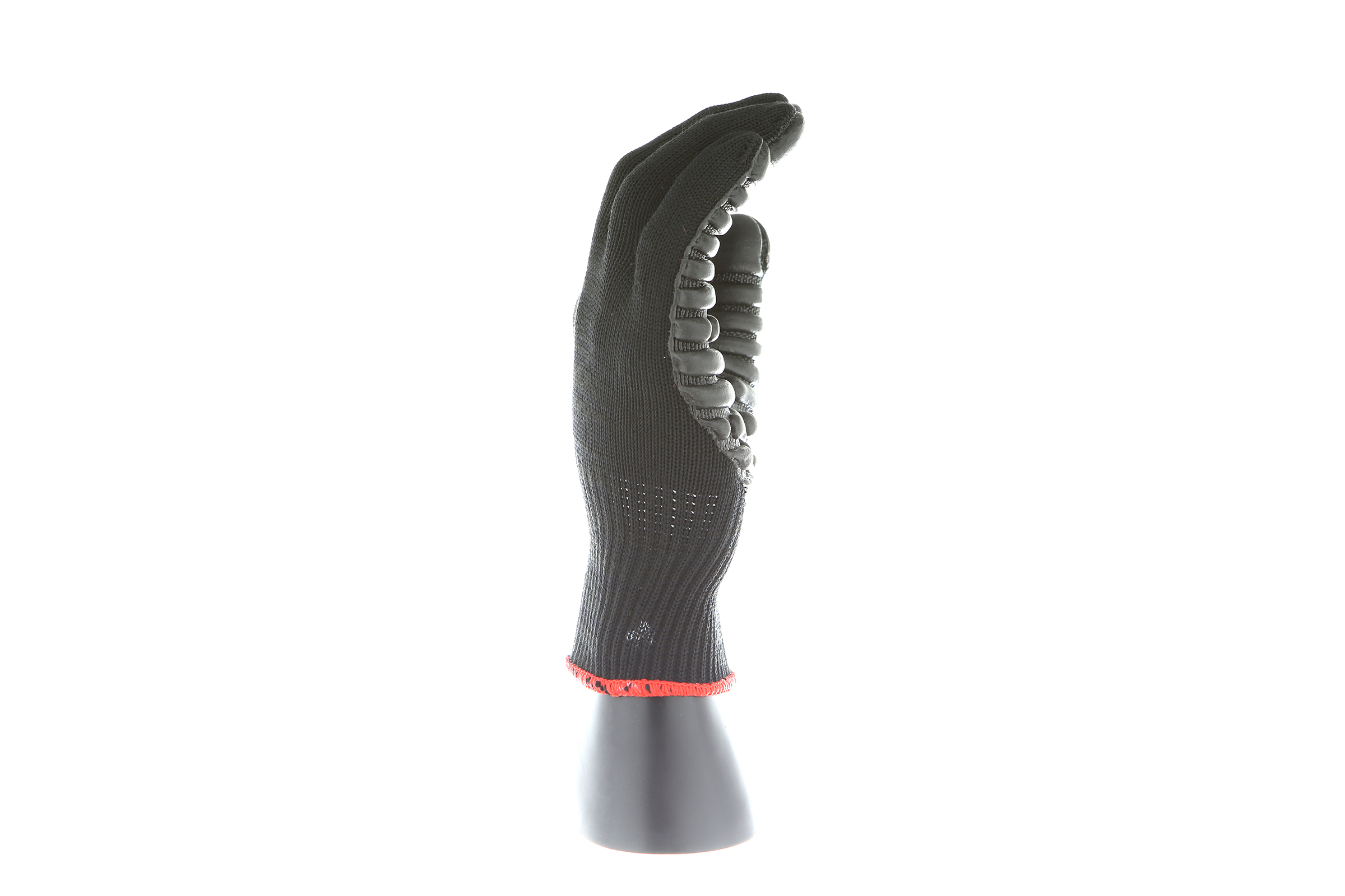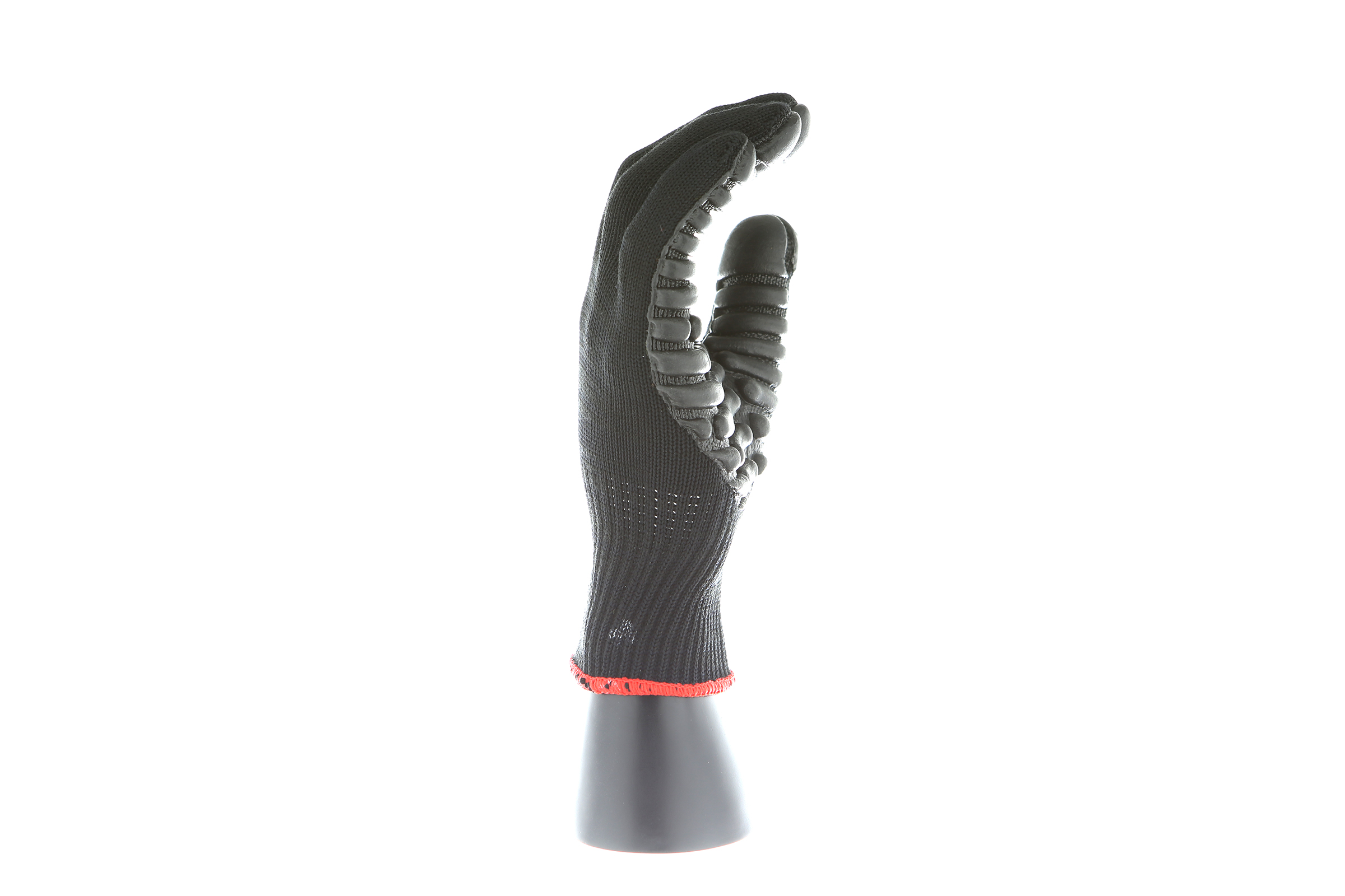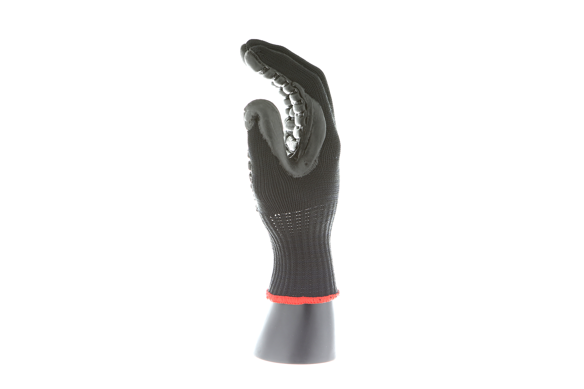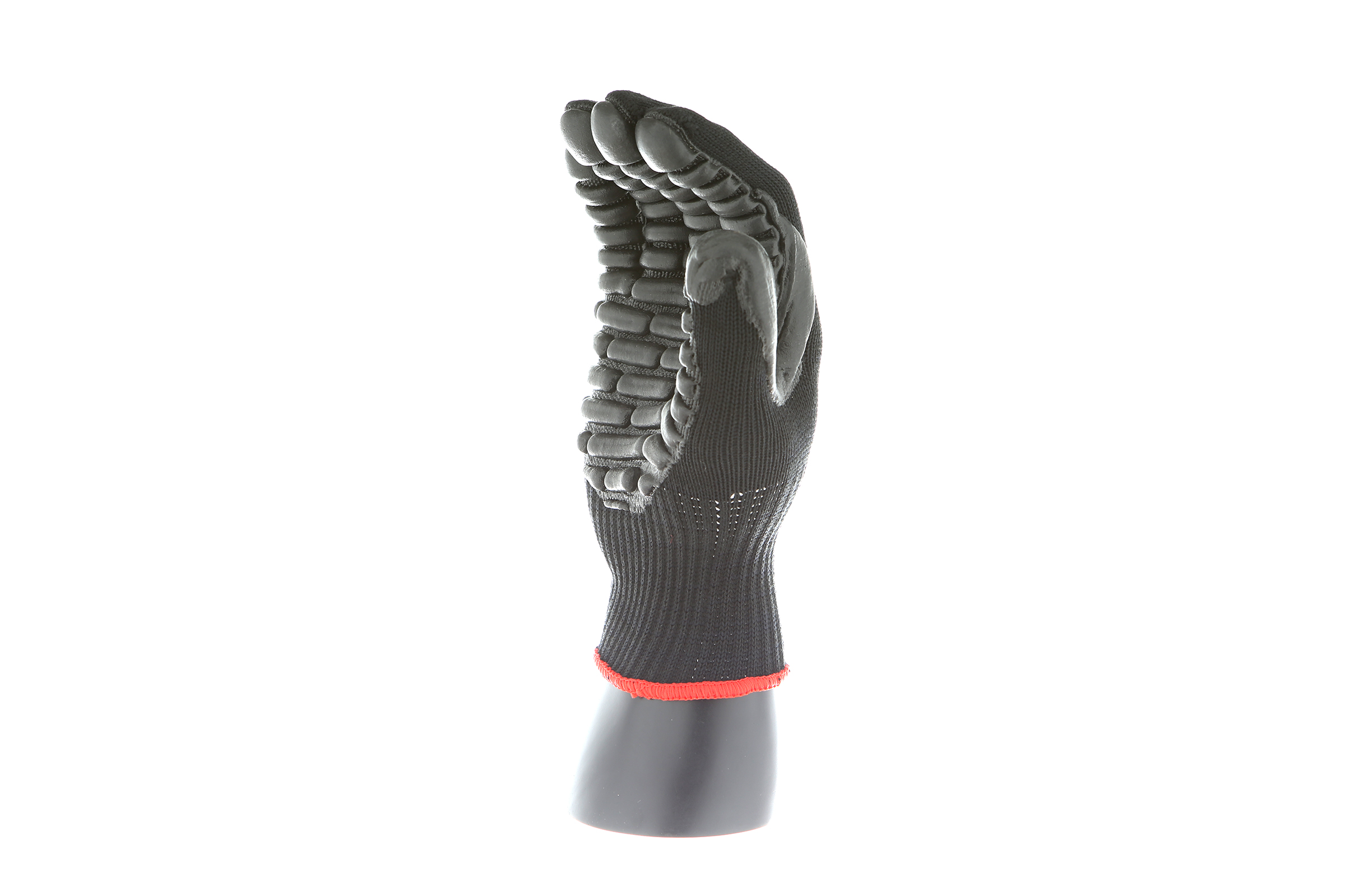 IMPACTO Economical solution to vibration protection. Nylon/cotton knitted material ensures stretch and breathability. Palm coated with “pods” of lightweight cellular Chloroprene. This design ensures extreme comfort. Utilizing encapsulated air to cushion and dampen vibration, giving the user optimum dexterity with a lightweight feel and reduced bunching.