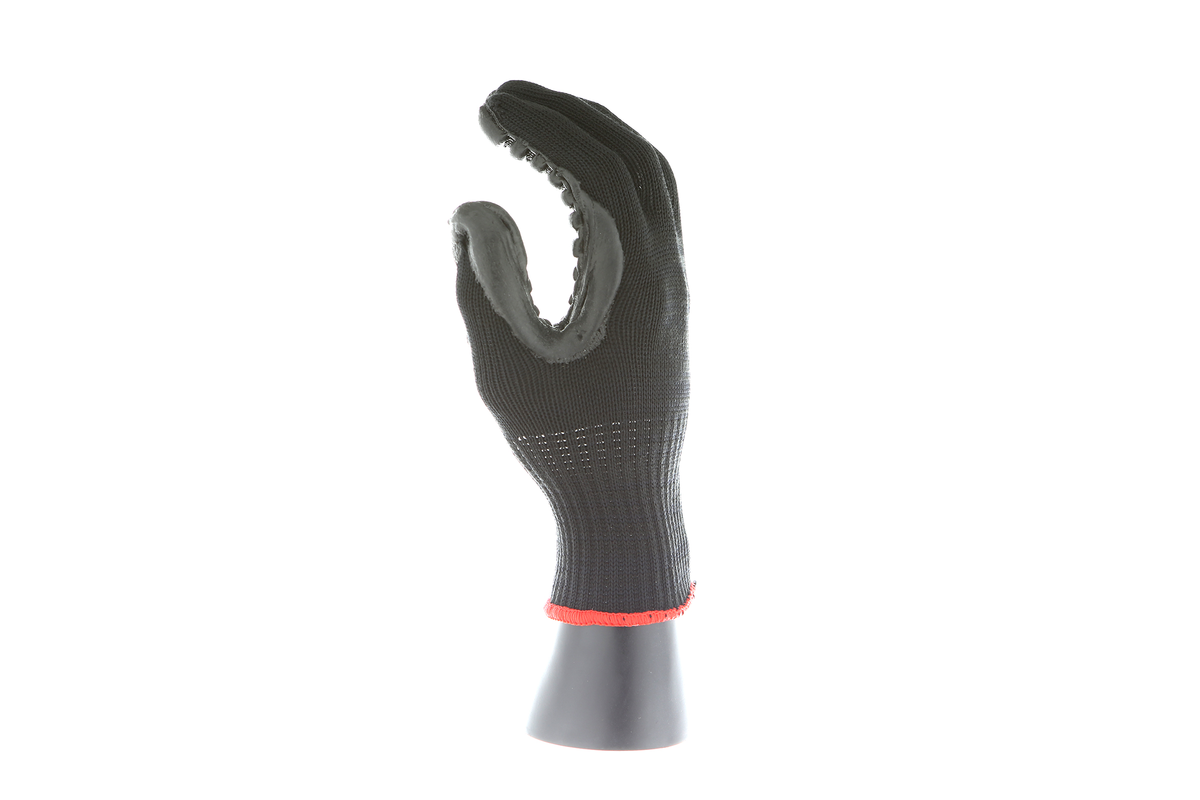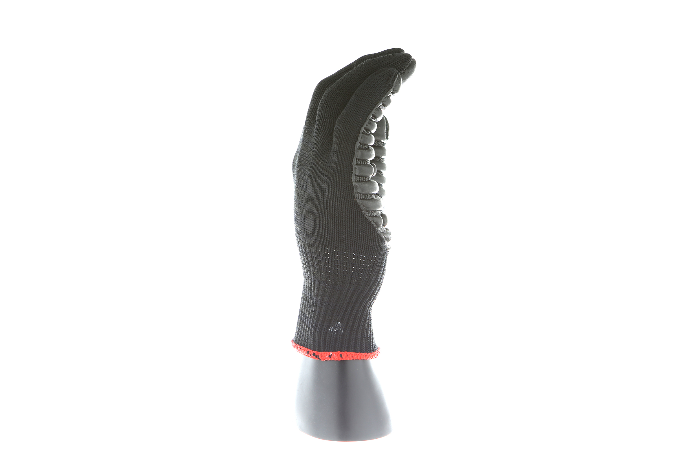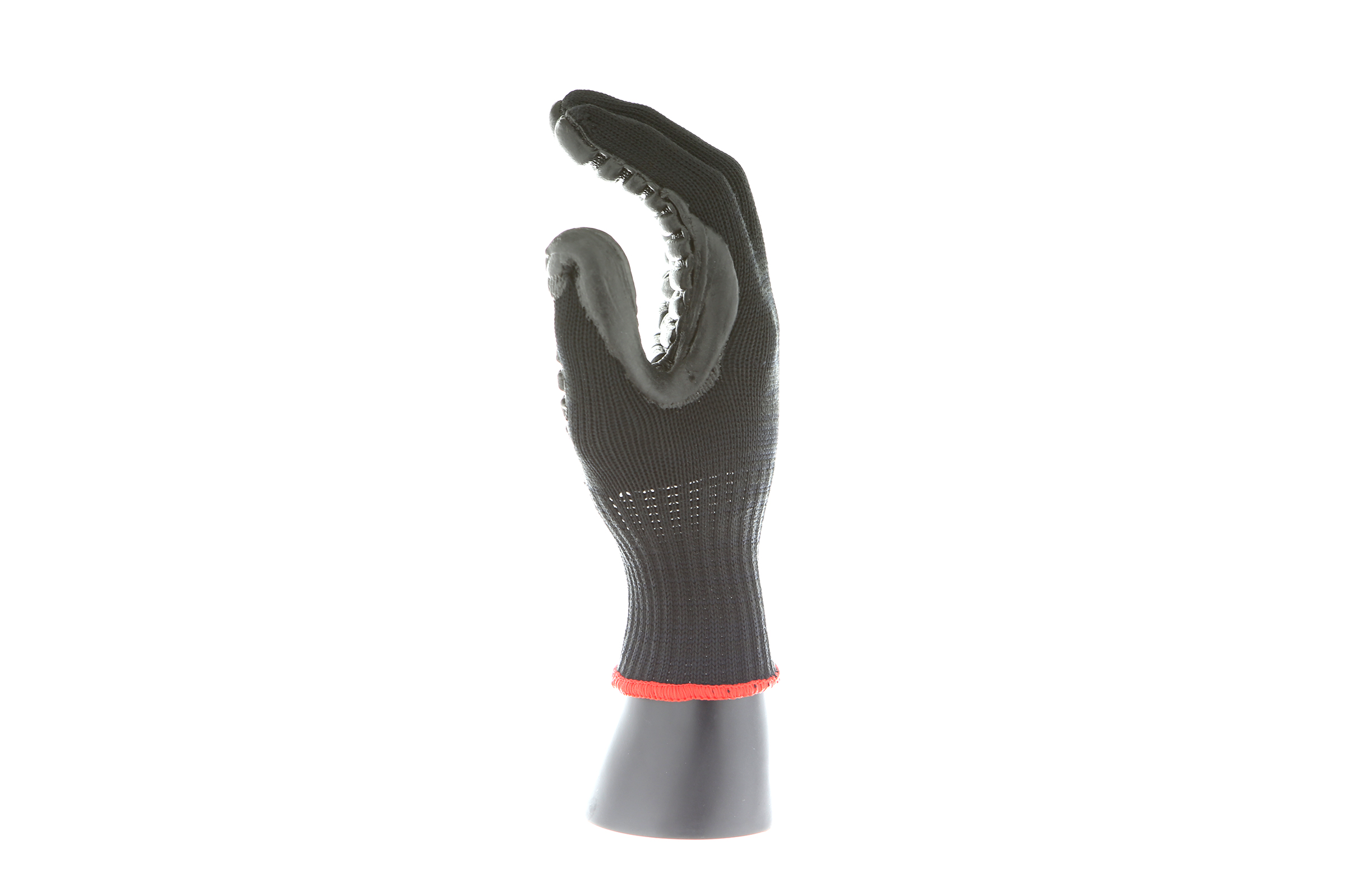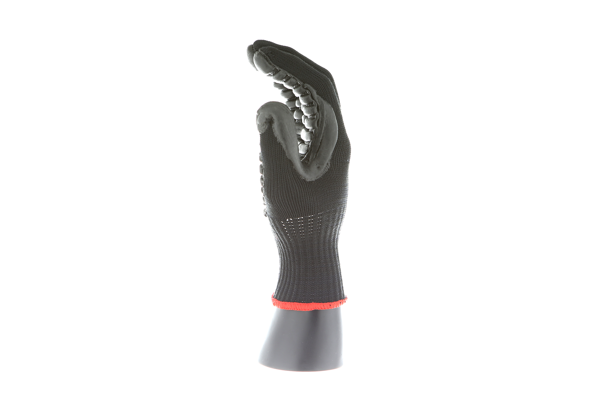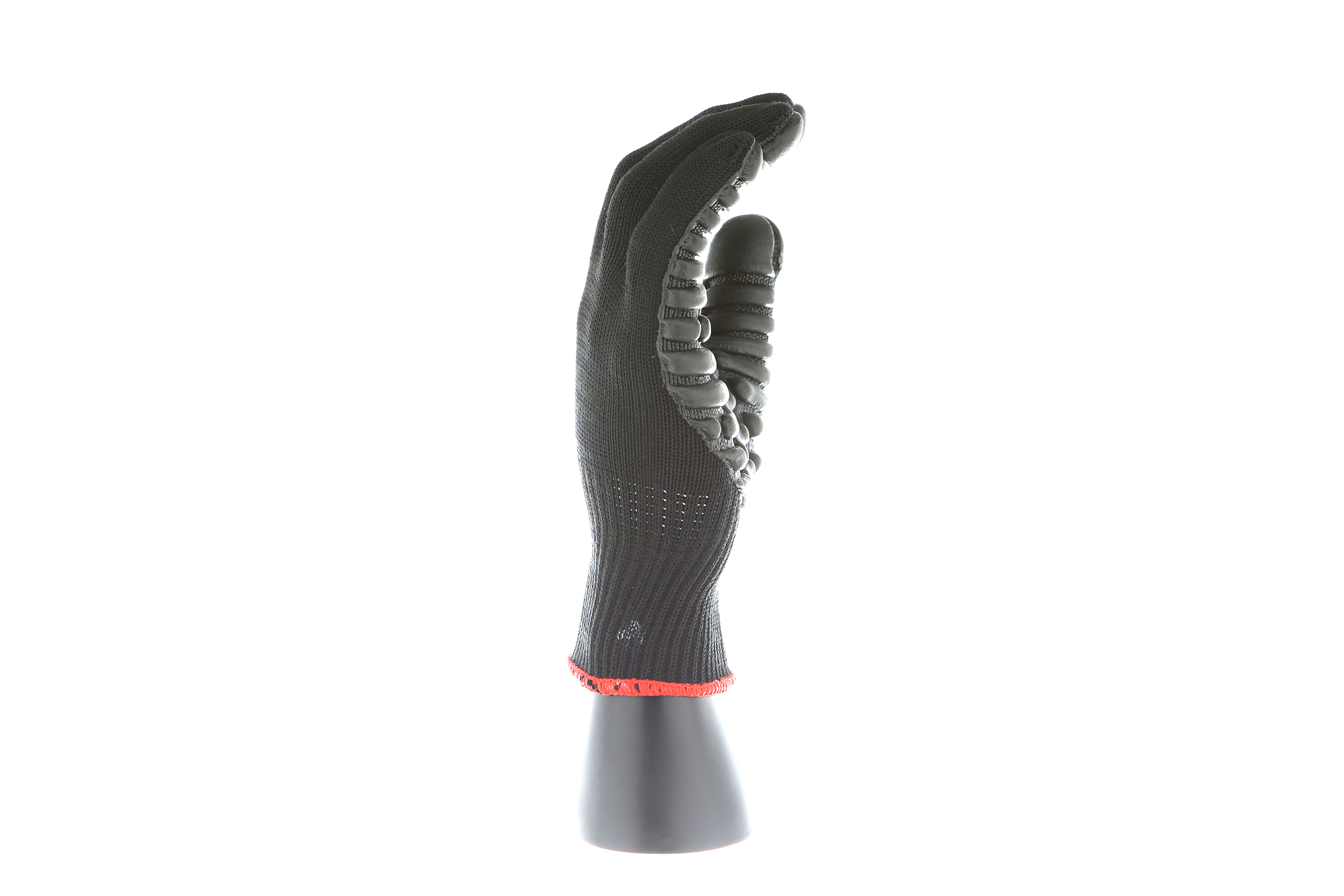 IMPACTO Economical solution to vibration protection. Nylon/cotton knitted material ensures stretch and breathability. Palm coated with “pods” of lightweight cellular Chloroprene. This design ensures extreme comfort. Utilizing encapsulated air to cushion and dampen vibration, giving the user optimum dexterity with a lightweight feel and reduced bunching.