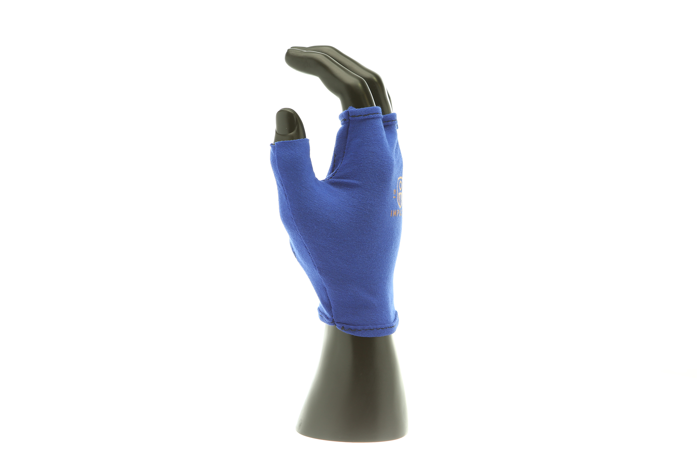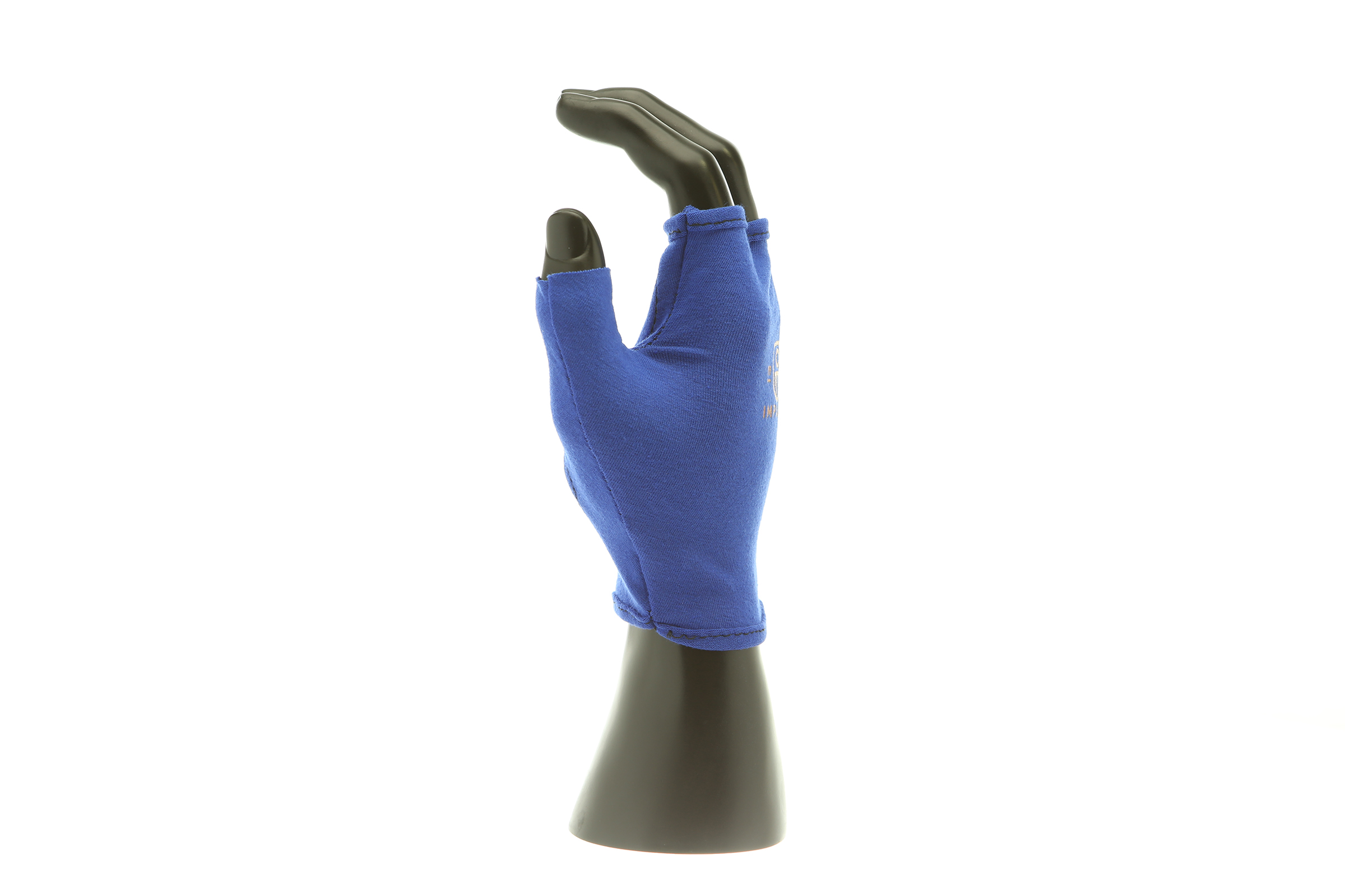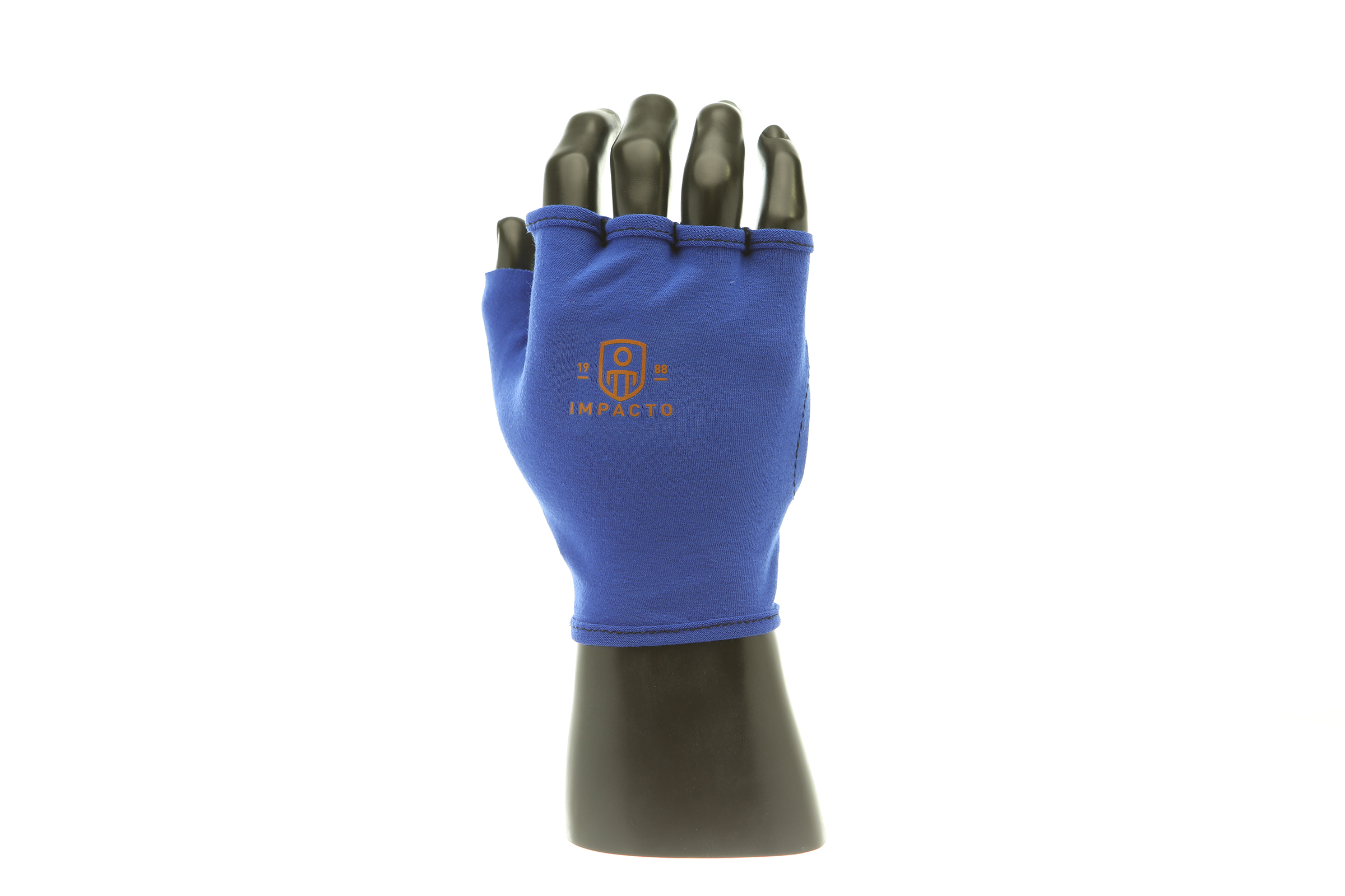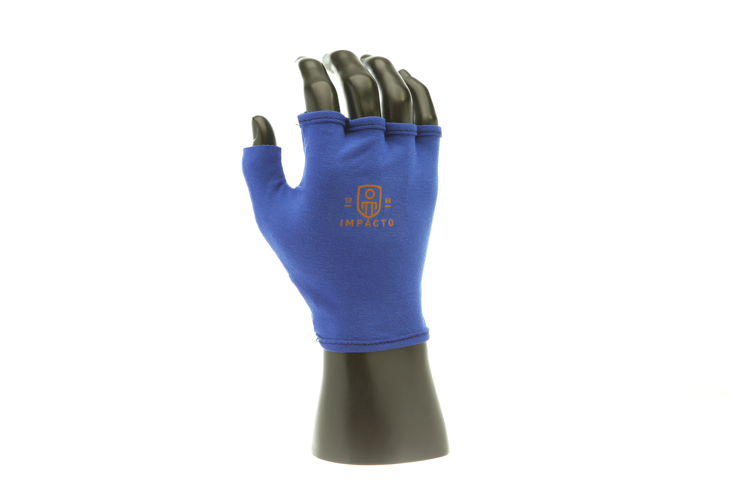 IMPACTO Fingerless four-way stretch polycotton glove liner. Contoured visco-elastic polymer (VEP) padding in the palm protects from vibration and impact.