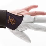Three finger protection glove with nylon back, pearl leather fingers, elastic wrist with hook/loop closure, VEP padding.