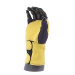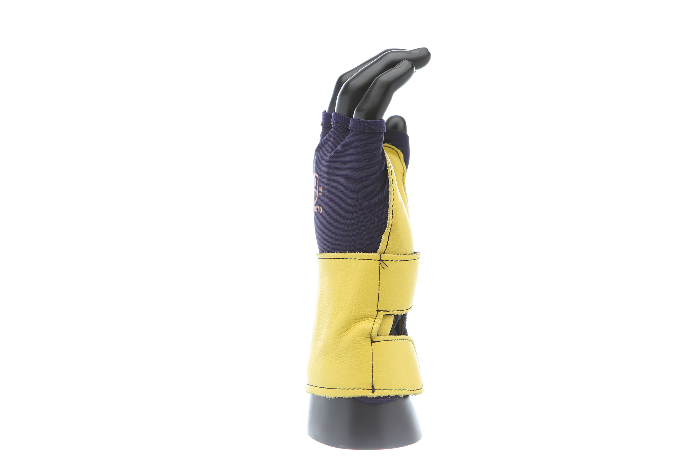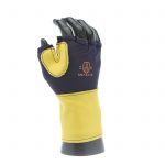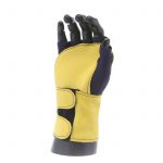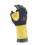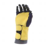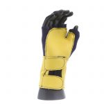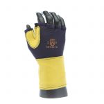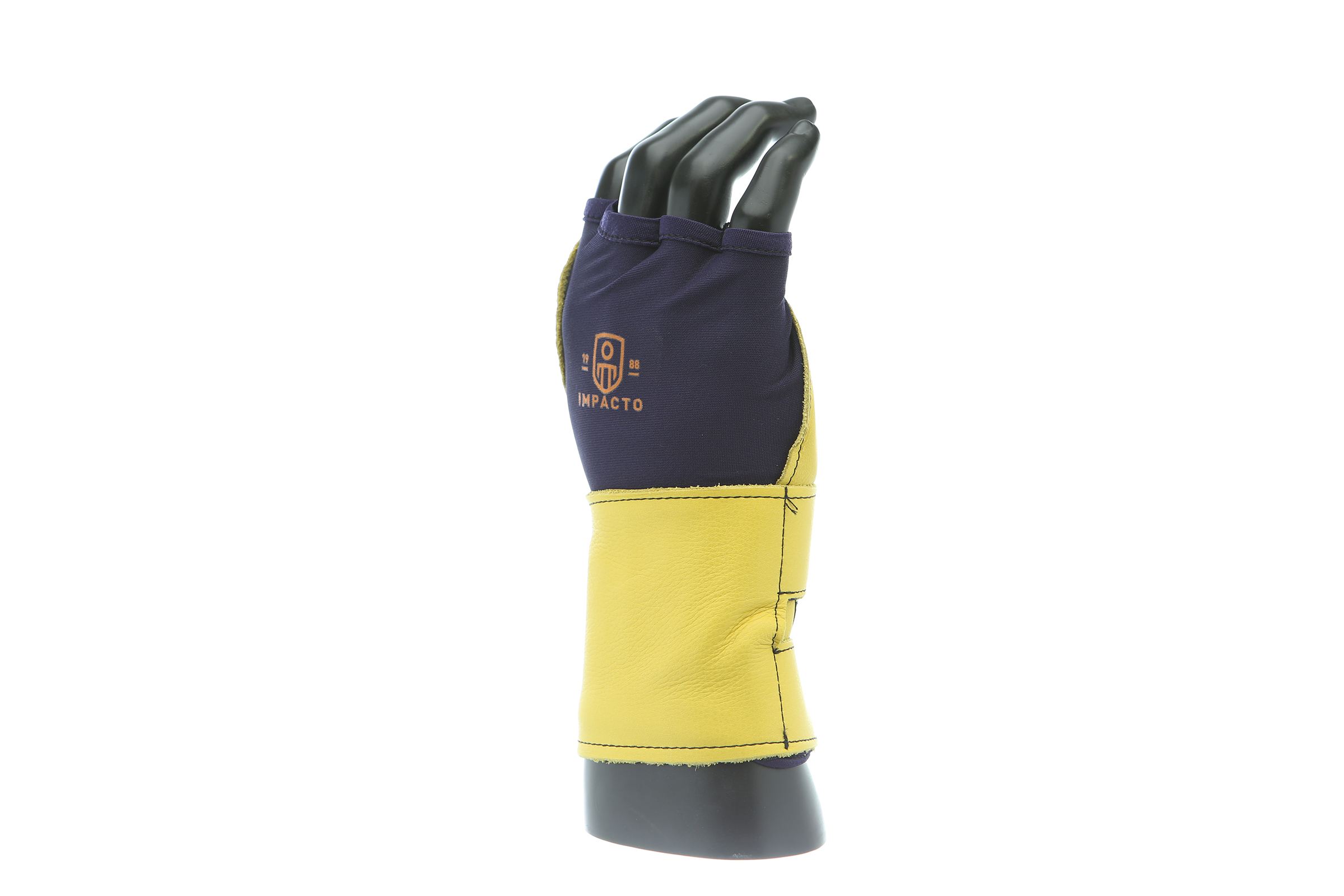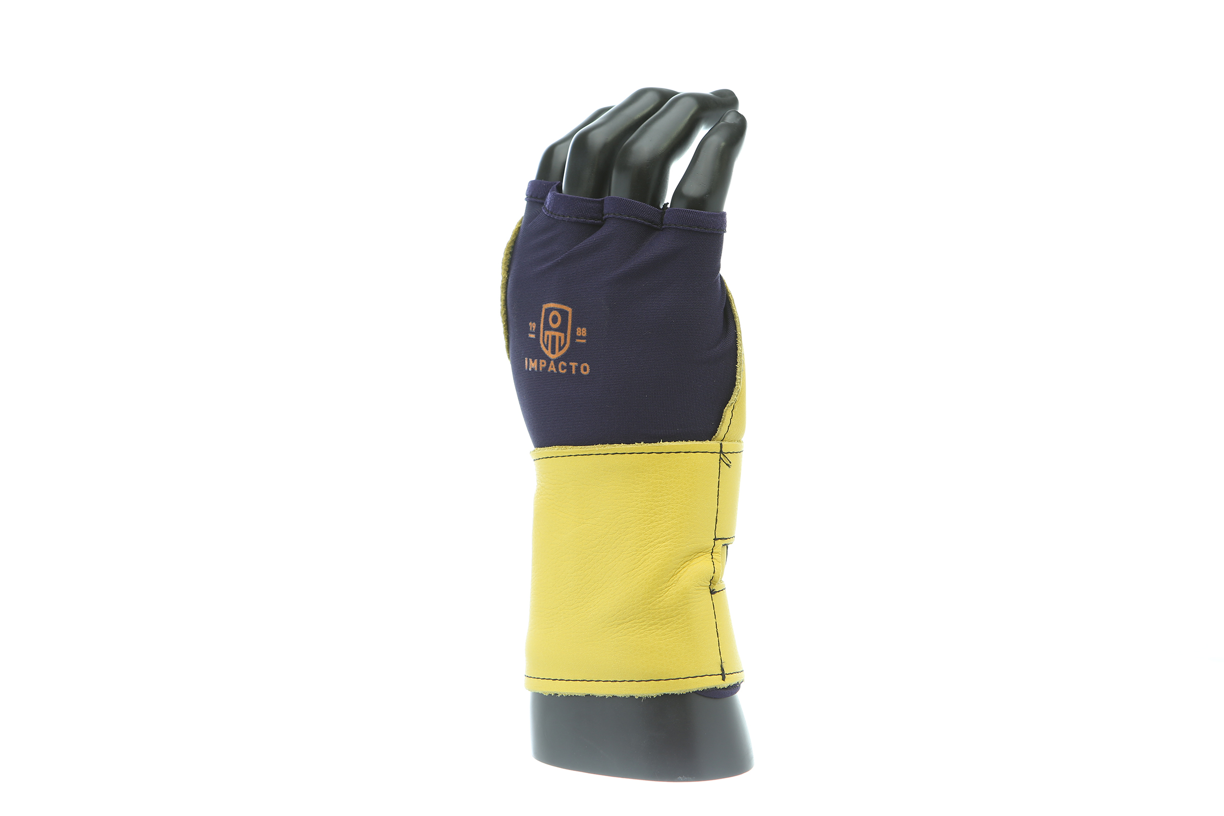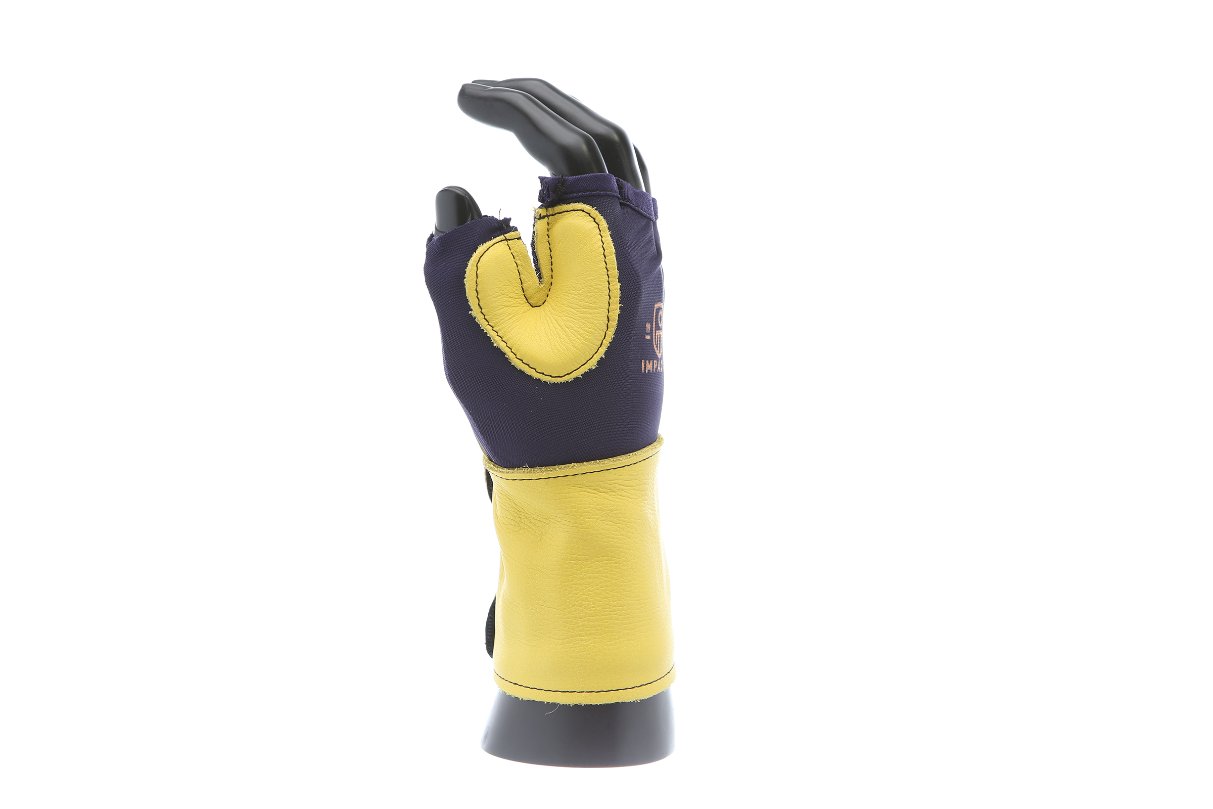 IMPACTO Fingerless nylon Lycra and grain leather glove with VEP padding in the palm and thumb web area. Detachable grain leather wrist support.
